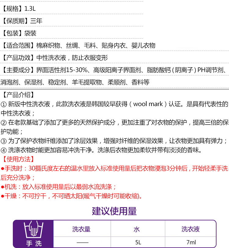 XDR韩国 爱敬洗衣液1300ml
