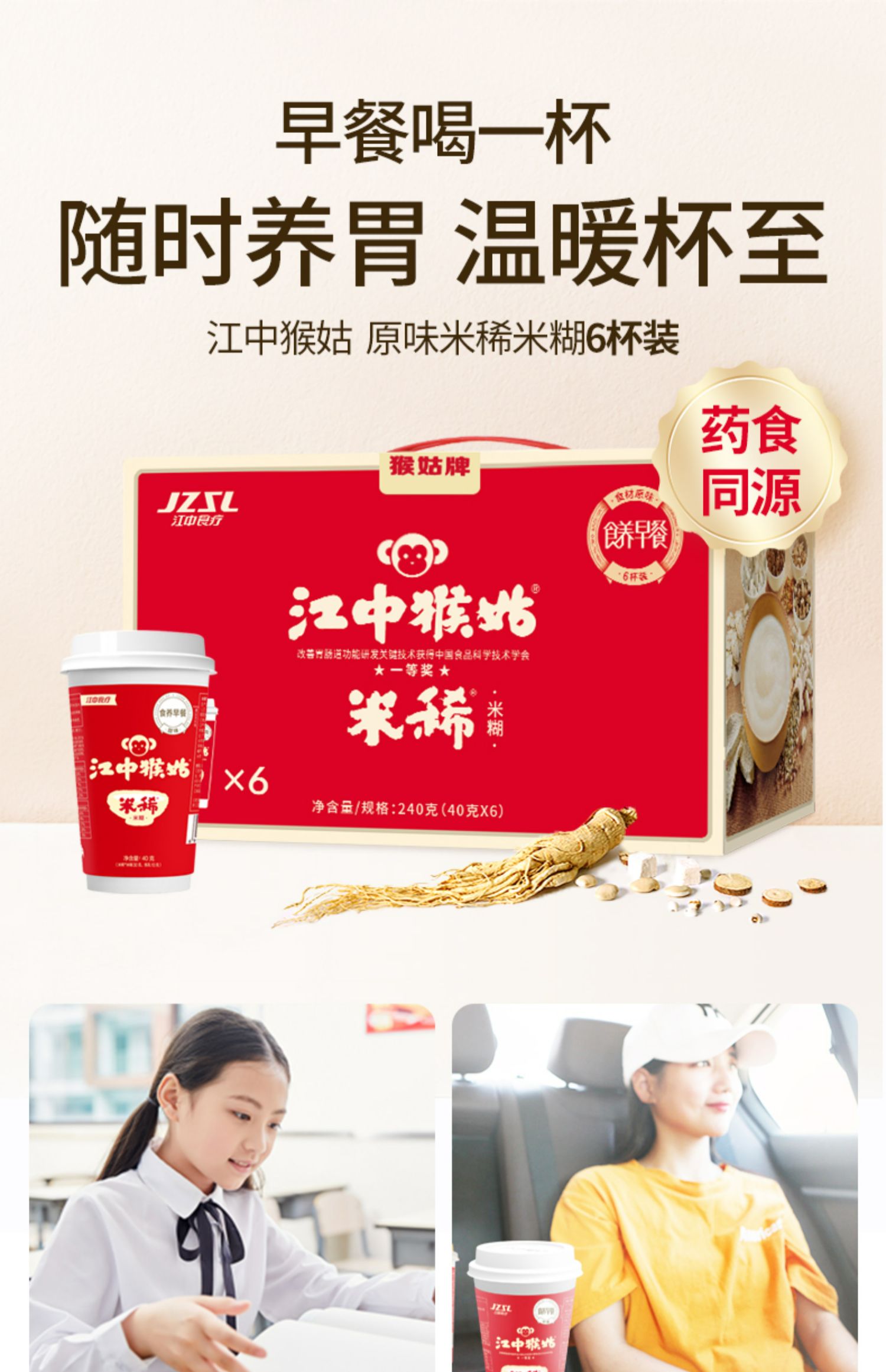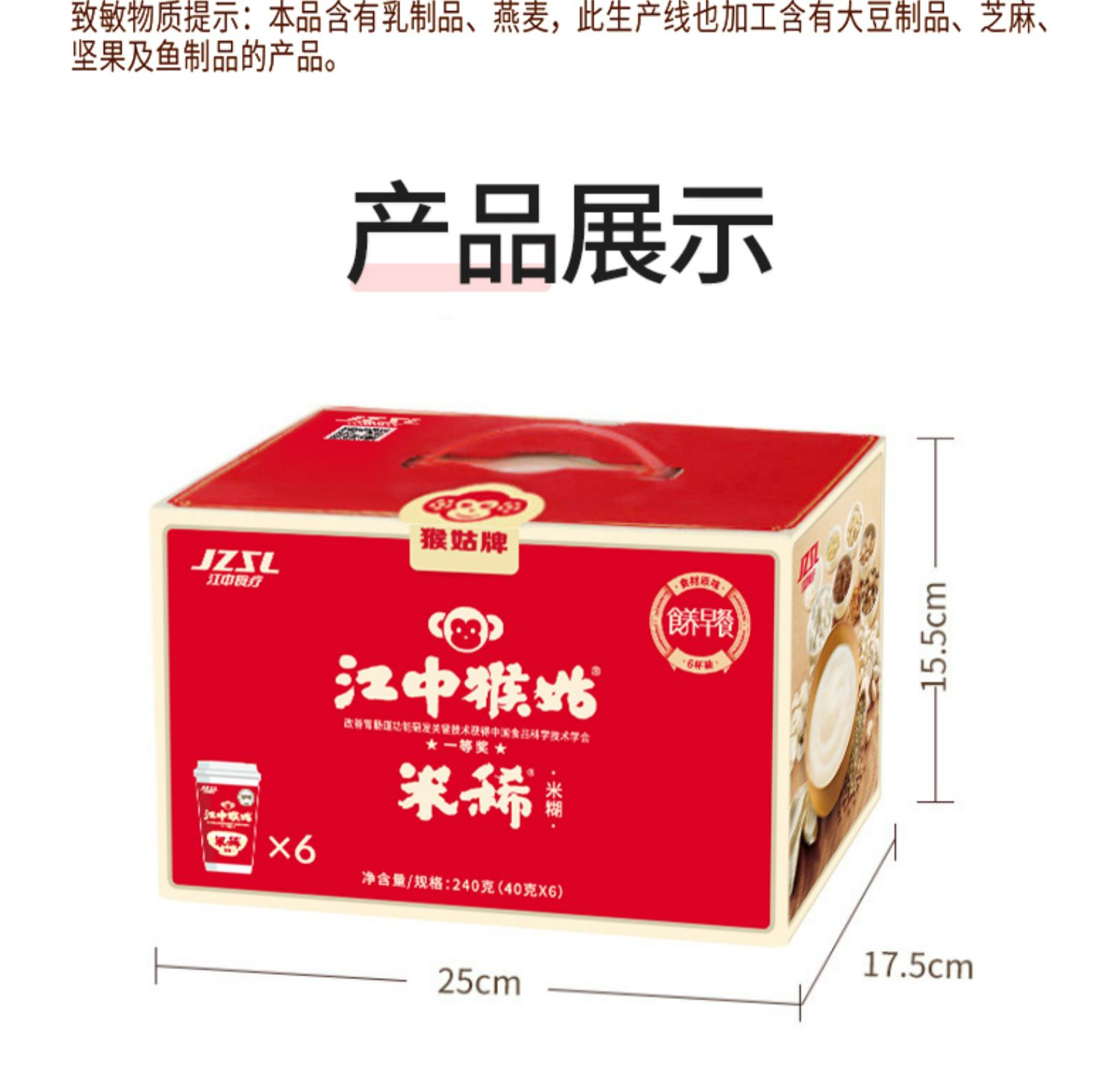 江中猴姑早餐米稀6杯/箱礼盒送礼营养品冲饮代餐食品猴菇米稀