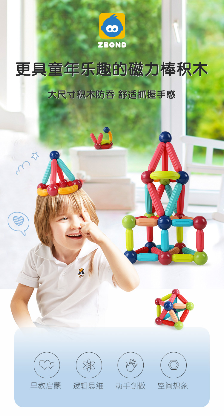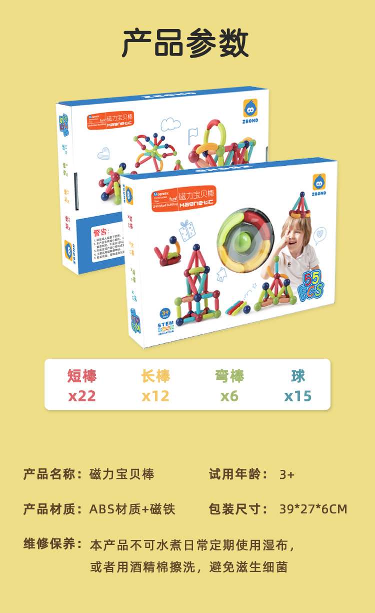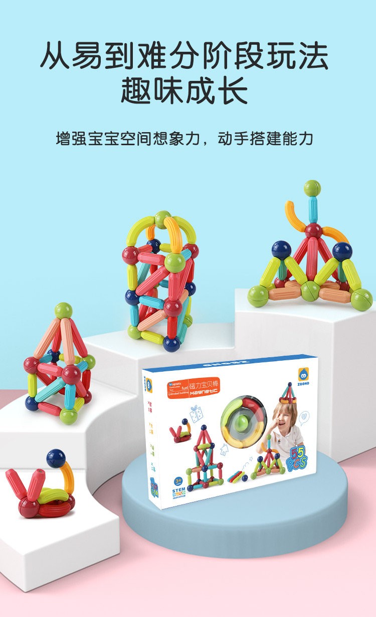 磁力棒儿童积木拼装玩具益智片宝宝早教1大颗粒