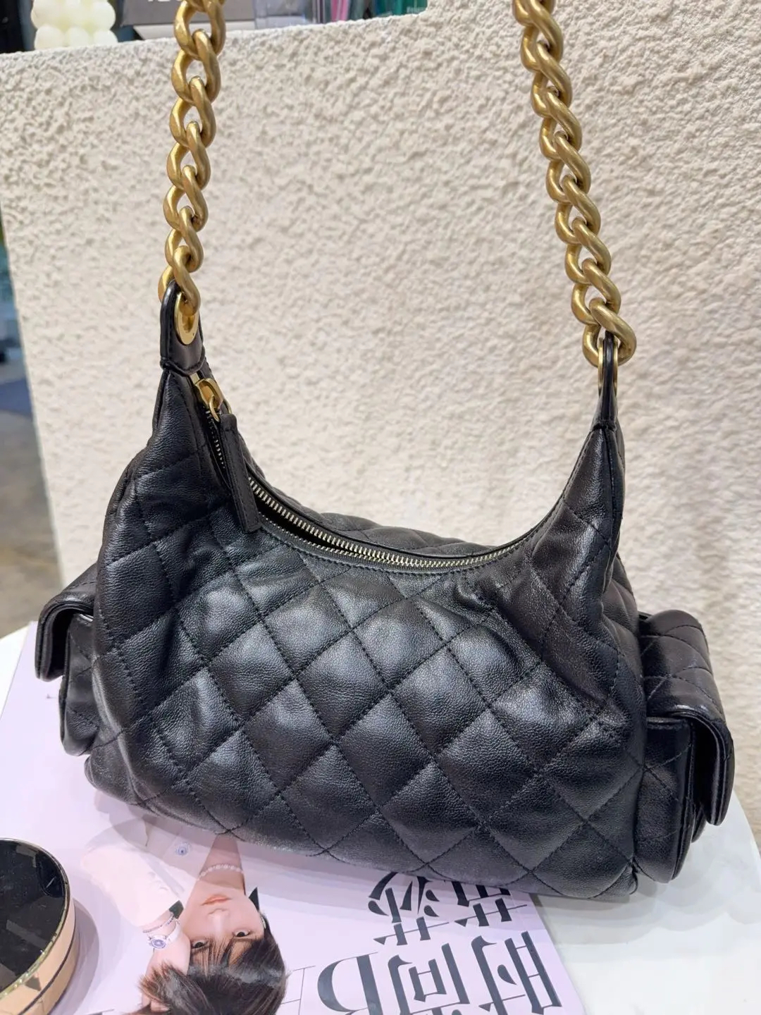 【商品详情】正品二手 Chanel 25c 黑金 嬉皮 hobo 单肩包🍚97新 26*22 新钢标 配件:防尘袋。极其难买!
