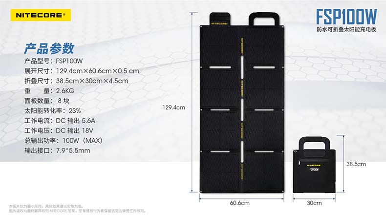 NITECORE奈特科尔FSP100W户外便携可折叠防水太阳能充电板