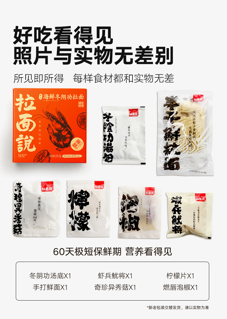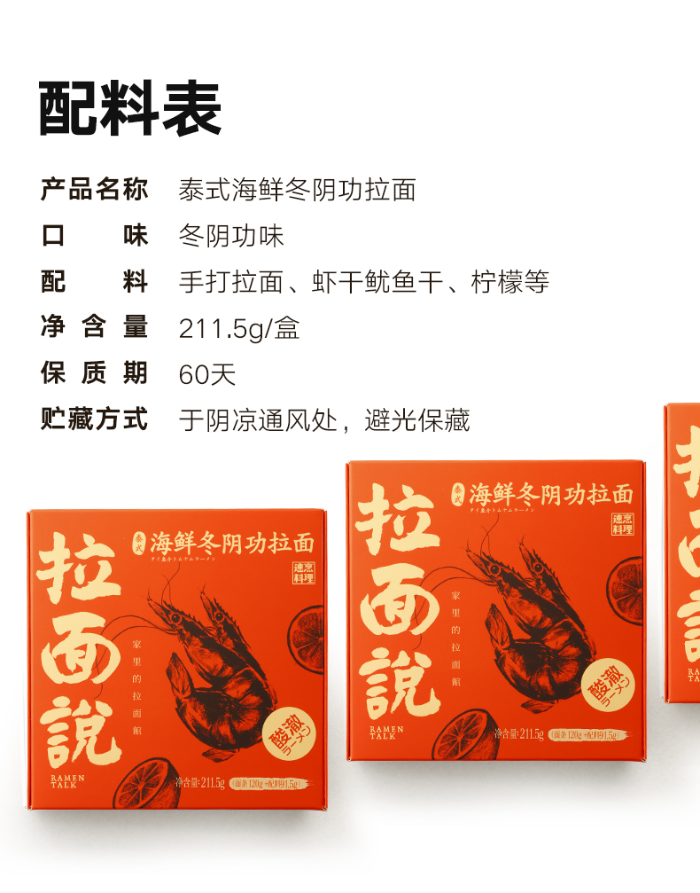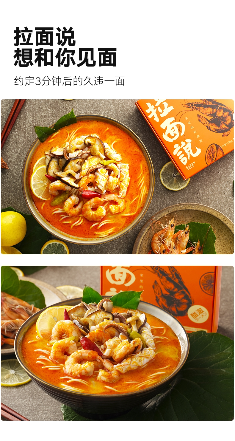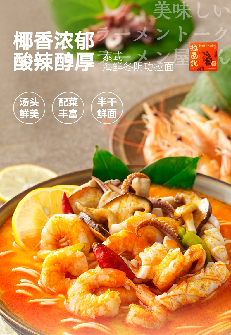 拉面说 泰式海鲜冬阴功酸辣拉面速食非油炸拉面一人份211.5g/盒