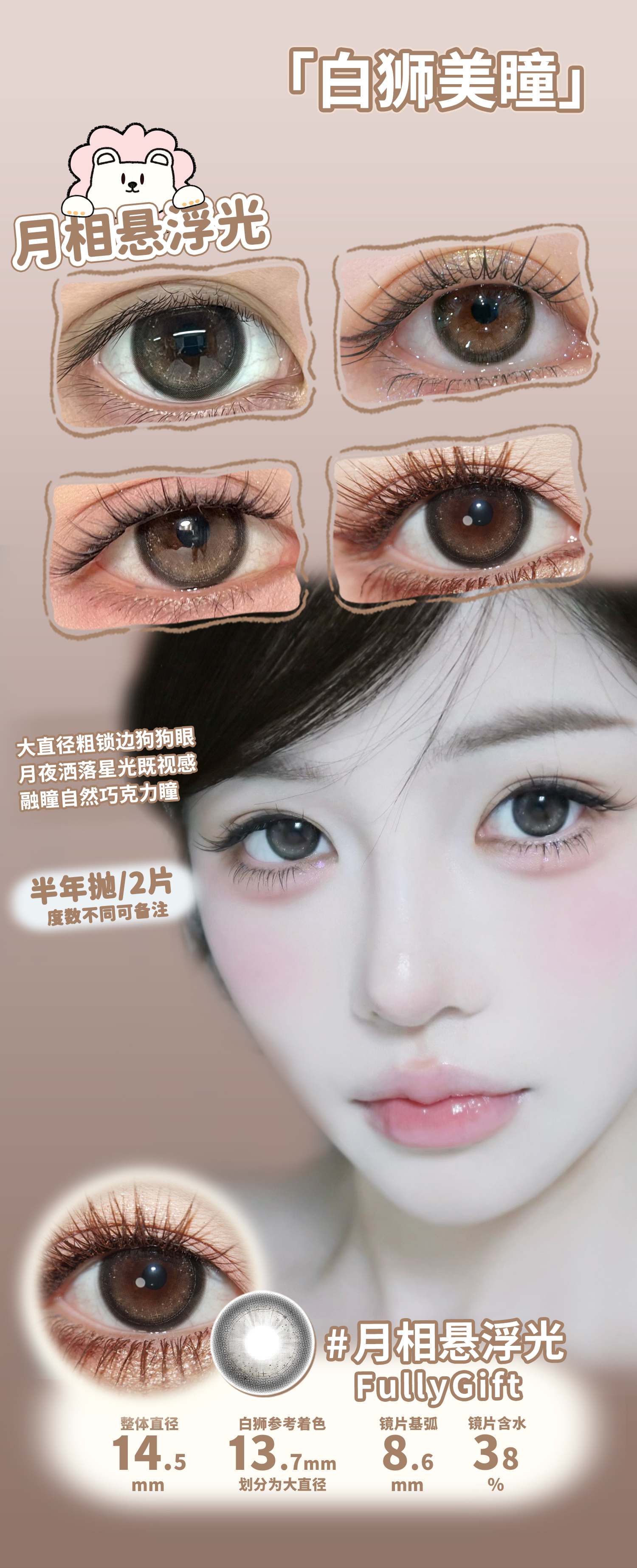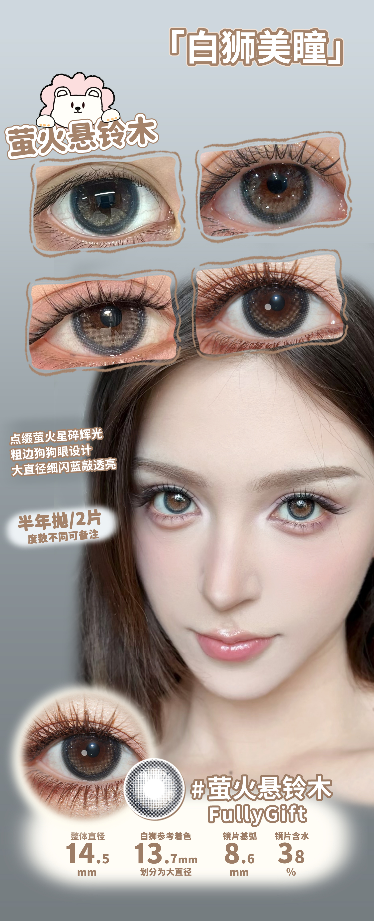 Fully Gift半年抛 · 萤火悬铃木&月相悬浮光| 14.5mm白狮参考着色大直径 韩产半年抛
