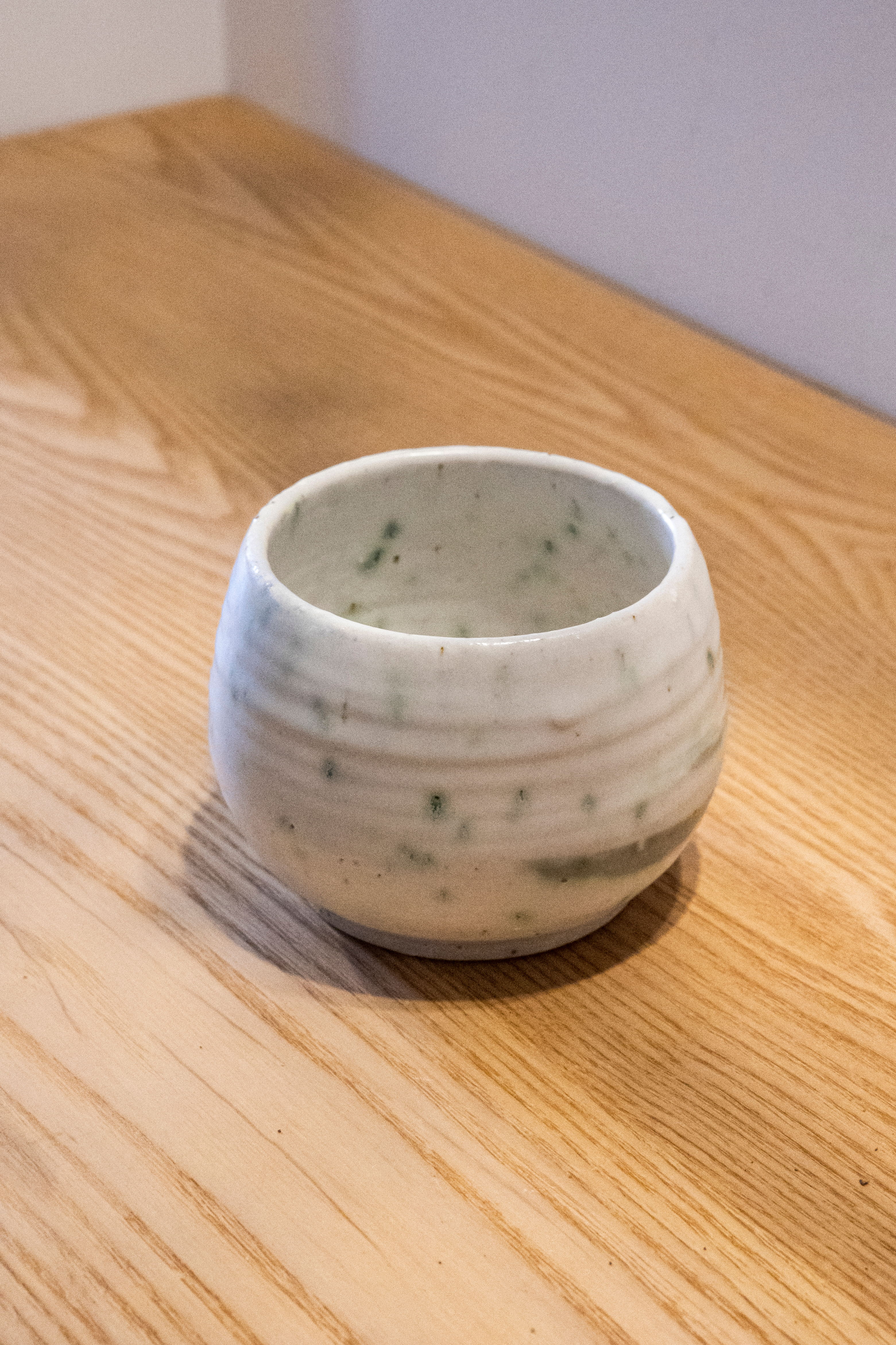 长石无光白结晶釉,单杯,尺寸:杯子口径8CM,高7.8CM,底部直径6.5CM;