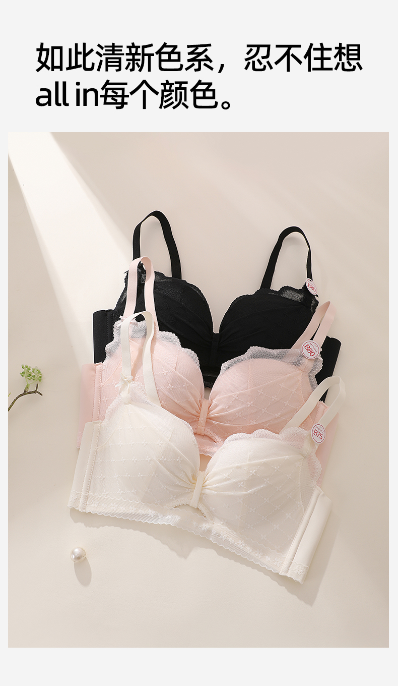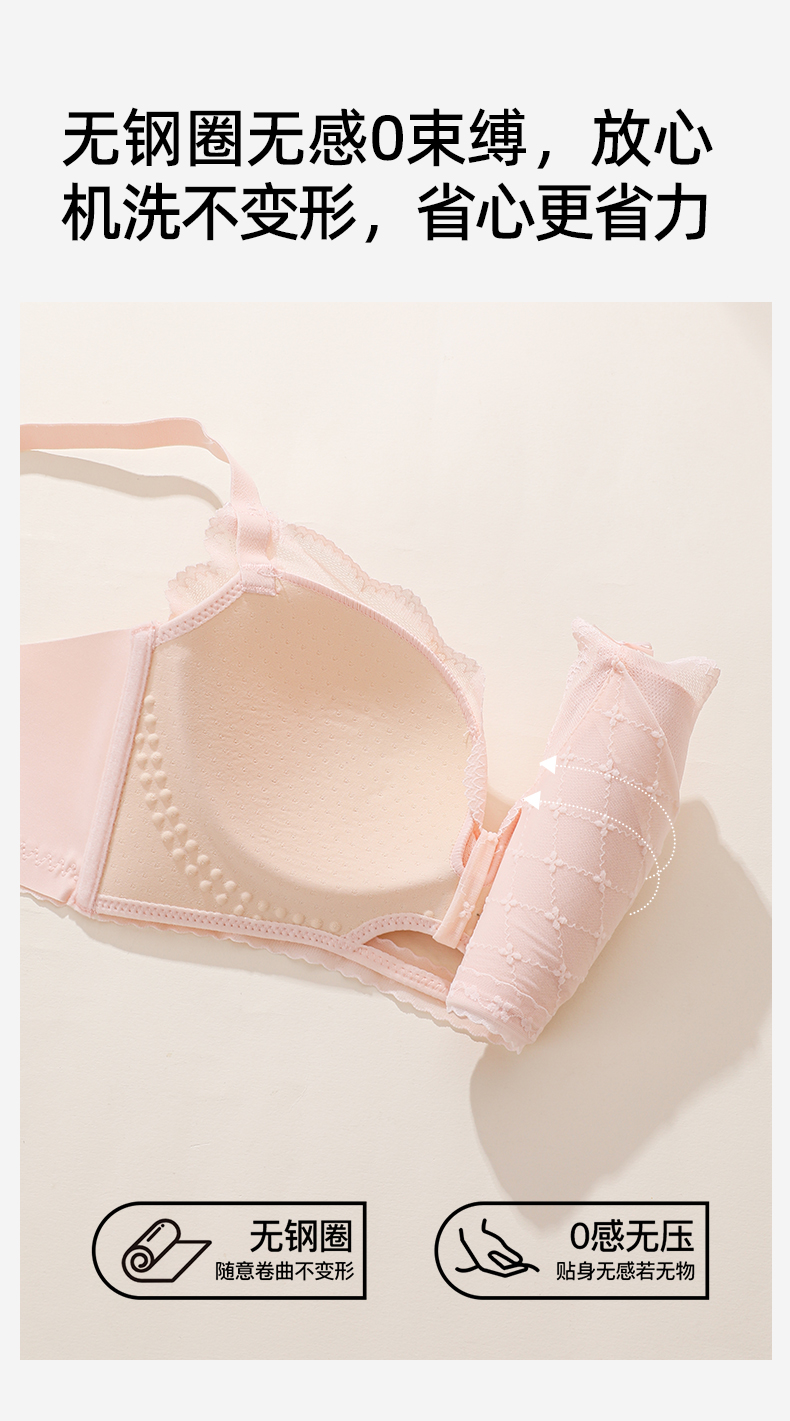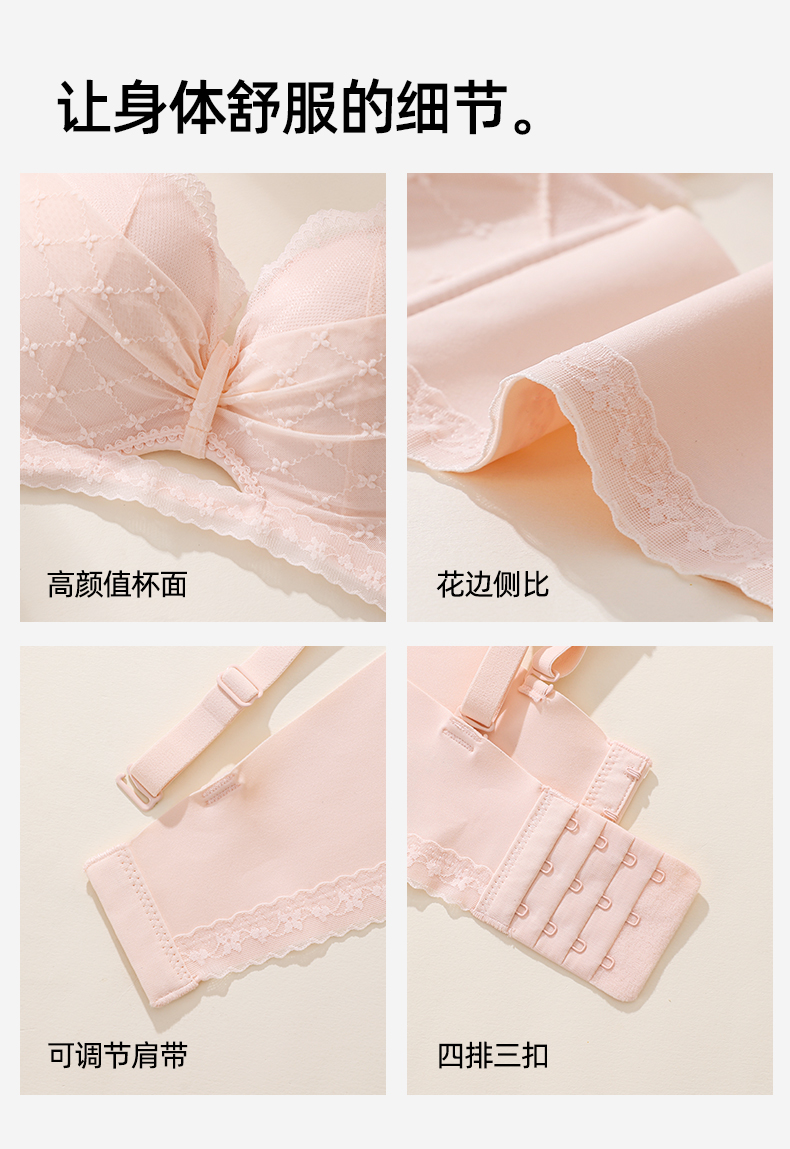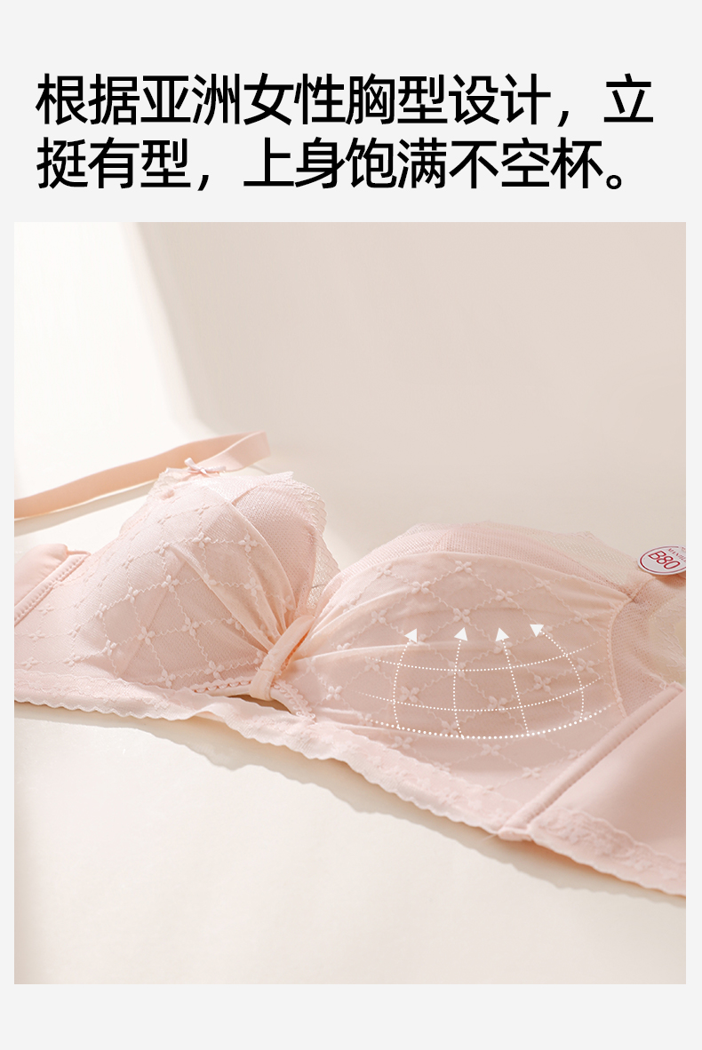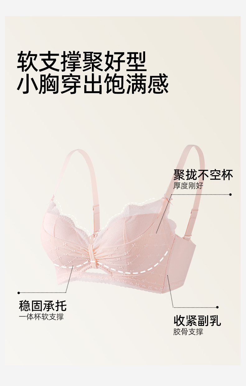 【商场同款】熳洁儿 小胸聚拢文胸云感棉中薄杯法式蕾丝甜心粉调系列25701539