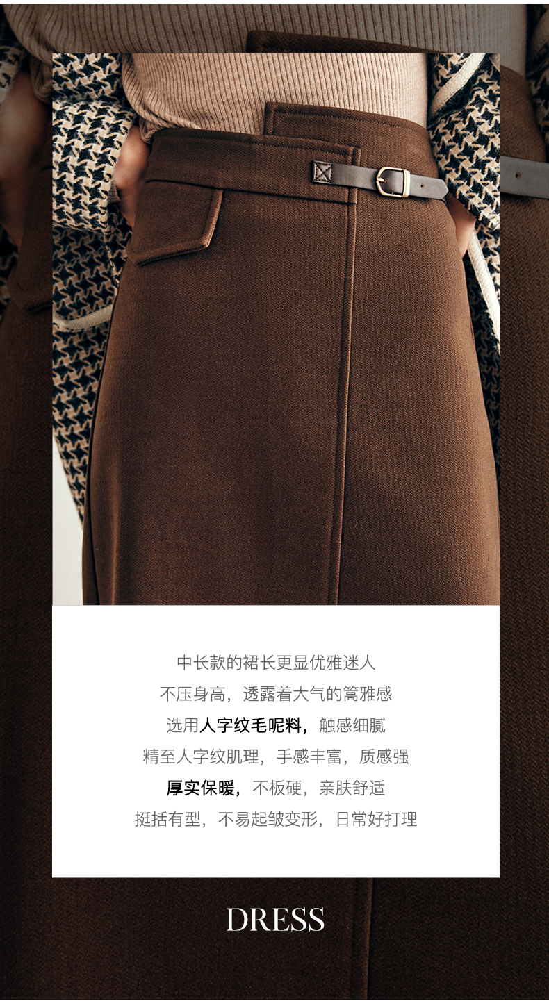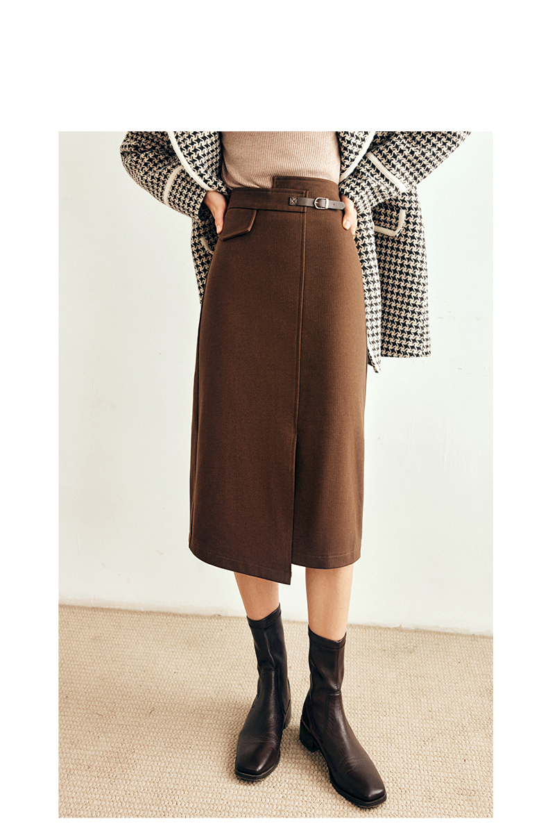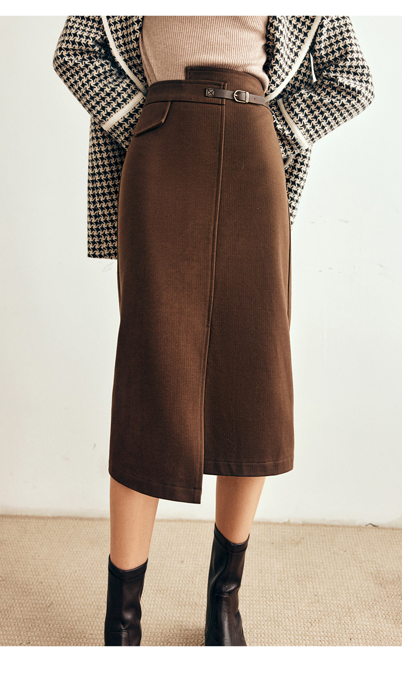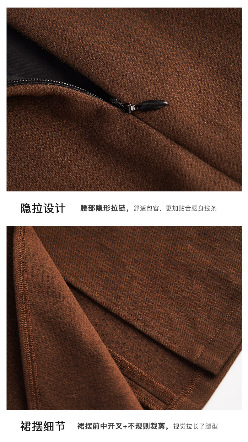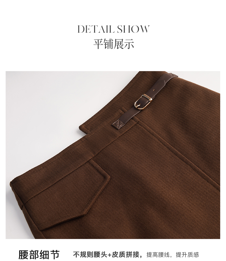 OLrain欧芮儿法式咖色毛呢半身裙女秋冬2023年新款高腰不规则裙子
