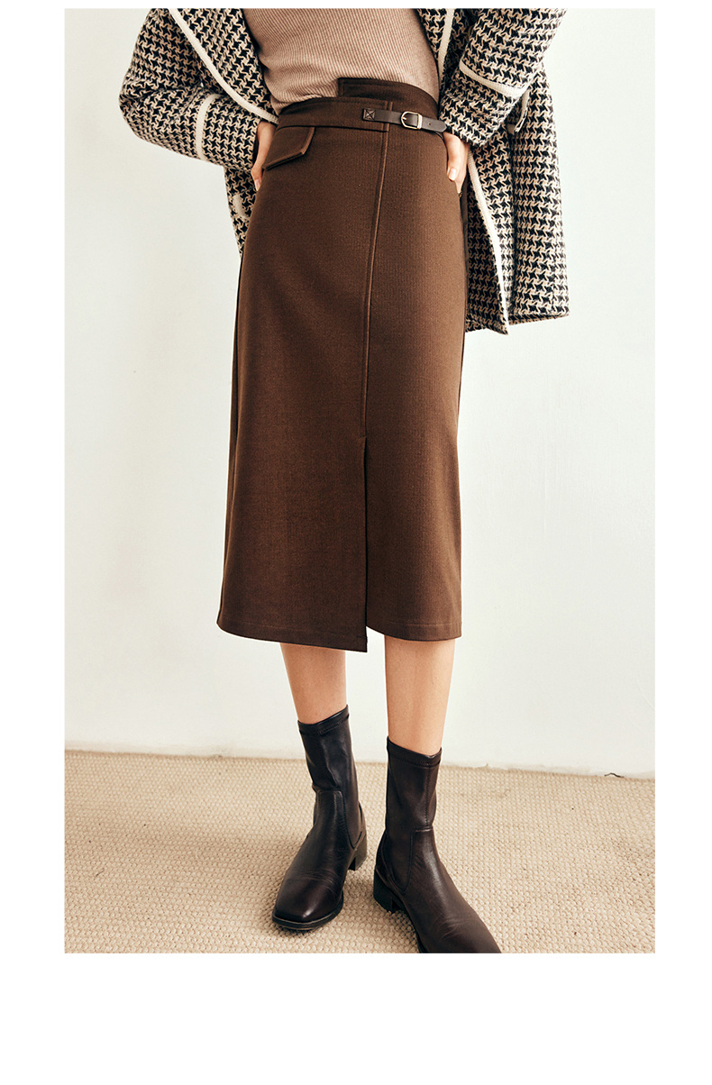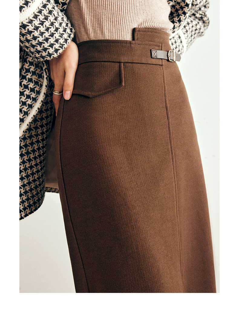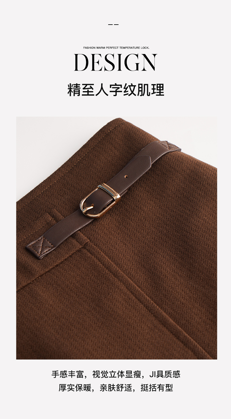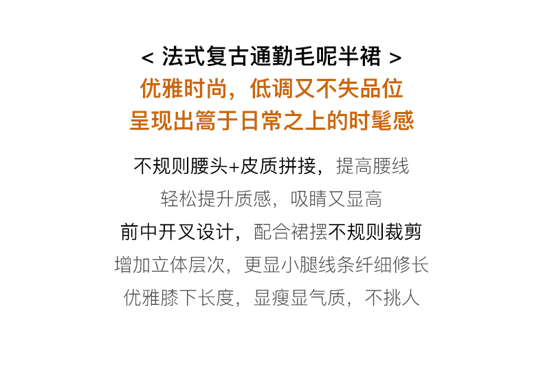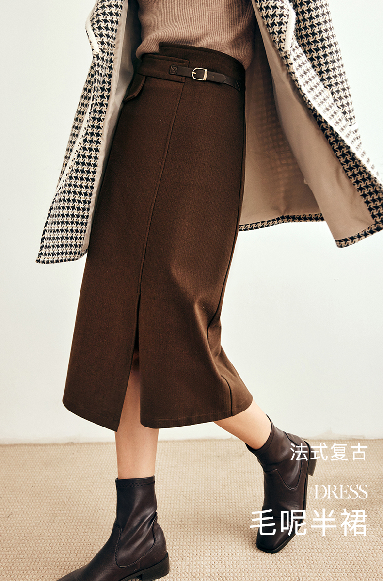 OLrain欧芮儿法式咖色毛呢半身裙女秋冬2023年新款高腰不规则裙子