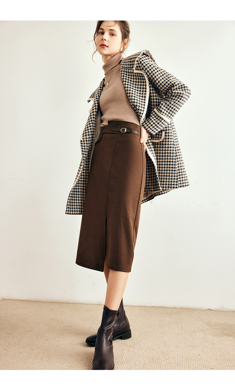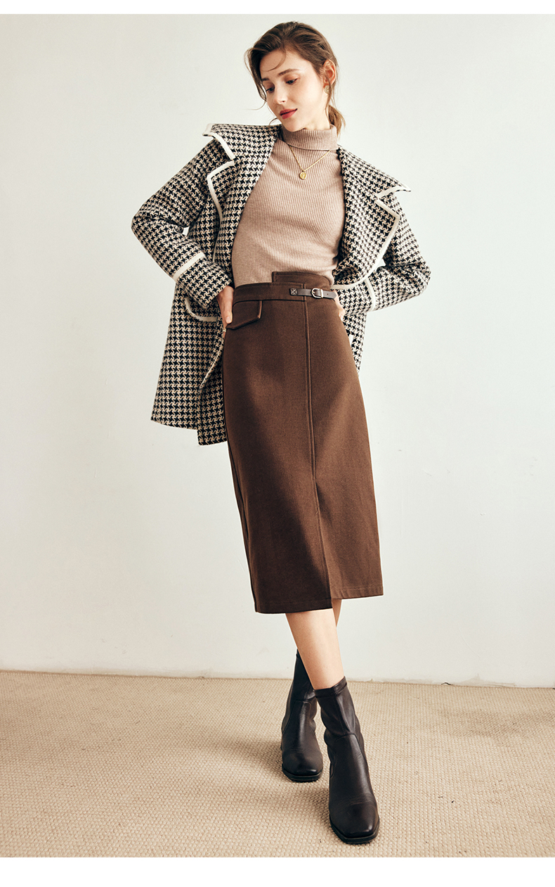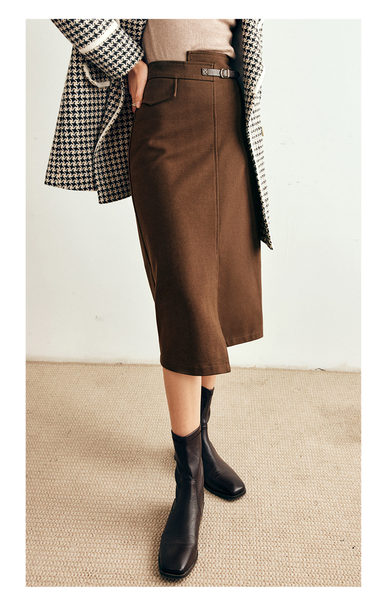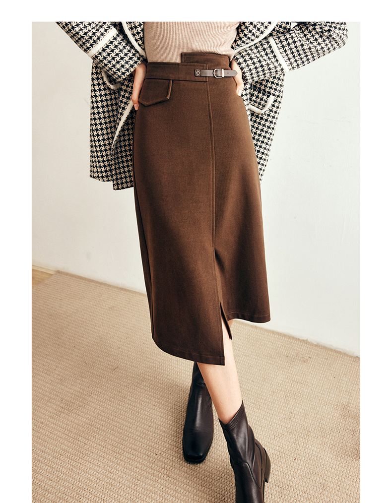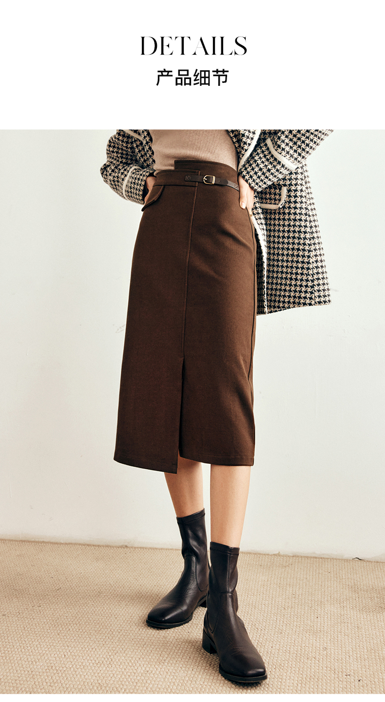 OLrain欧芮儿法式咖色毛呢半身裙女秋冬2023年新款高腰不规则裙子