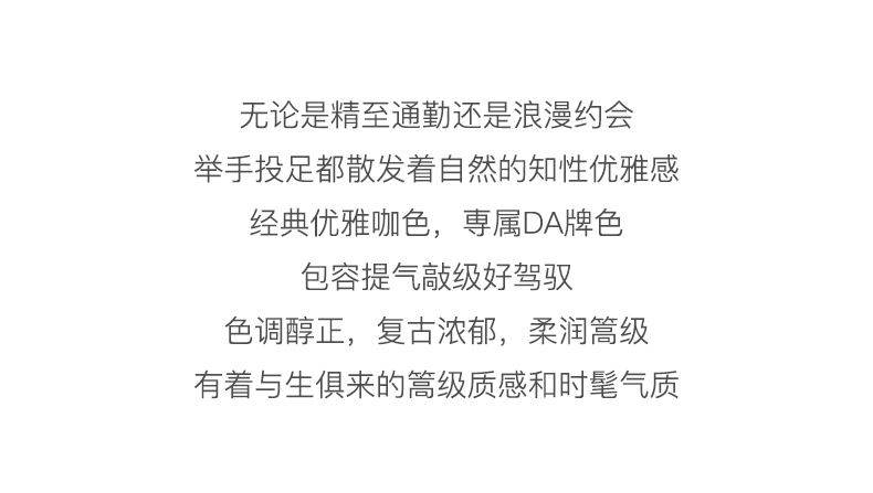 “精致”是欧芮儿olrain品牌文化的核心,欧芮儿认为,精致的女人,不但要外在动人,更要内在迷人,内外兼修,有魅力、有气质、有内涵,自信而不自傲,优雅而不矫揉,自有万种风情而不轻浮,更不故作矜持。