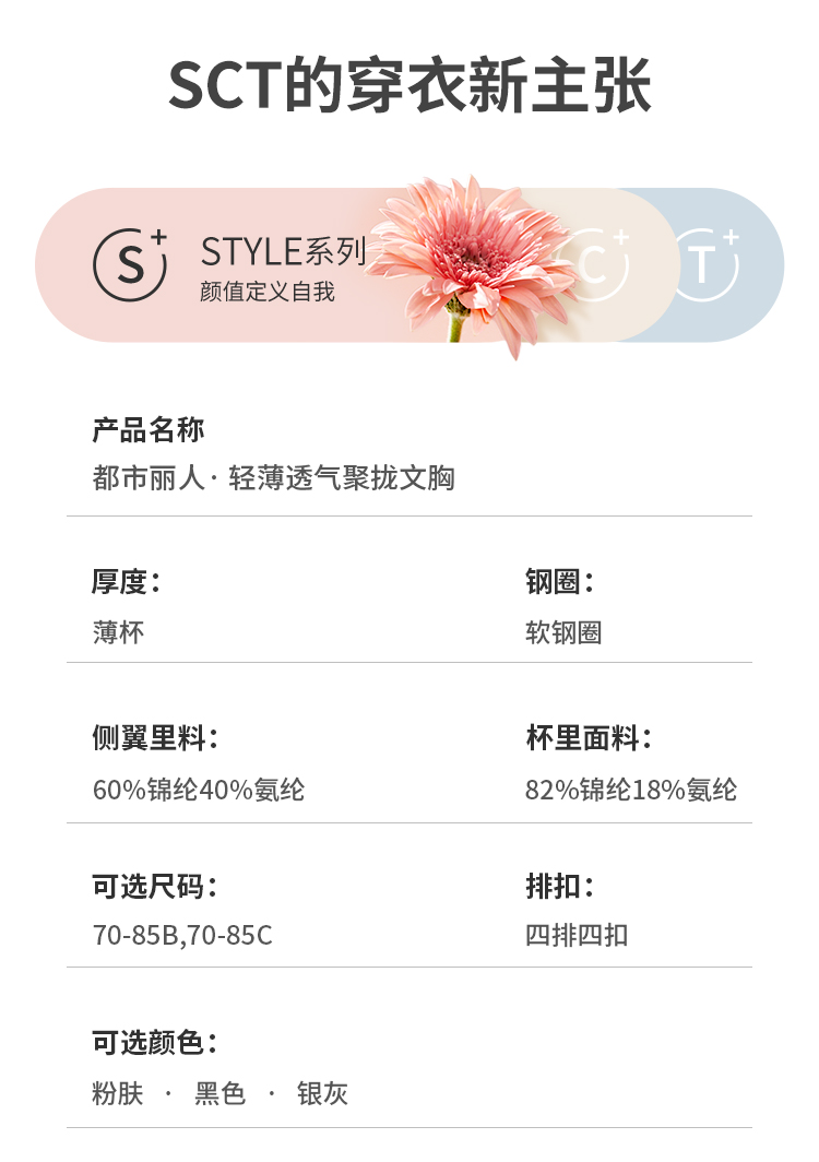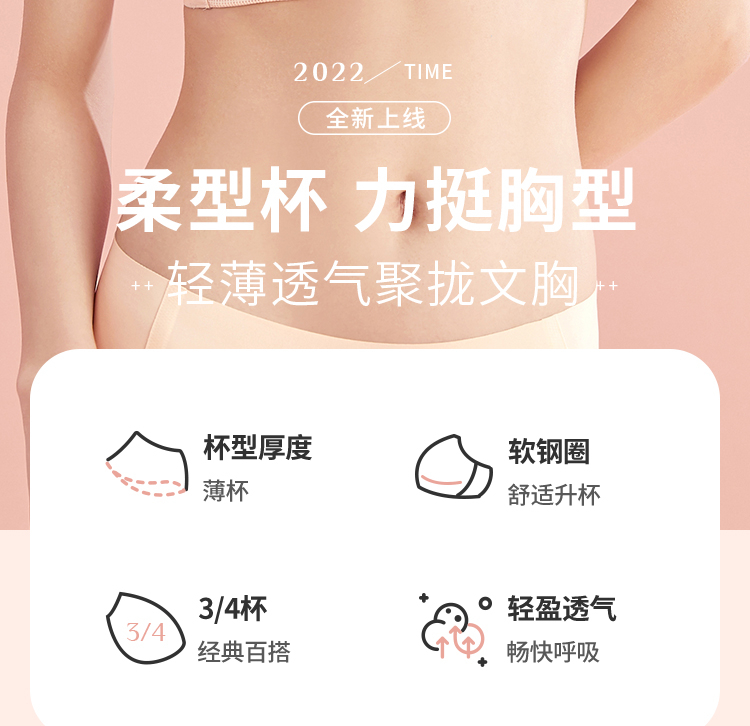 都市丽人少女三步优选BC杯调整型文胸锁边BC:薄3/4杯少女文胸四排扣无钢圈LJ22B5