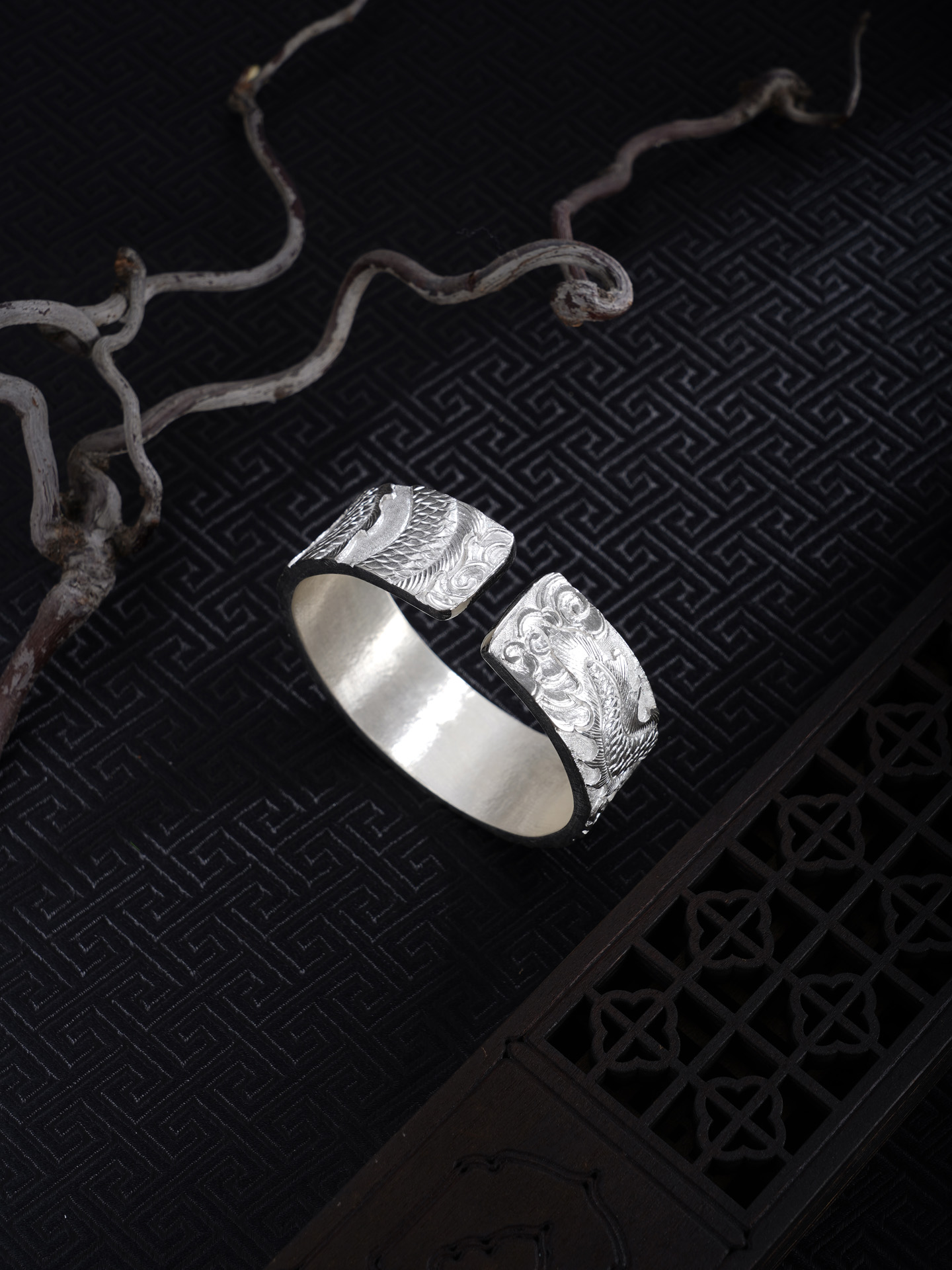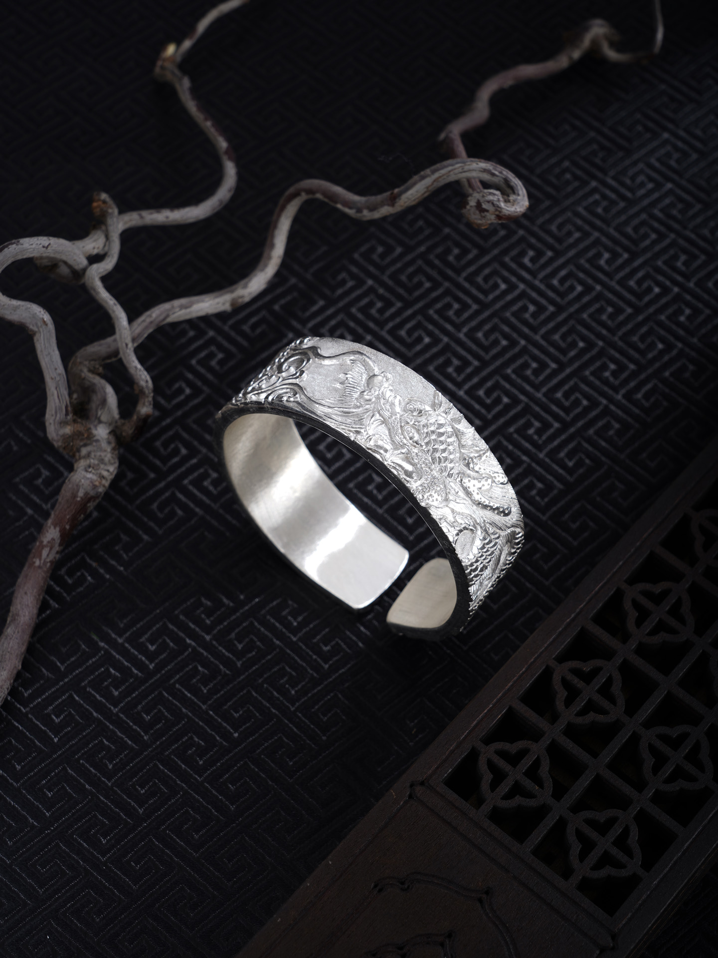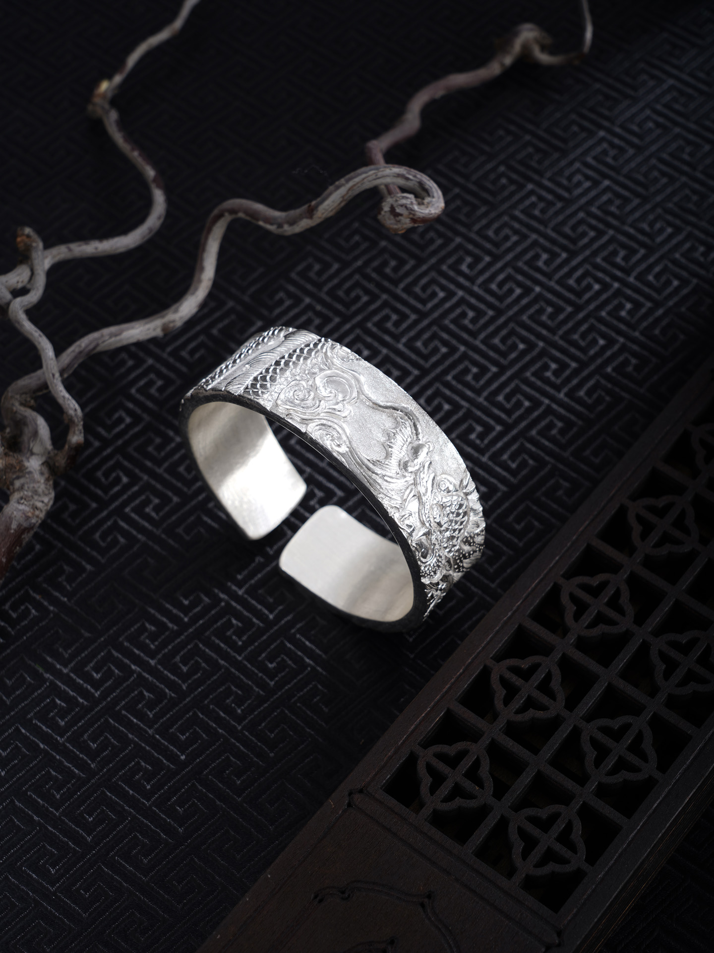 【寓意】:龙居九五之尊,乃四灵之首,象征无上权威与尊贵地位。作品以足银精铸,融合深浅浮雕与抛光工艺,塑造龙腾祥云纹样,礼赞光明盛世,寄寓祖国繁荣富强,蒸蒸日上。