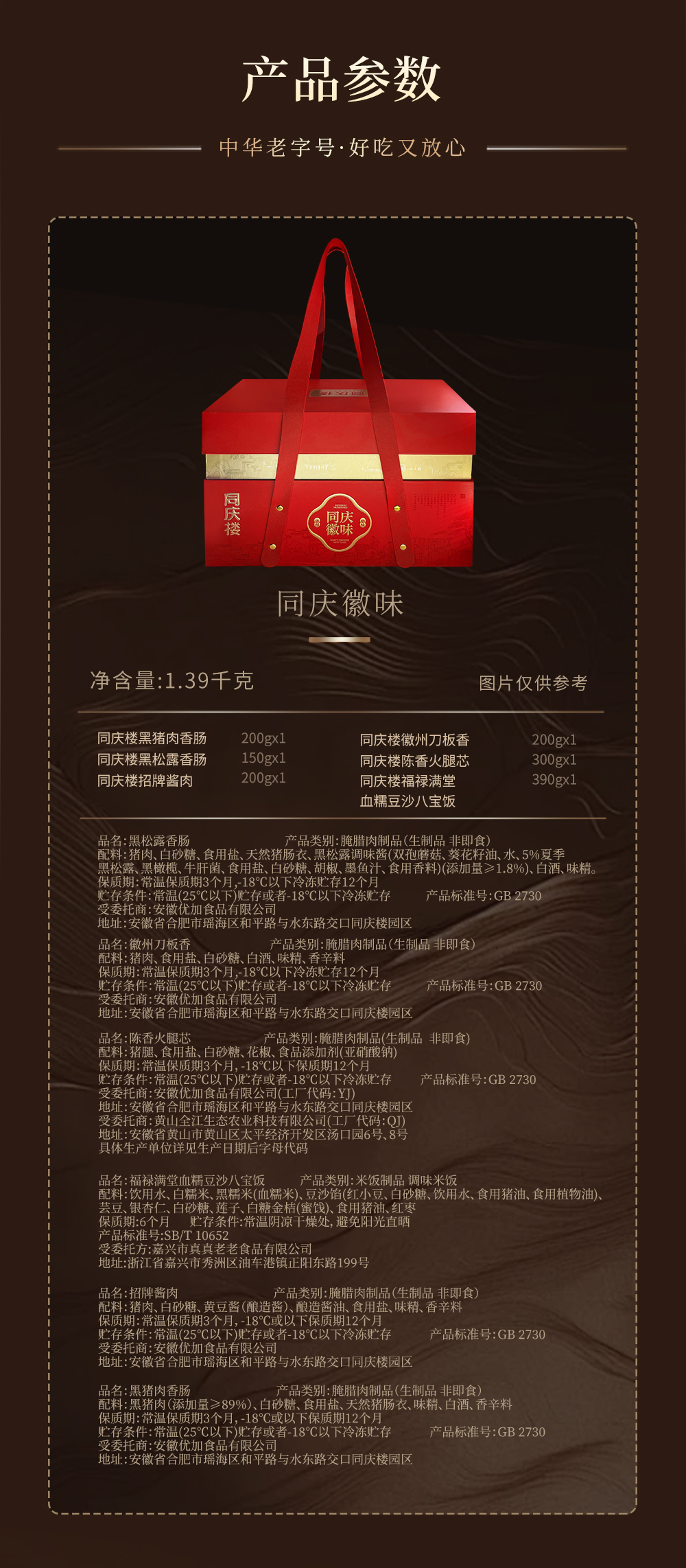 同庆楼 同庆徽味1390g 酱肉香肠刀板烧名厨菜组合装 地道徽州味 年货送礼佳品 48小时发货