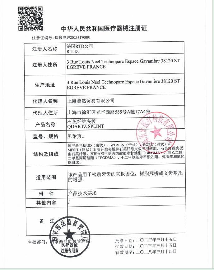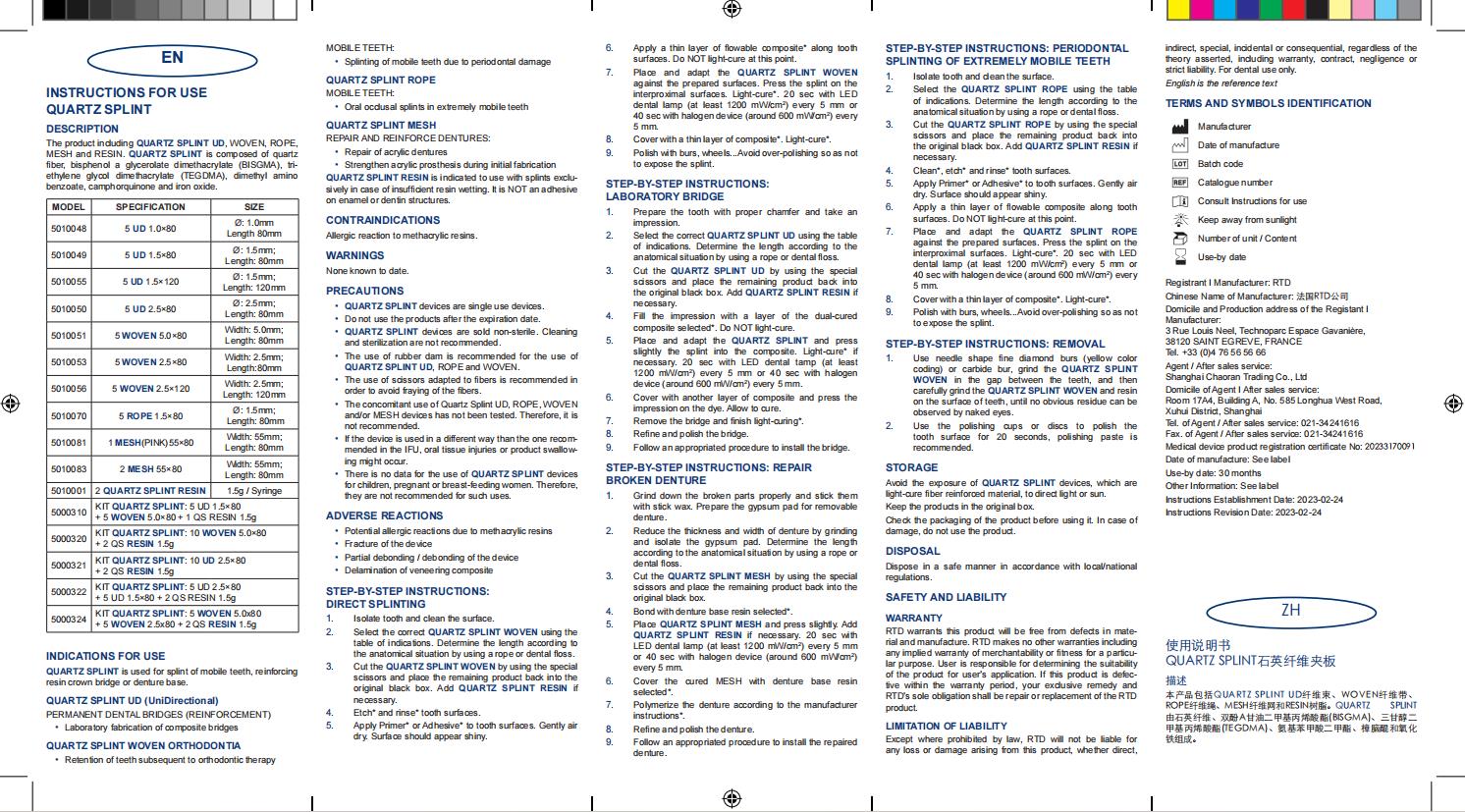 石英纤维夹板QUARTZ SPLINT( 法国RTD 石英纤维夹板 QUARTZ SPLINT 议价商品备注型号)