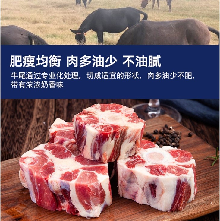 【顺丰空运】美洲原切牛尾1000g真空锁鲜 熬汤炖煮 可做牛肉罐头 牛肉干等 包邮