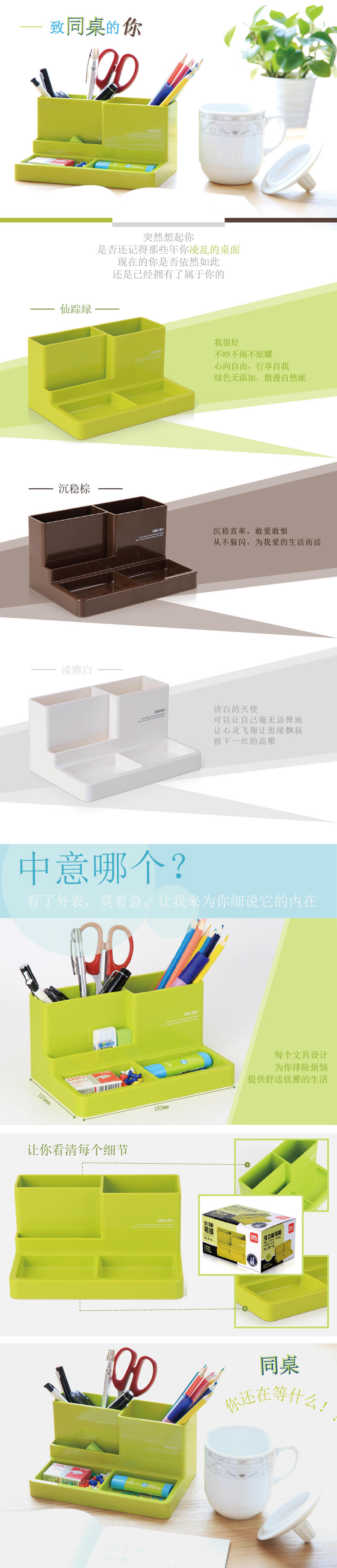 得力9115多功能笔筒(白色)(只)