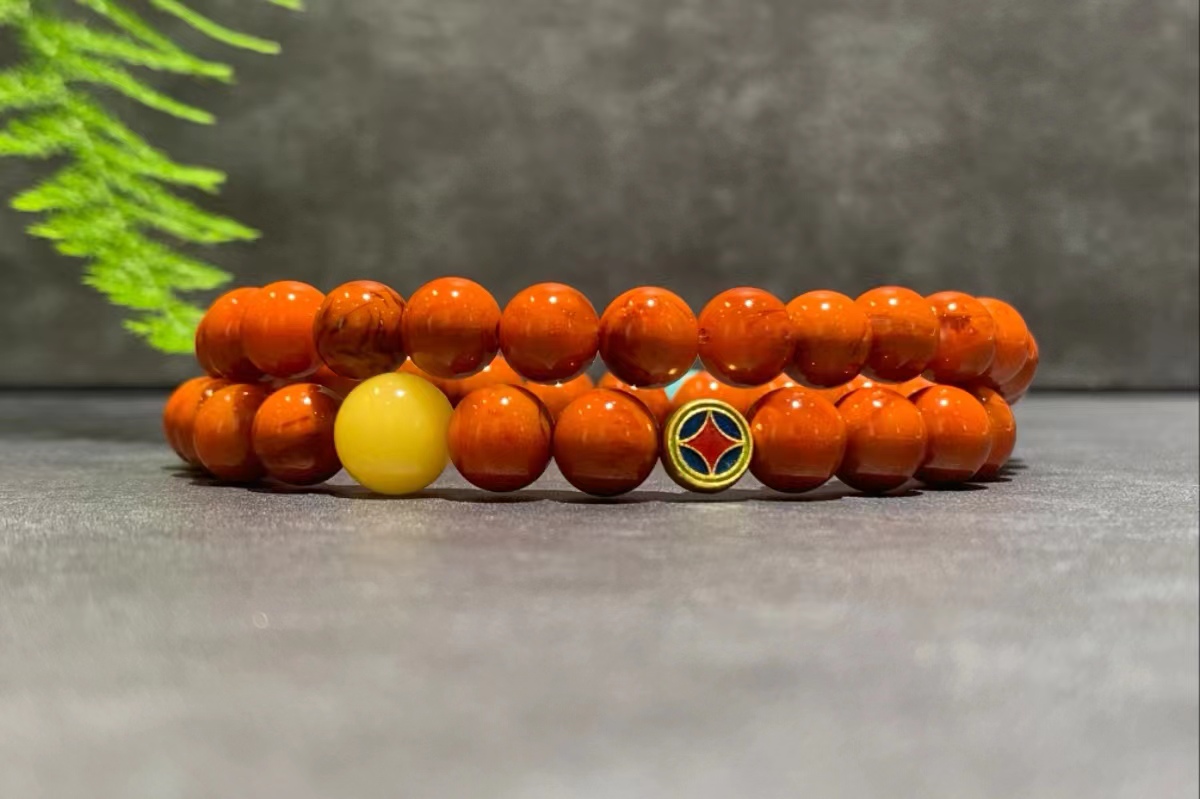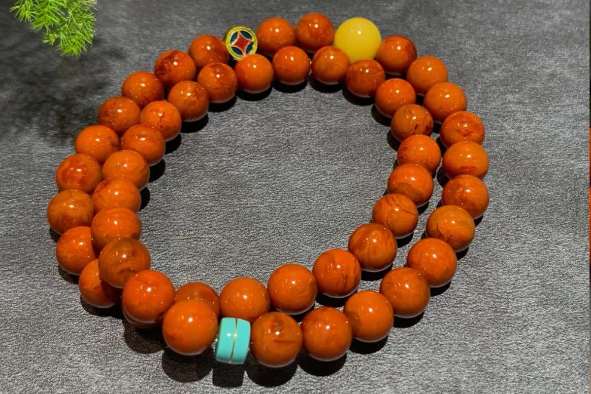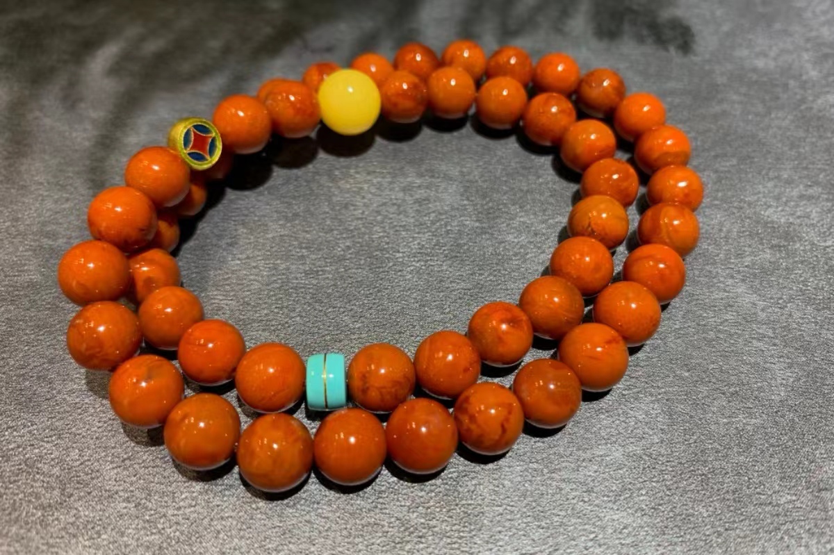 搭配24K古法金圆牌、原矿绿松和蜜蜡,更添时尚多彩~