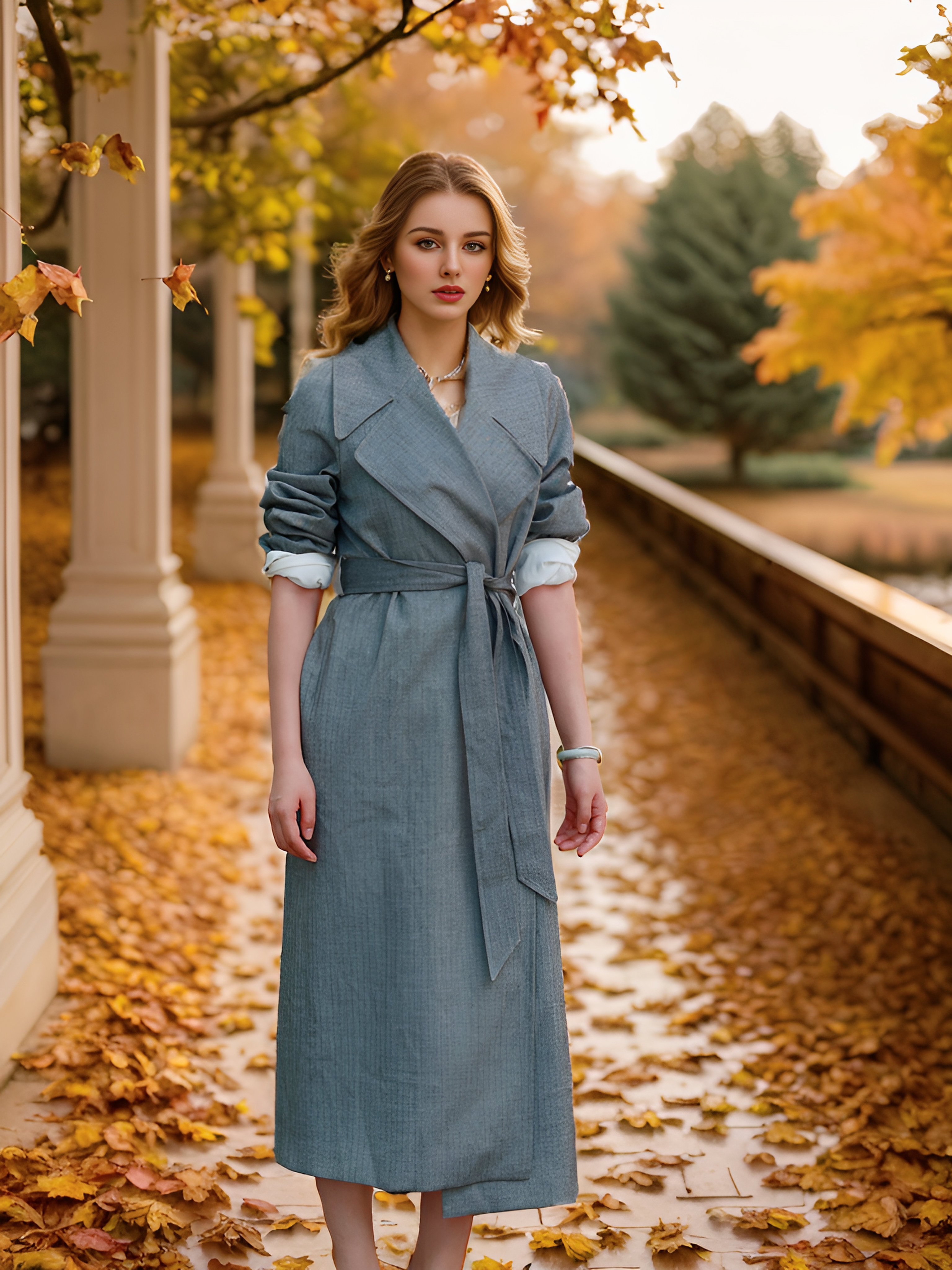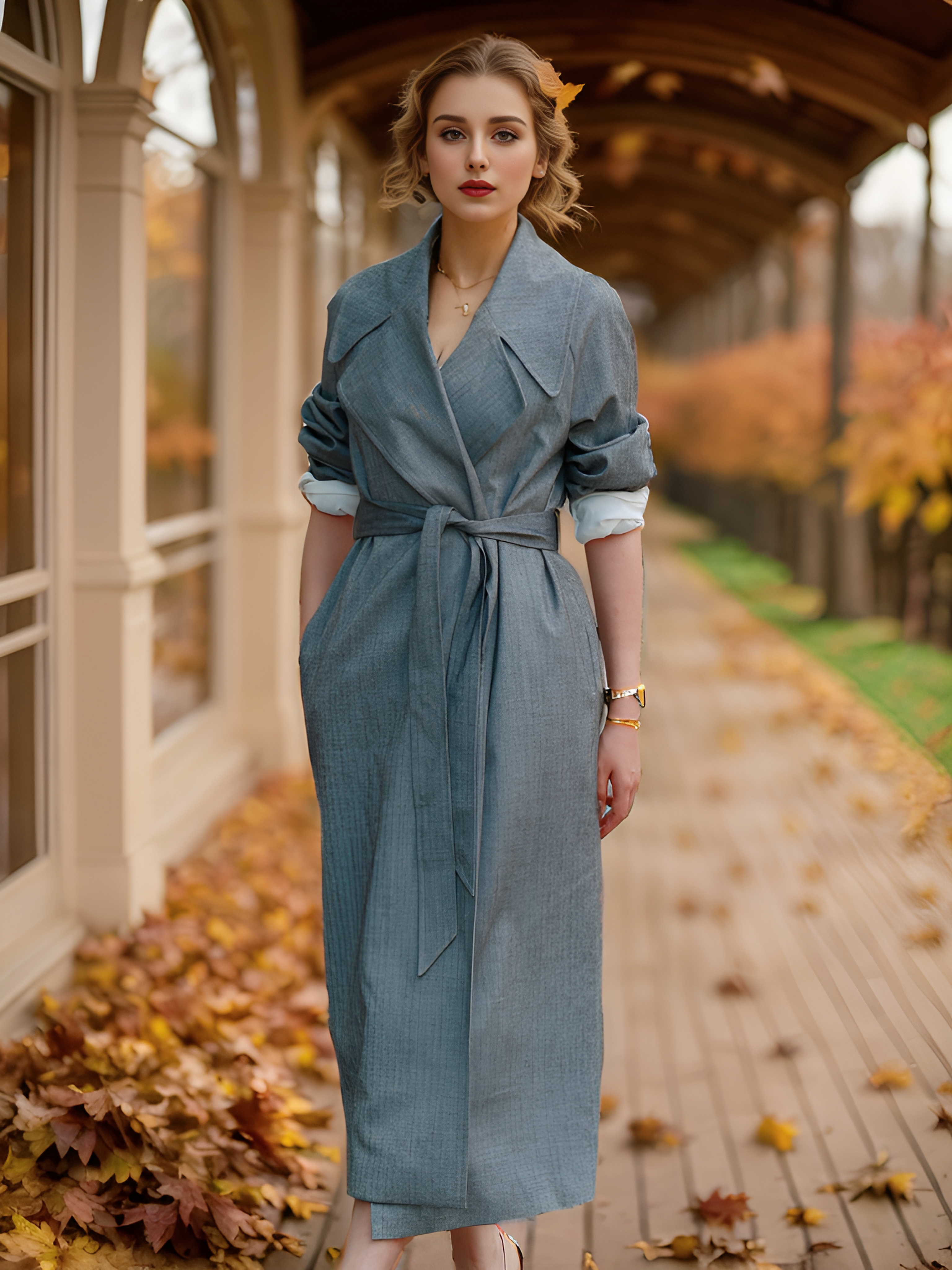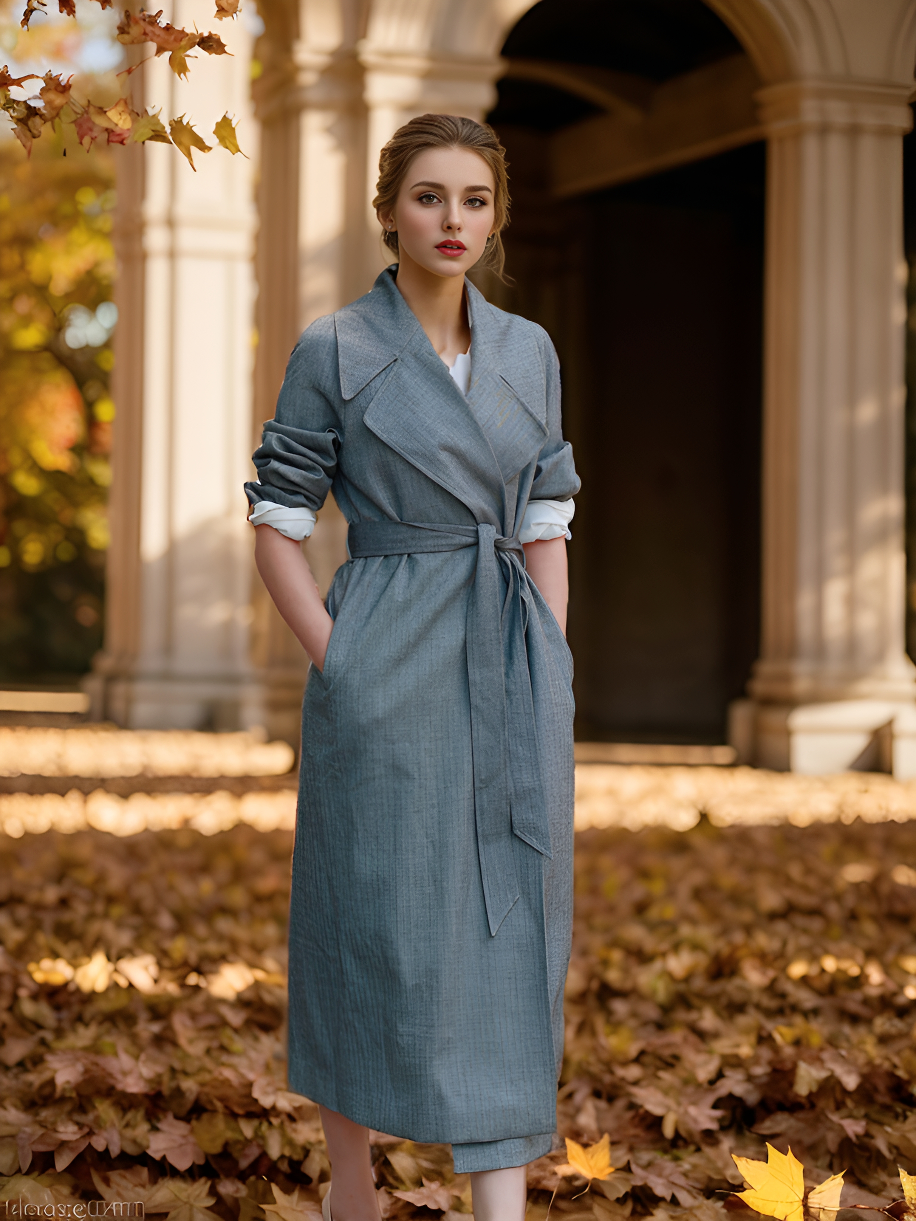 商品:LV HL 插肩袖大翻领超长系腰带款风衣(附腰带)
