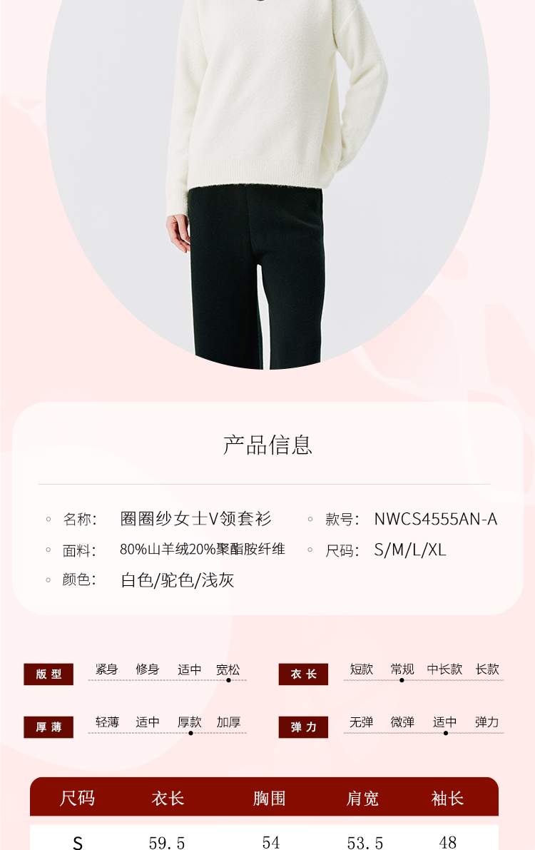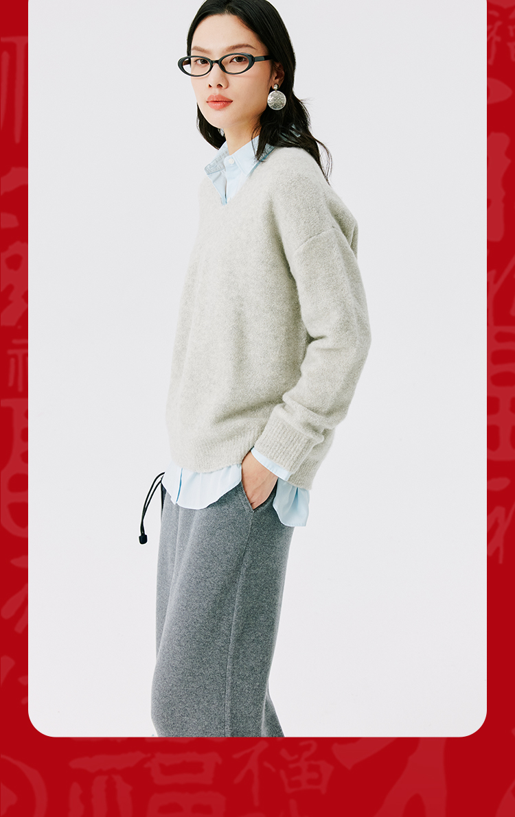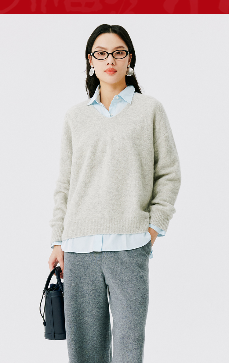 东黎 • 圈圈纱女士秋冬V领套衫 4555