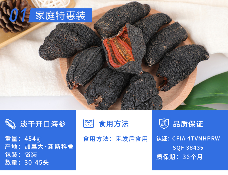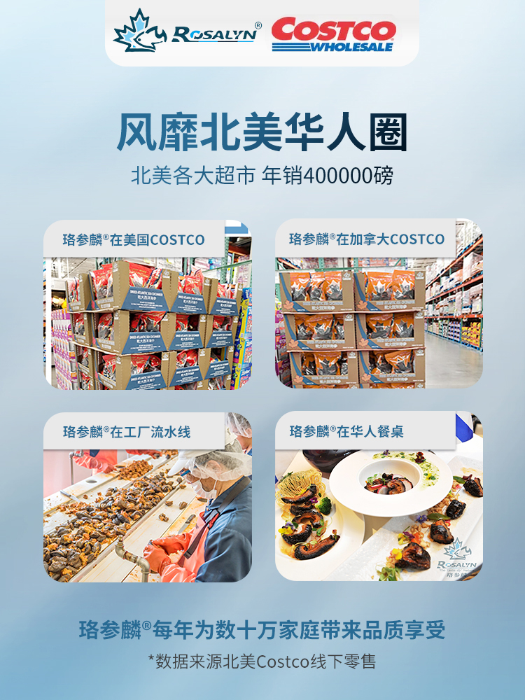 加拿大Costco野生淡干海参(1磅)ROSALYN 加拿大进口淡干海参开口参