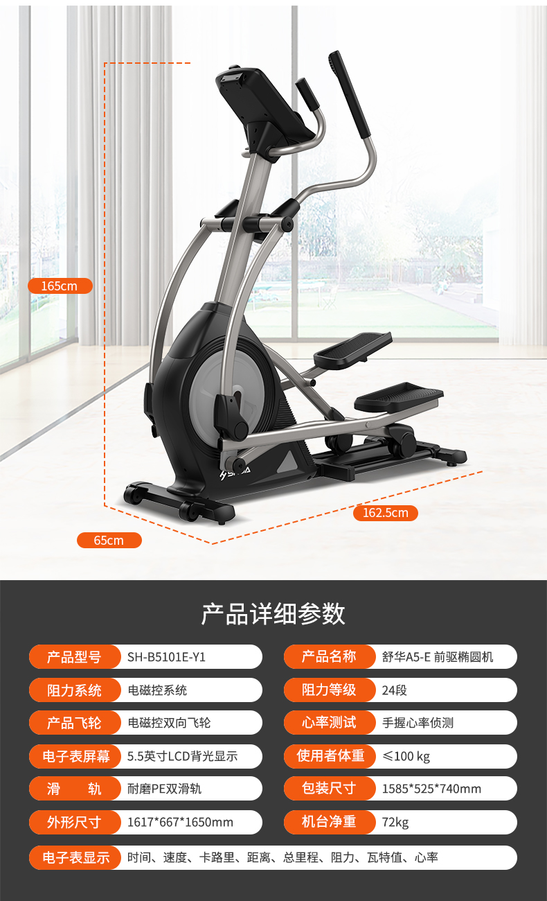 舒华家用椭圆机前驱电磁控室内健身小空间太空漫步机B5101E