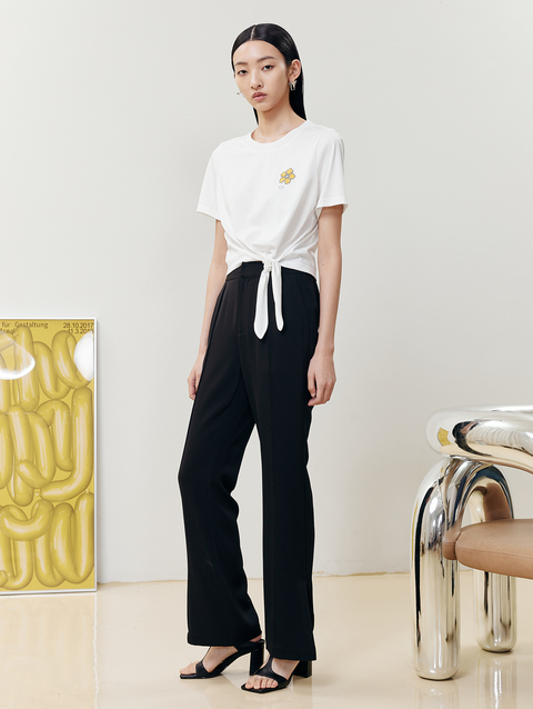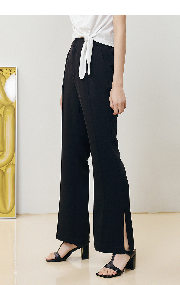 NEELLY纳俪商场同款黑色西装裤女下开叉气质微喇阔腿裤百搭休闲裤N22061H01188