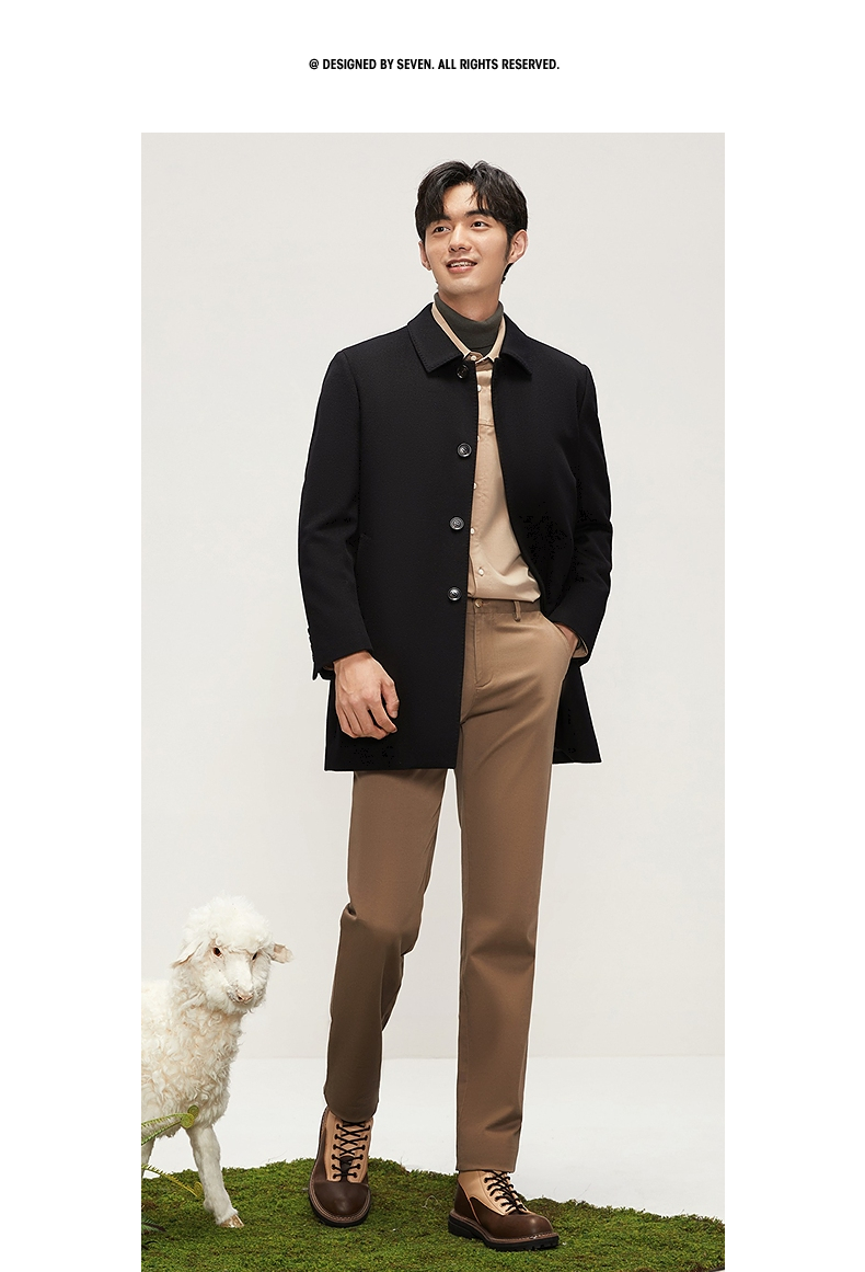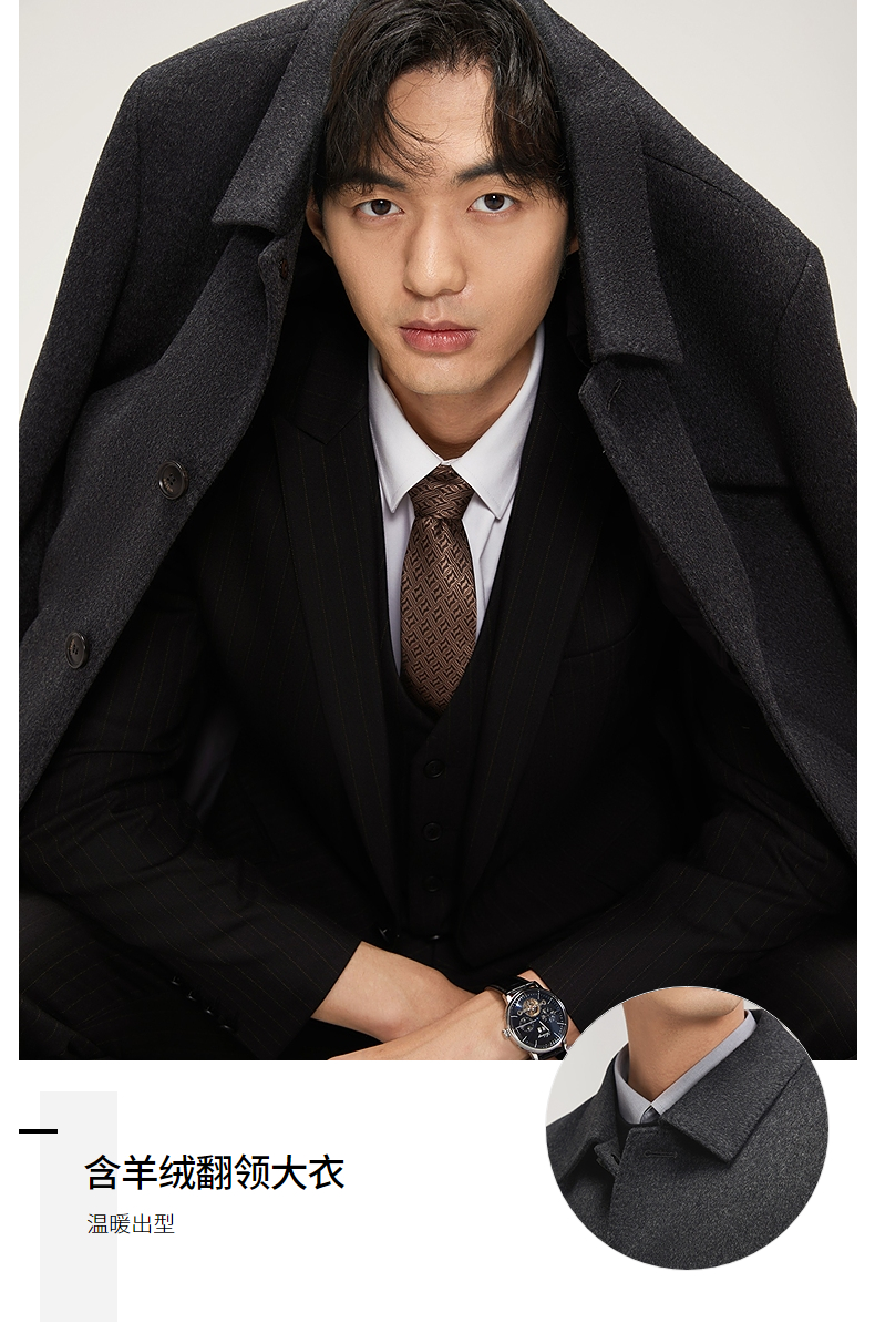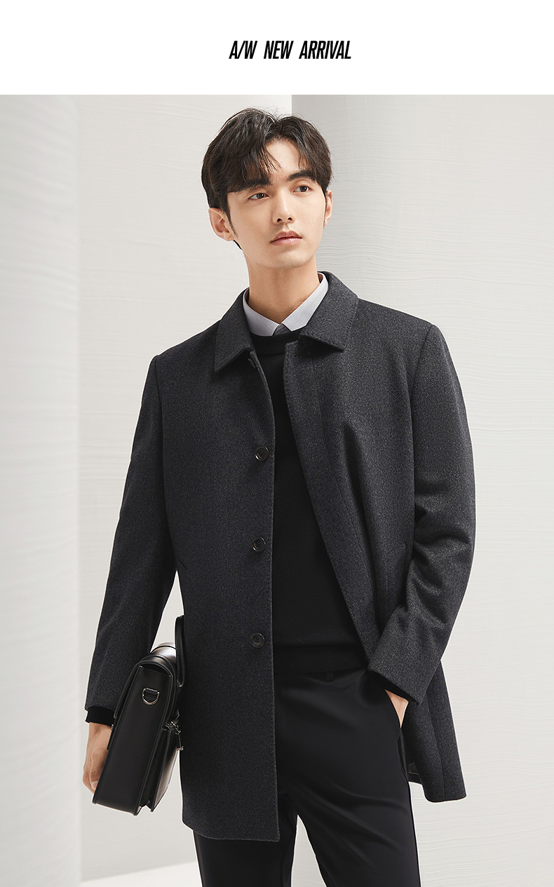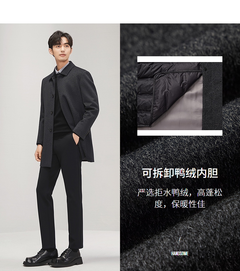 【含羊毛】柒牌男士毛呢大衣秋冬新品可拆羽绒内胆中长款休闲外套 127D70160
