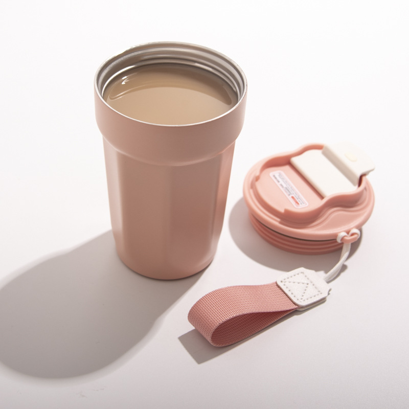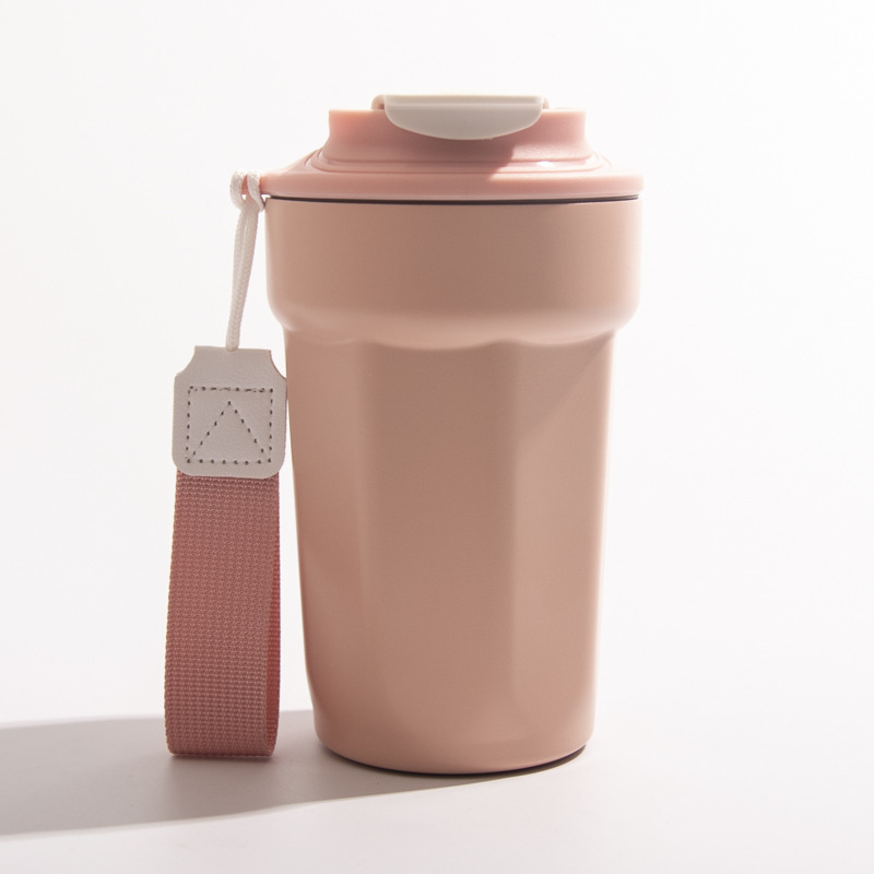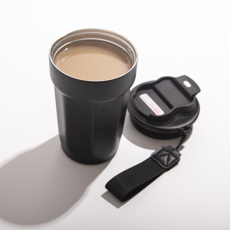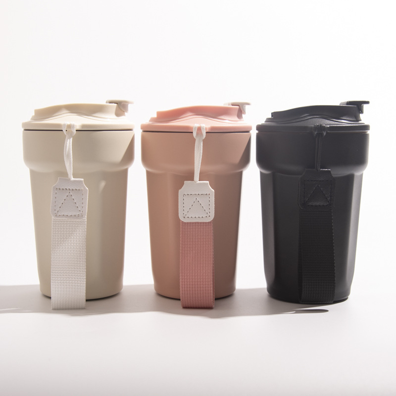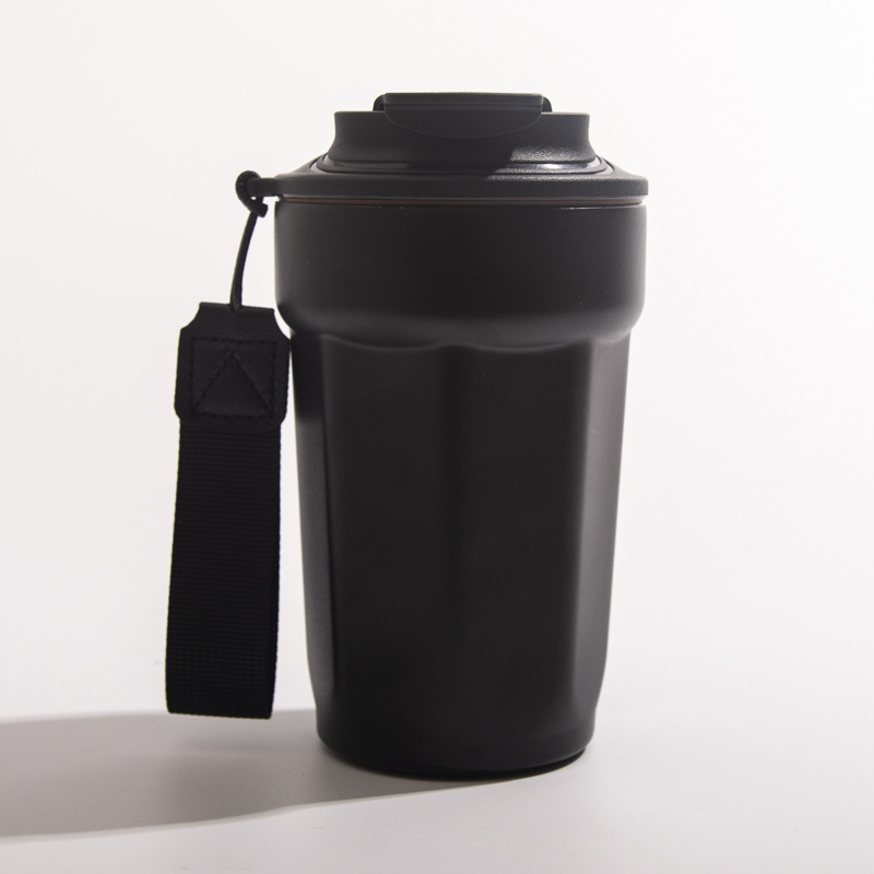 【咖啡杯】双层咖啡杯不锈钢保温杯提绳运动休闲杯子双层真空杯