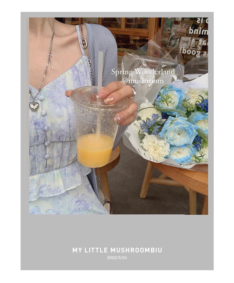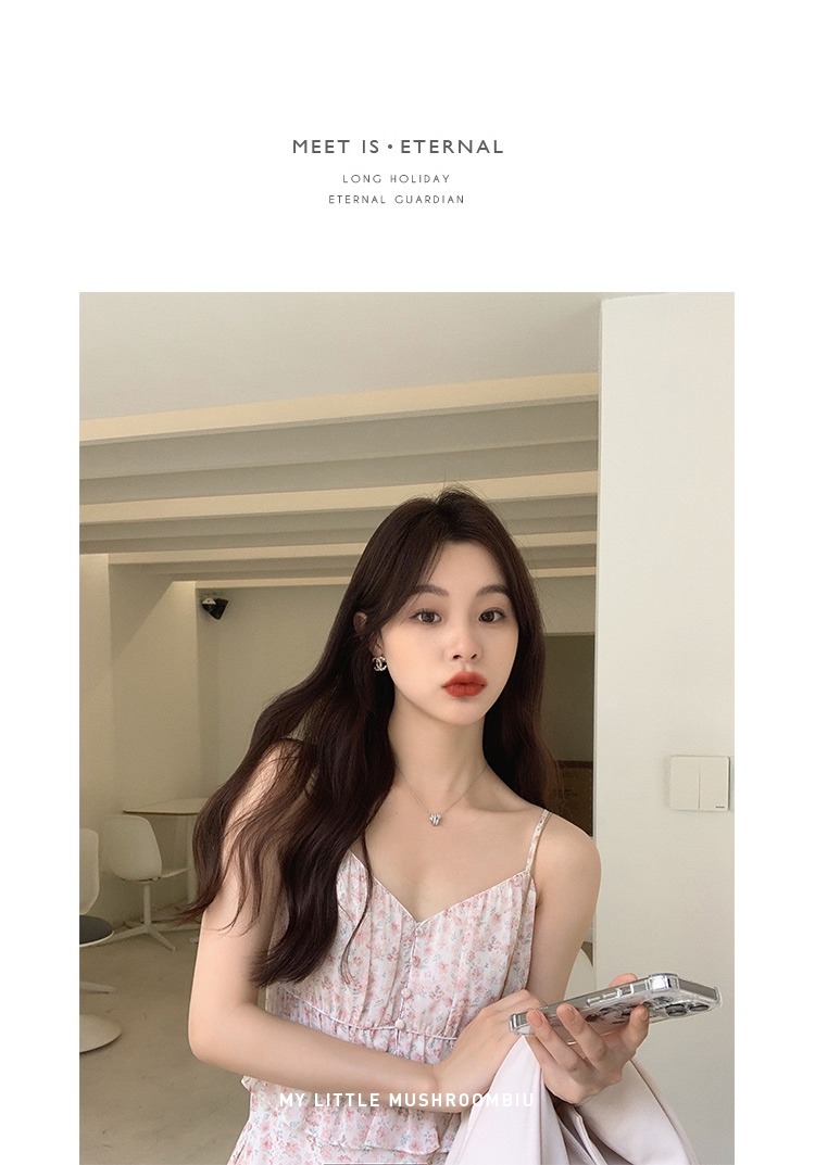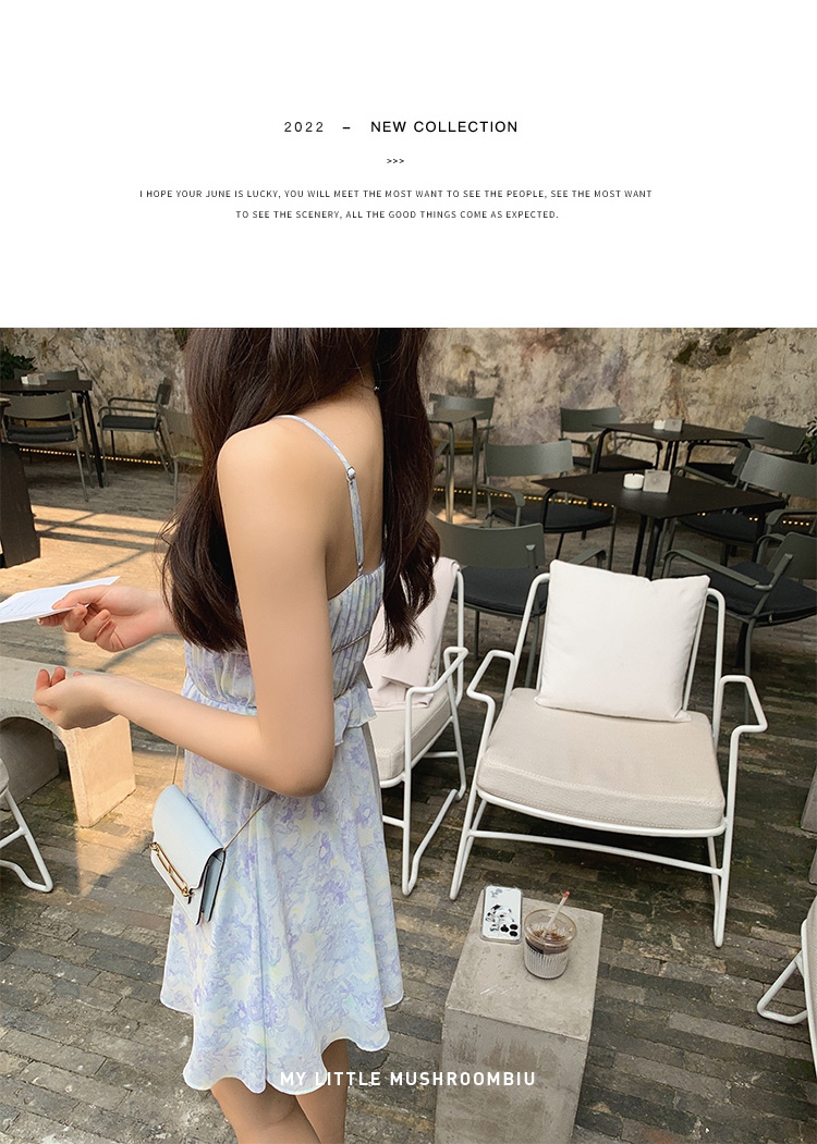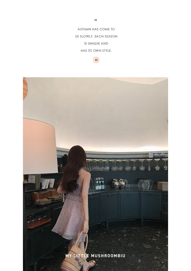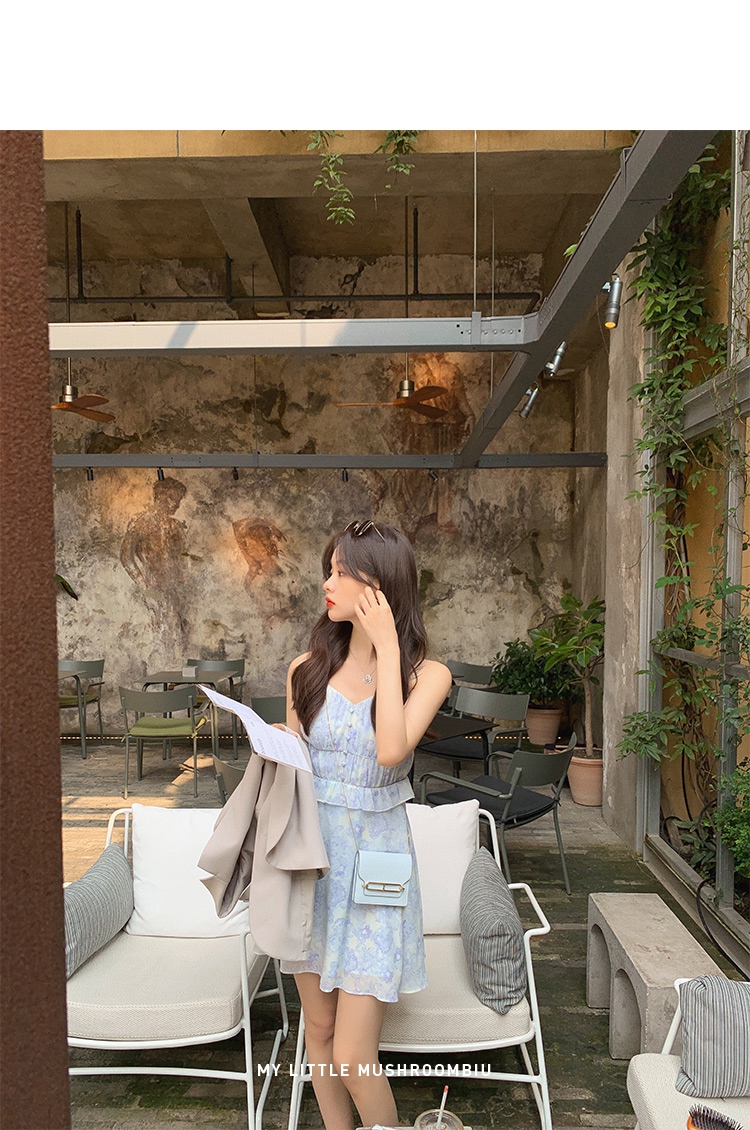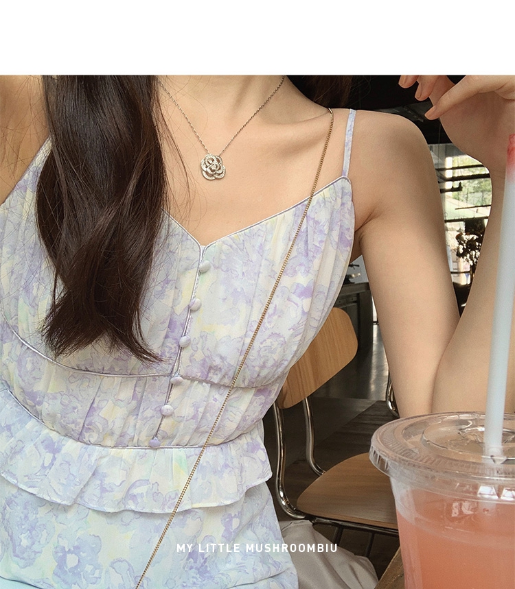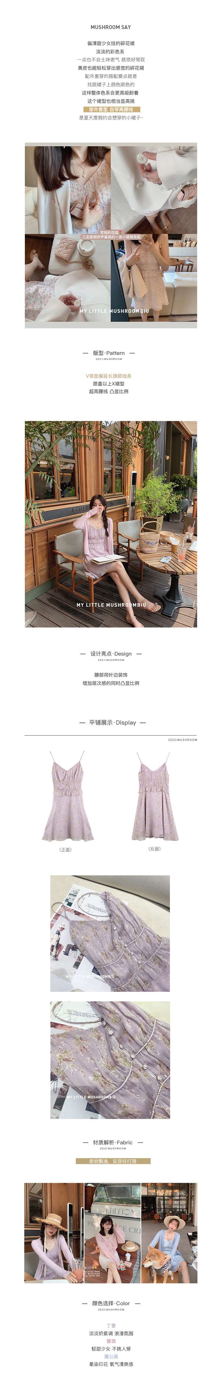 金蘑菇菇【梵高的花园】三亚度假裙!收腰气质甜辣碎花吊带连衣裙