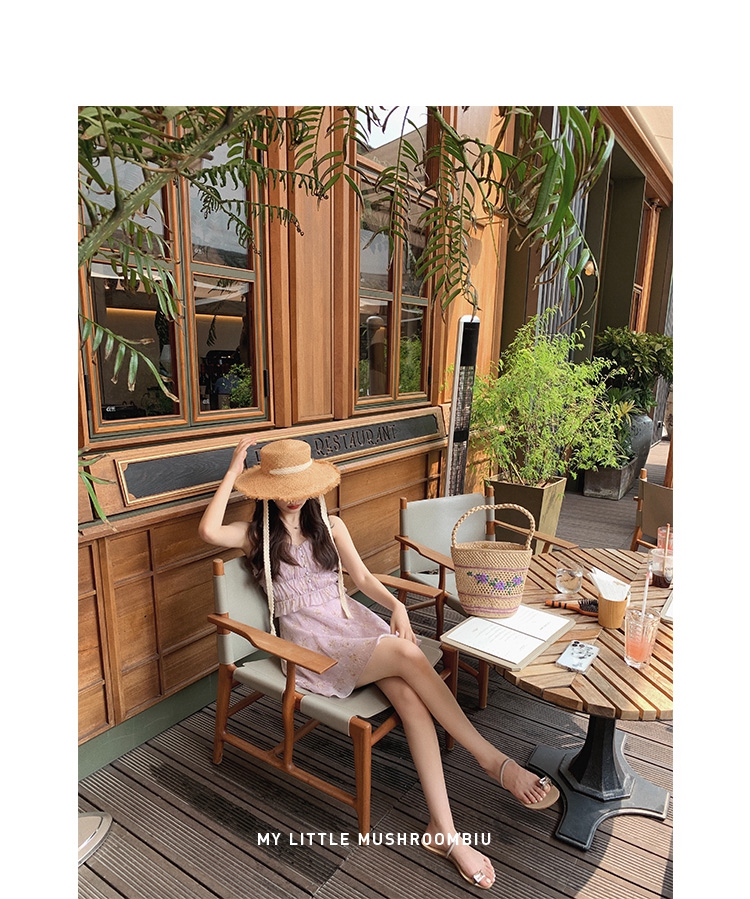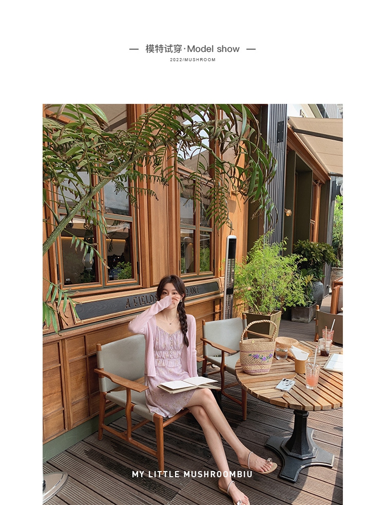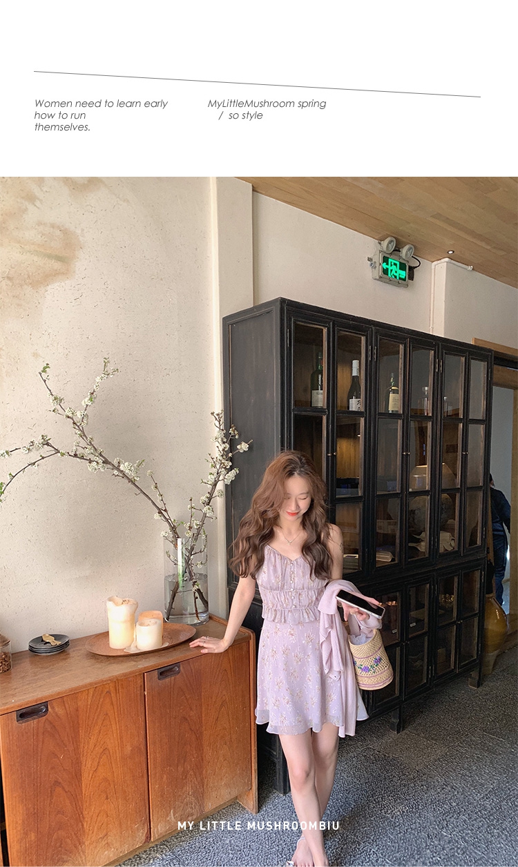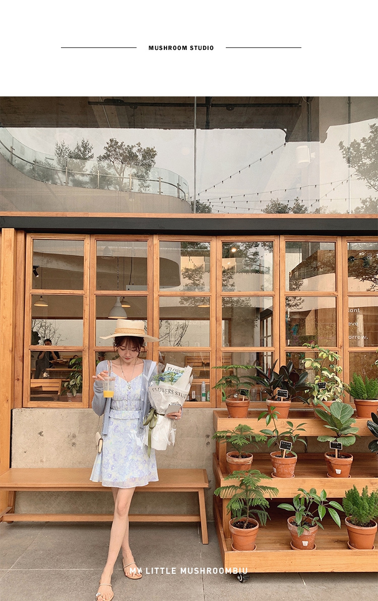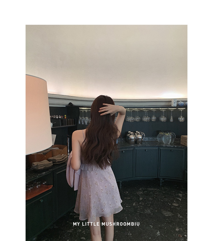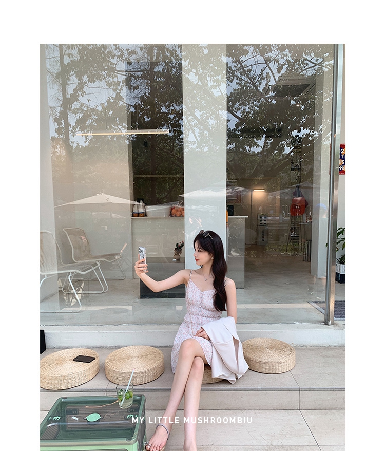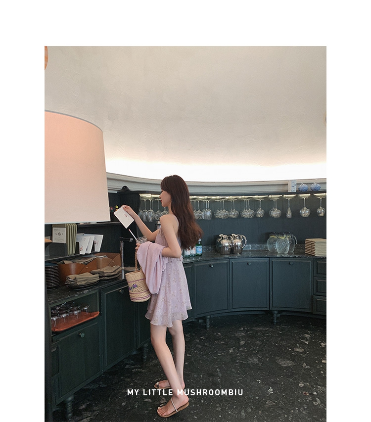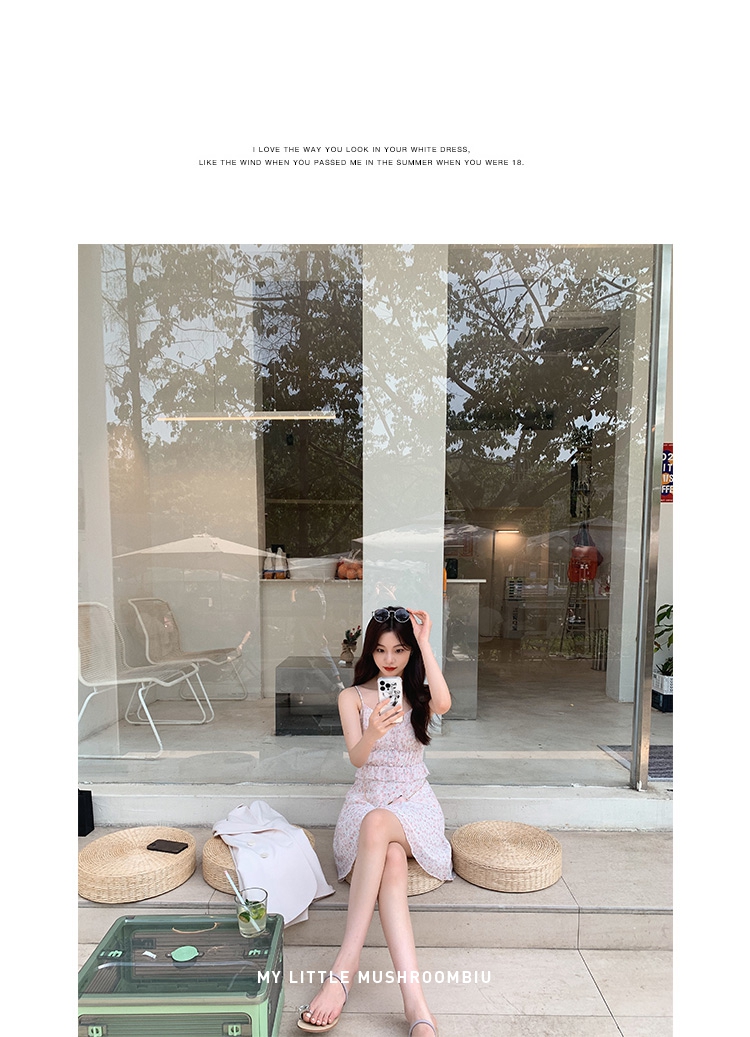 金蘑菇菇【梵高的花园】三亚度假裙!收腰气质甜辣碎花吊带连衣裙