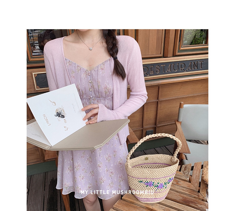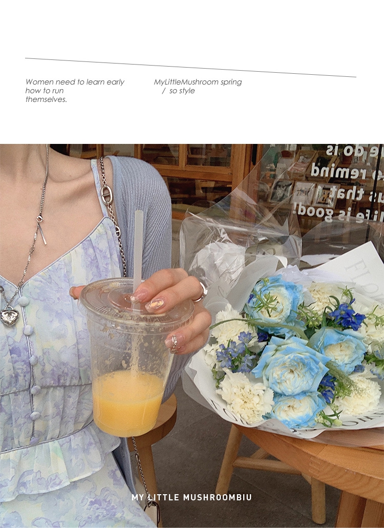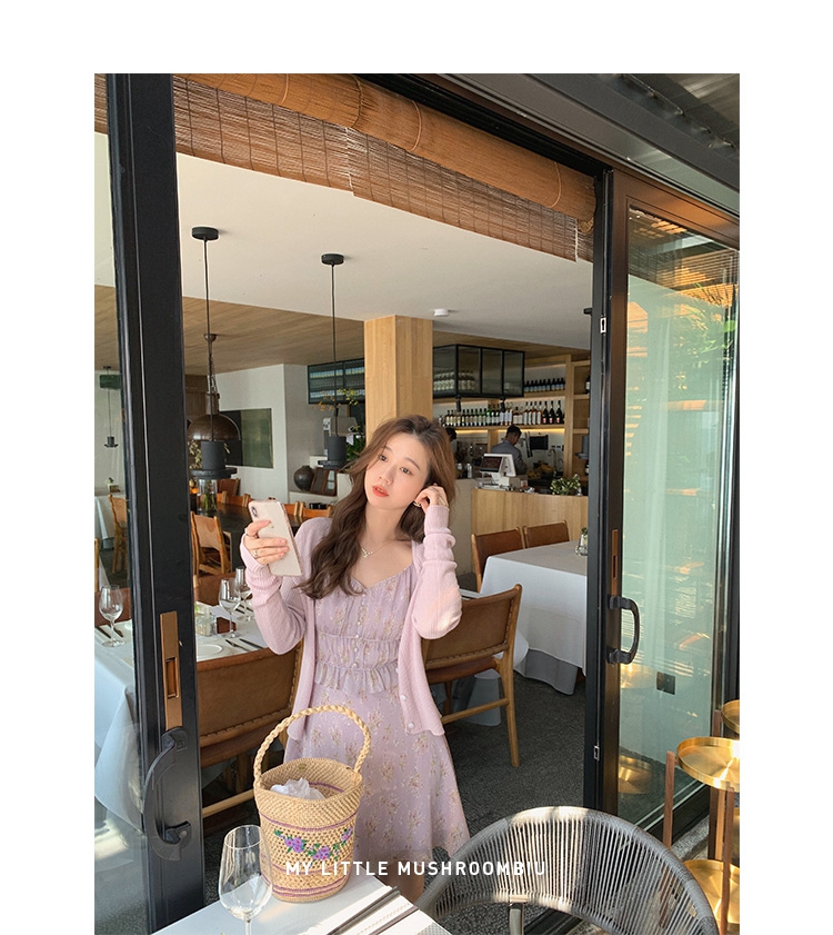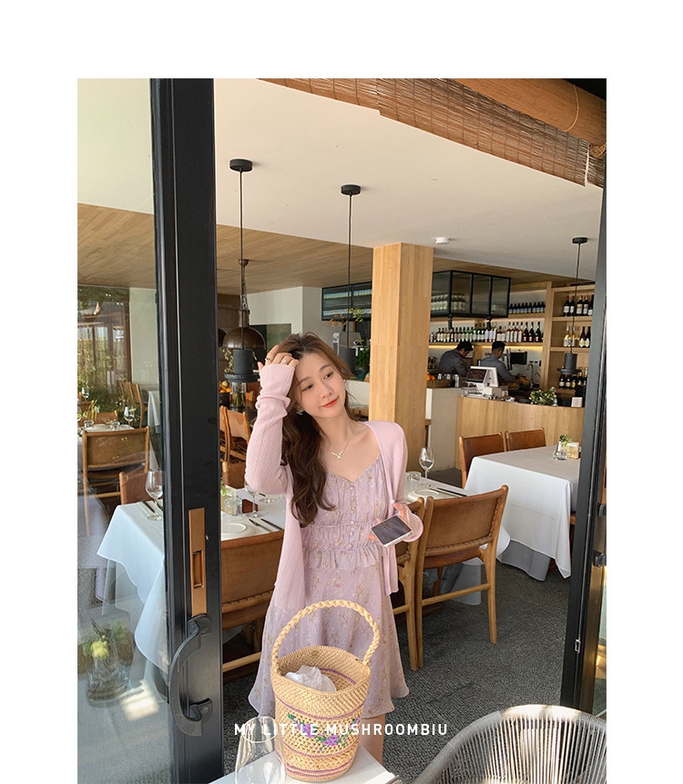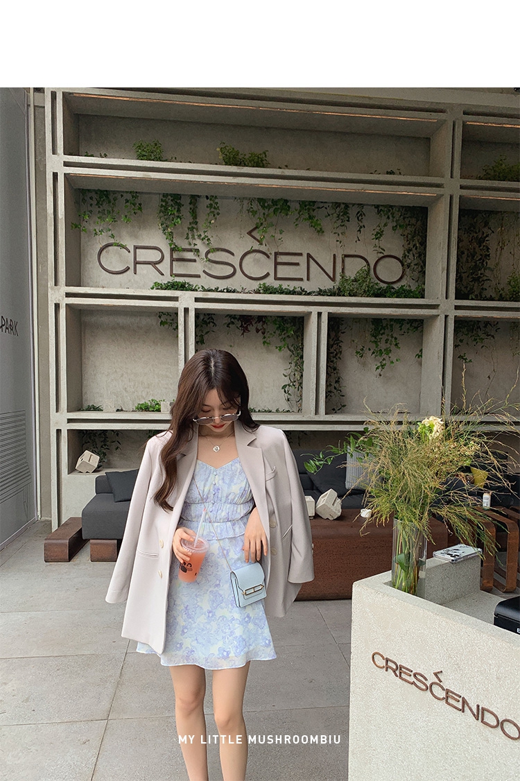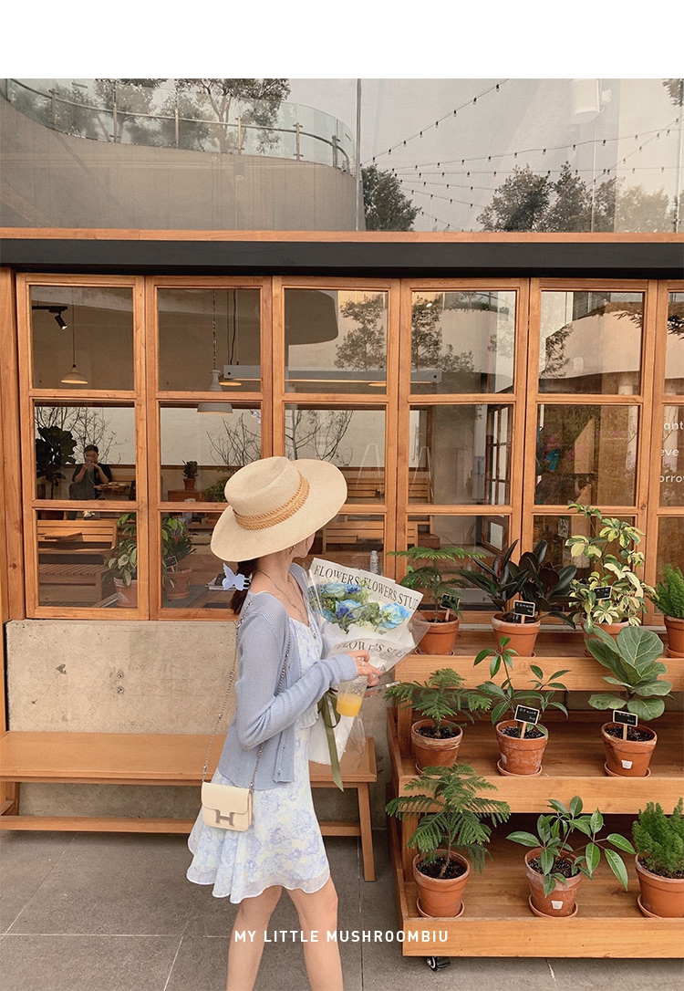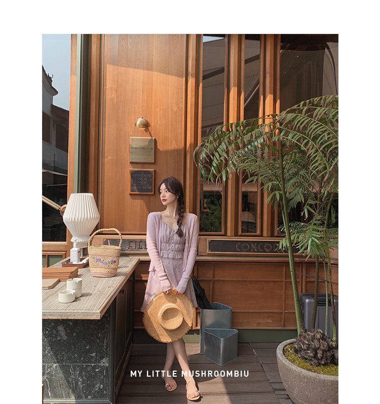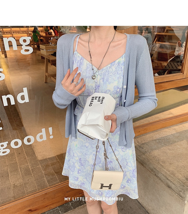 金蘑菇菇【梵高的花园】三亚度假裙!收腰气质甜辣碎花吊带连衣裙