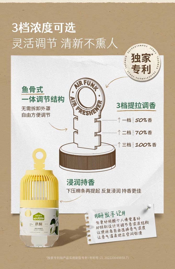 【持久净味 清新70天】Air Funk净味清新香氛 三档式提拉香气浓度随心 防漏误触保护 卧室卫生间厕所除臭香氛持久 空气清新剂芳香水 350ml/瓶