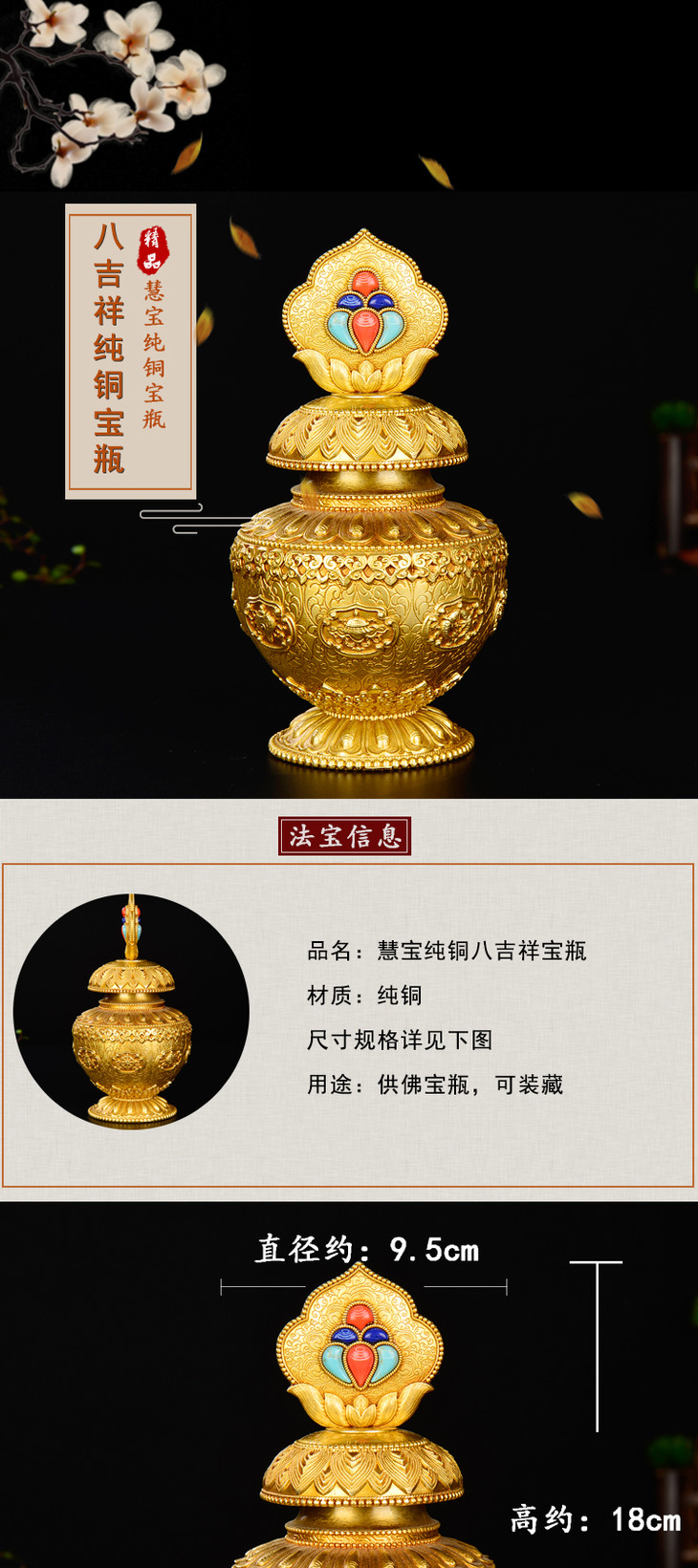 八吉祥宝瓶慧宝纯铜宝瓶