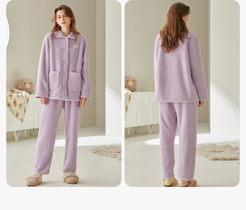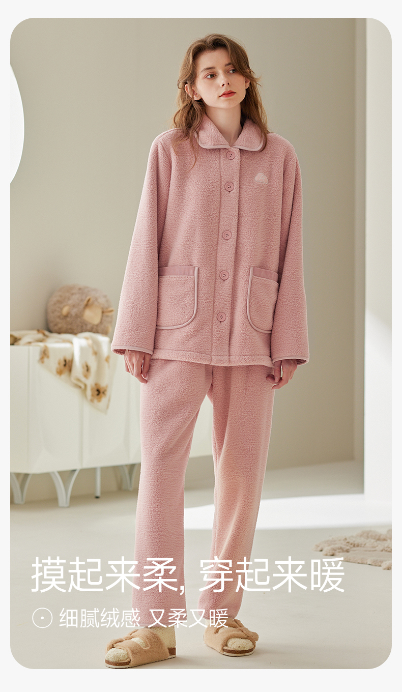 珊瑚绒冬季女士加绒加厚保暖家居服套装 芬腾