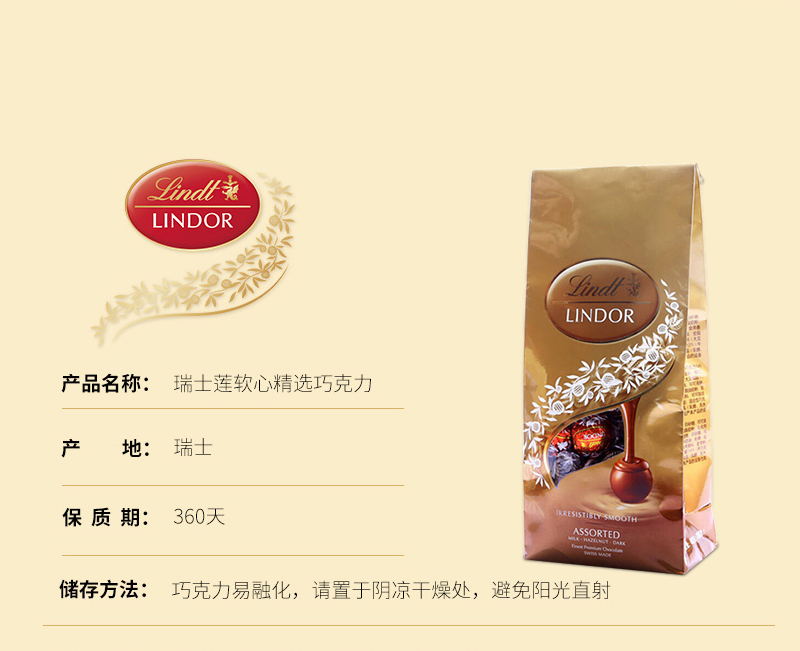 瑞士莲软心精选巧克力-约40粒分享装480g/044141 难以抗拒的幼滑软心口感丝滑