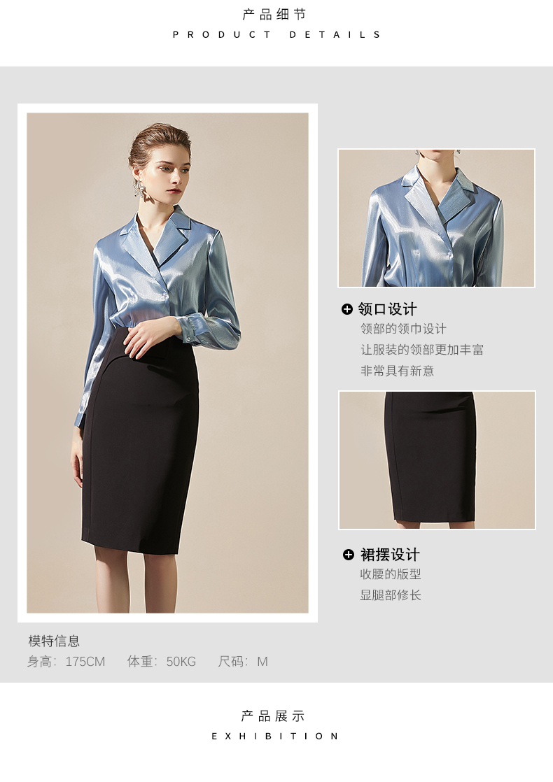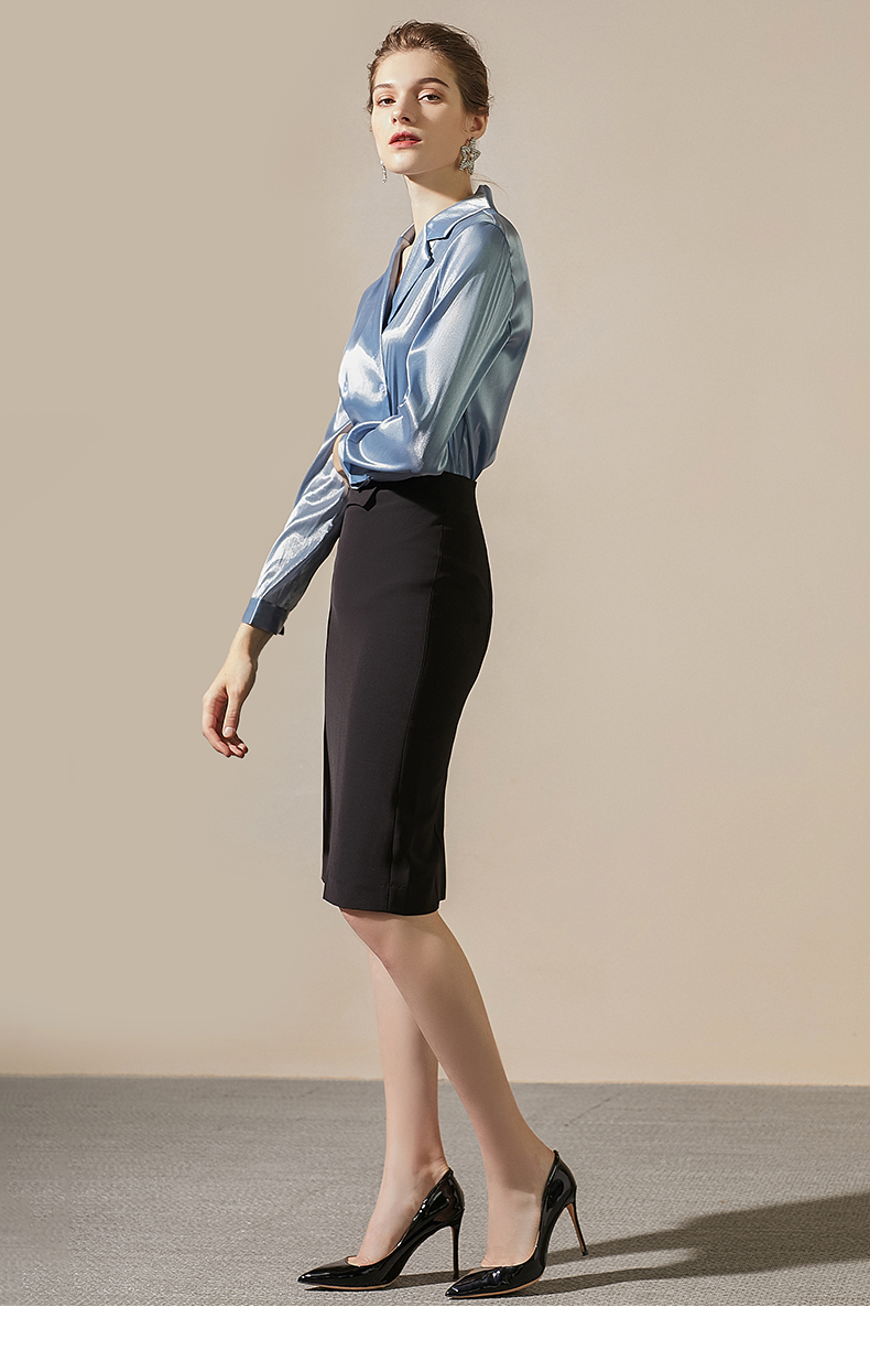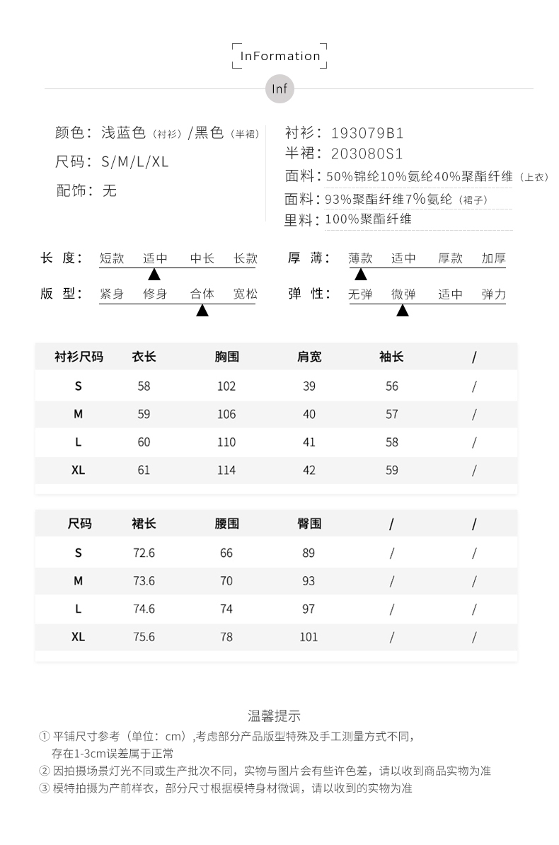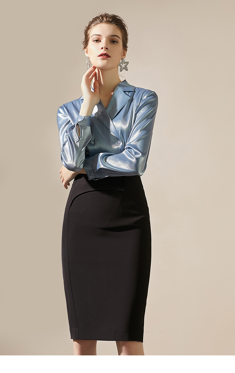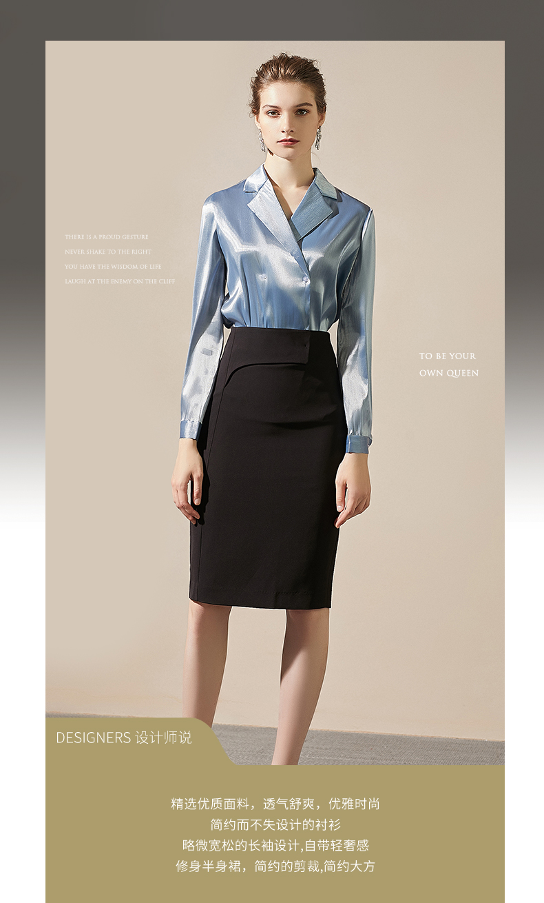 IWY/ 高端浅蓝色衬衫时尚修身显瘦套裙女商务通勤上班气质女神193079B1+25B1