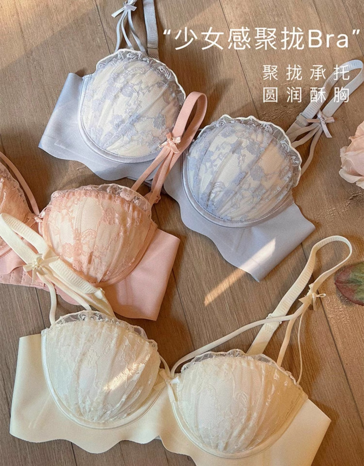 【买一送一!仙女聚拢bra】爆款无痕蕾丝小胸聚拢收副乳,聚拢承托圆润su胸,无钢圈性感内衣女防下垂舒适新款少女文胸罩套QQ