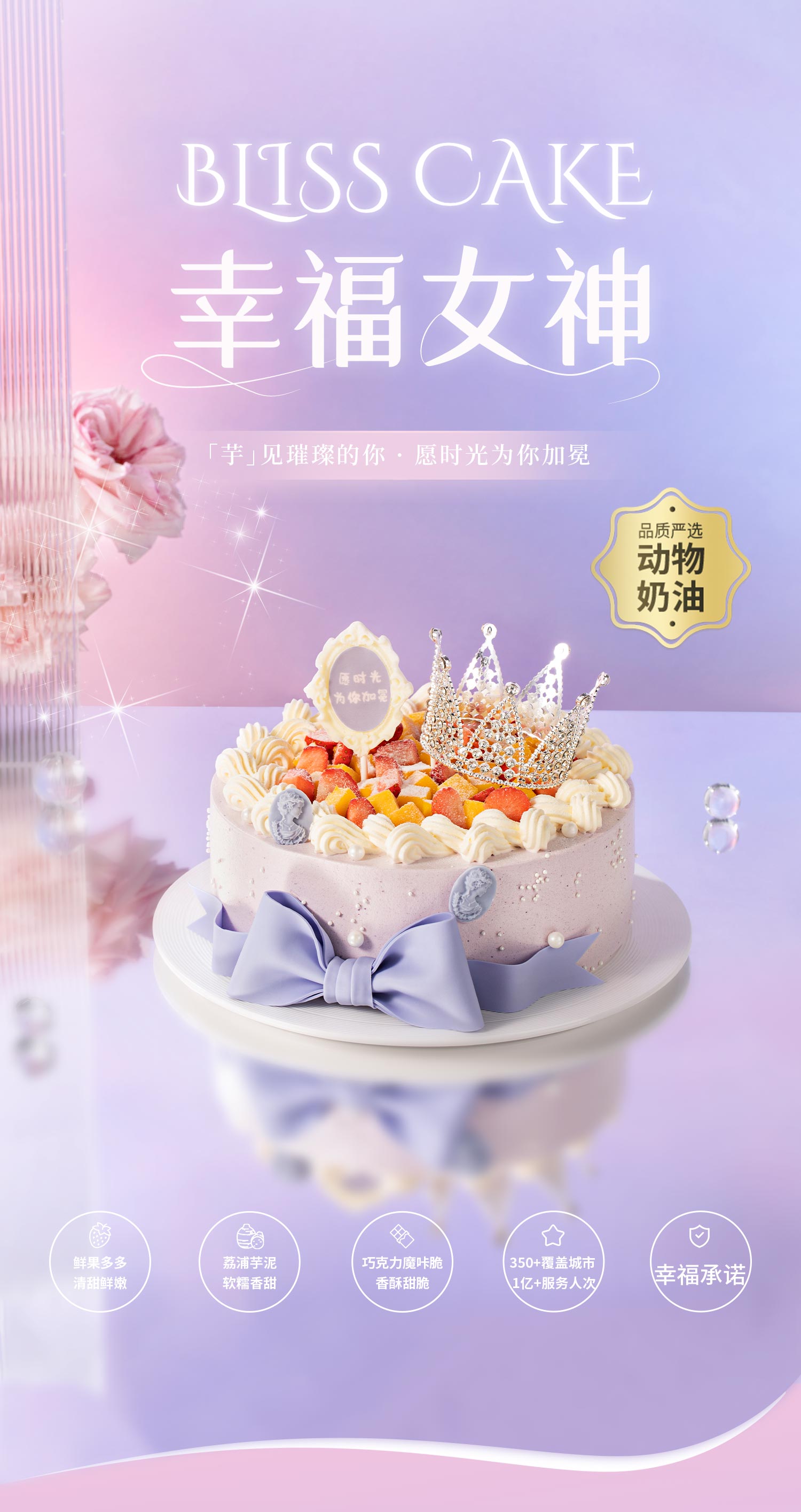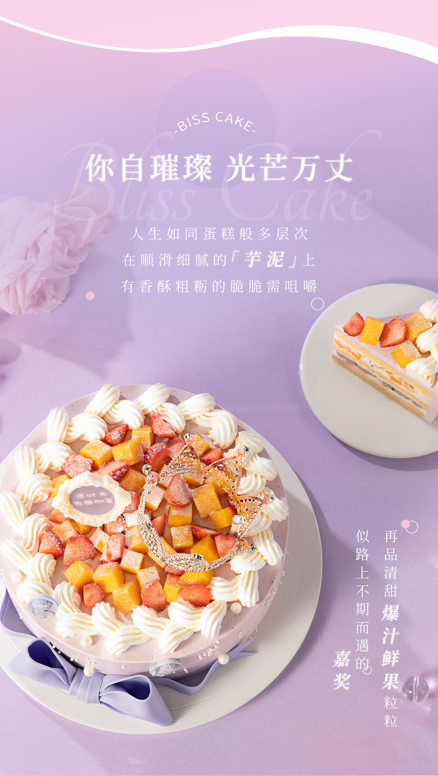 【幸福女神】送女神推荐的生日蛋糕,璀璨皇冠自带光芒,愿你做自己的女王;草莓+芒果粒夹心搭配软糯香甜的荔浦芋泥,水果营养,口感丰富