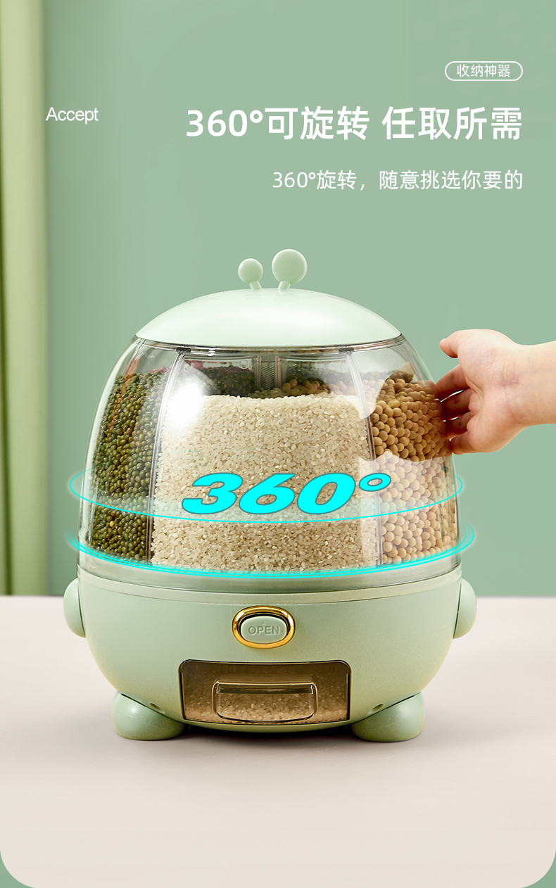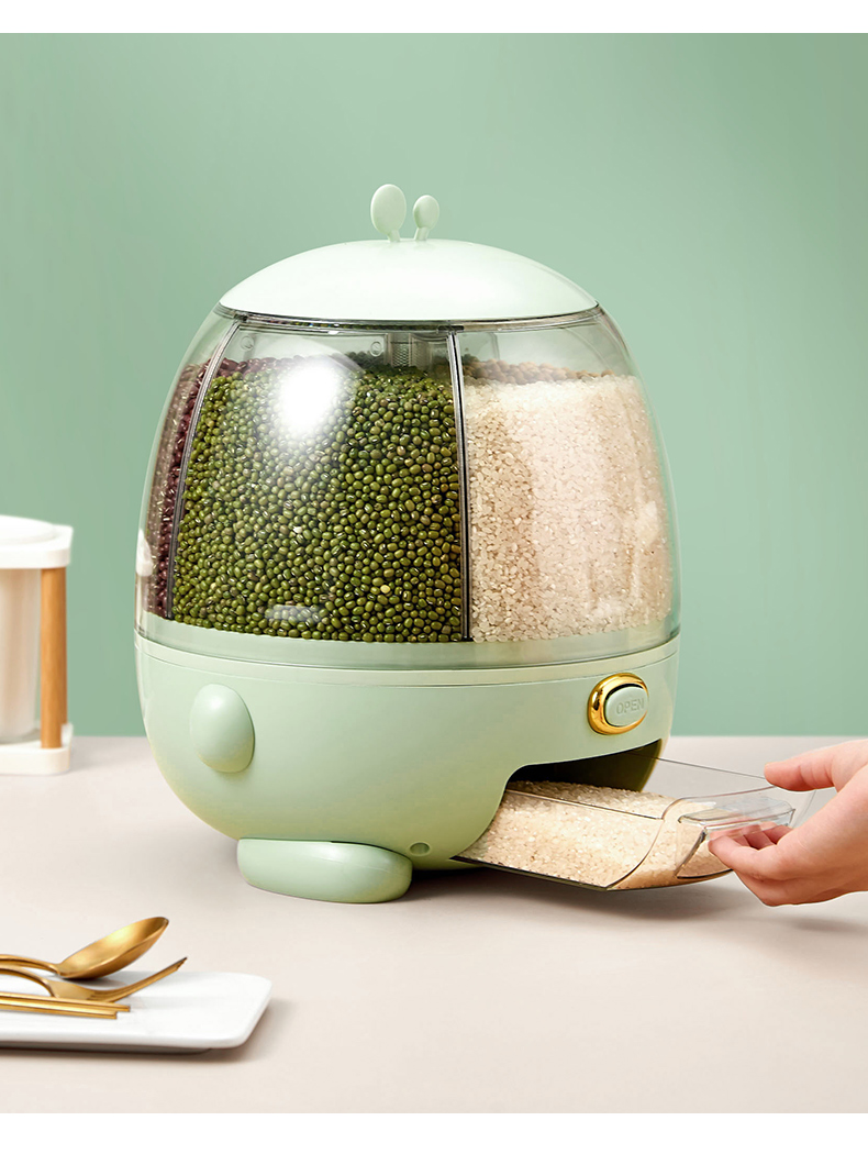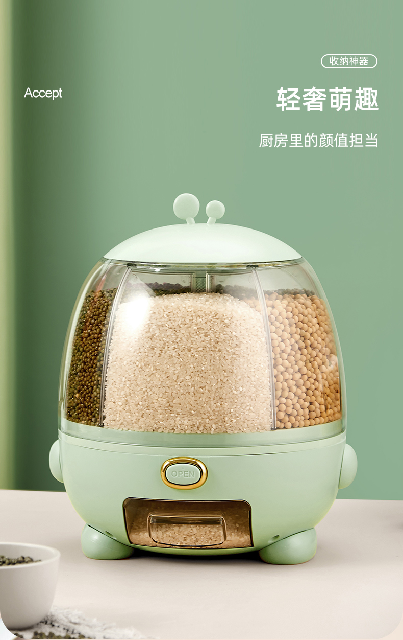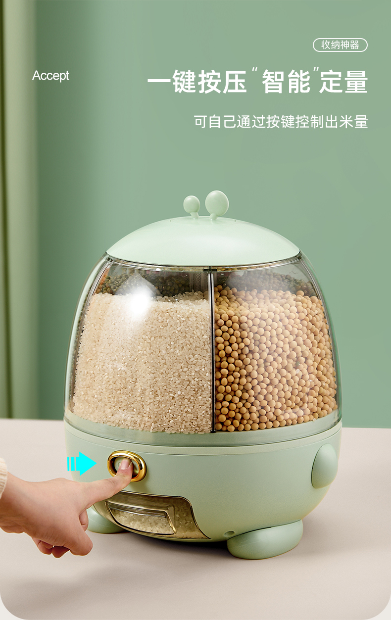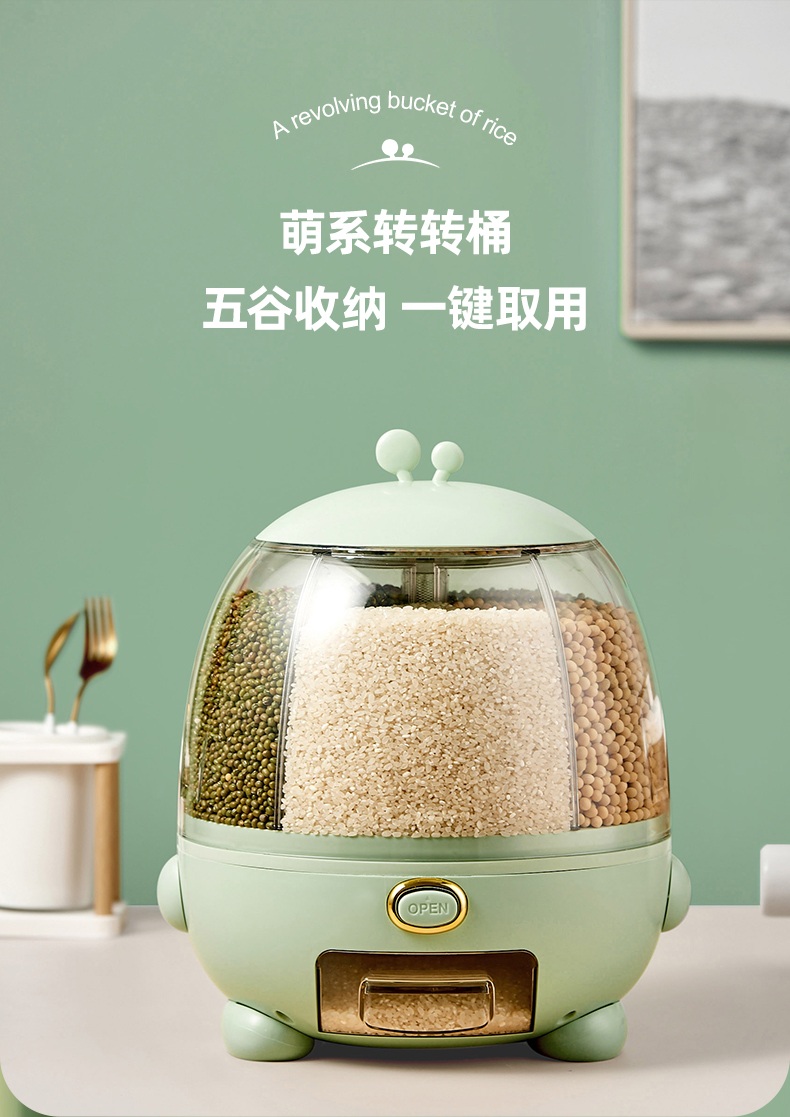 萌系旋转杂粮桶分格五谷杂粮收纳储存罐一键按压储米桶