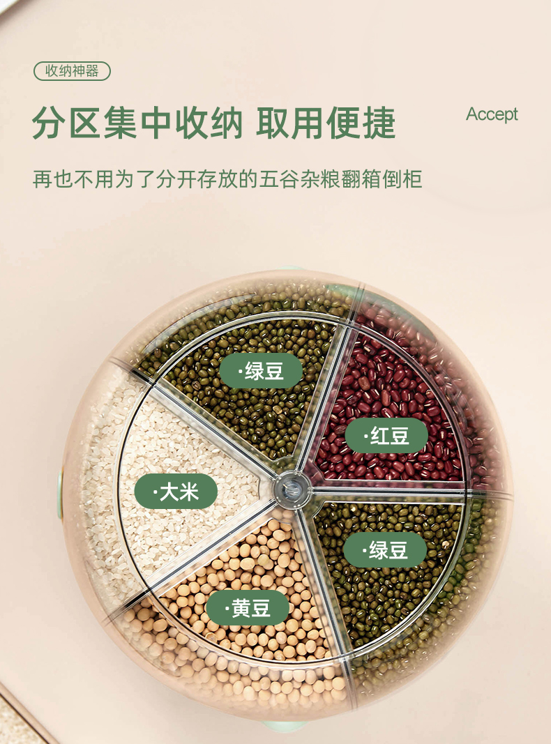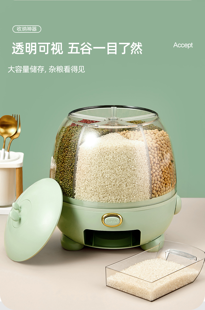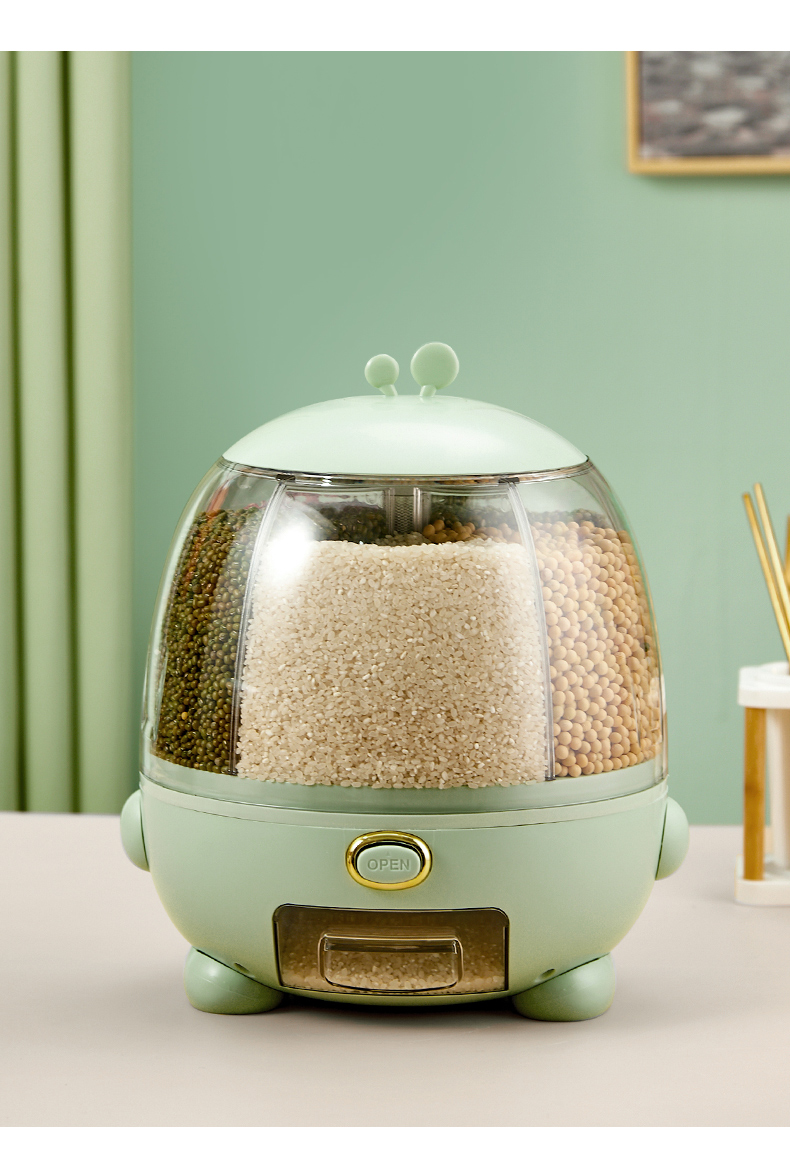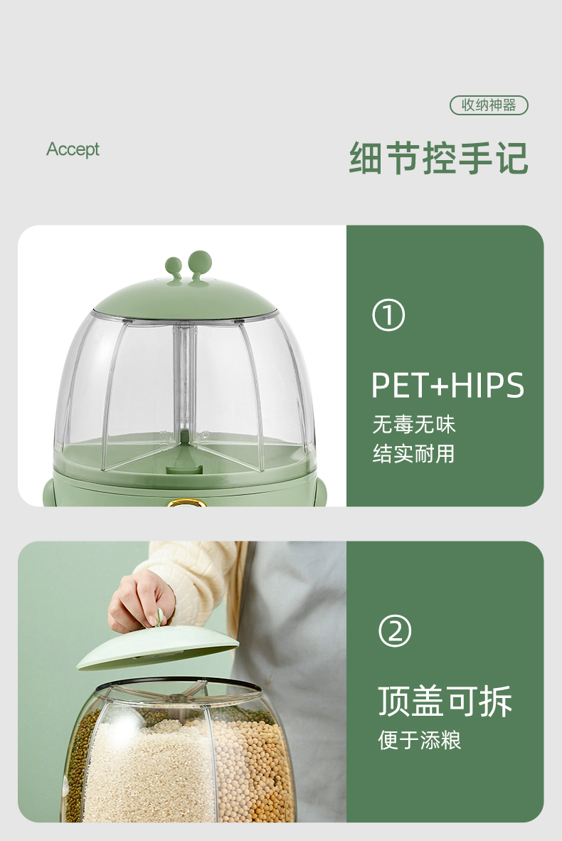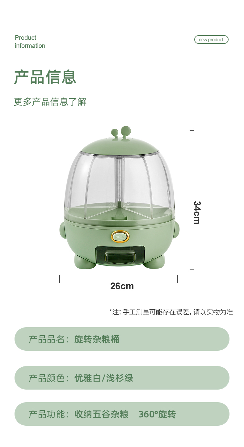 萌系旋转杂粮桶分格五谷杂粮收纳储存罐一键按压储米桶