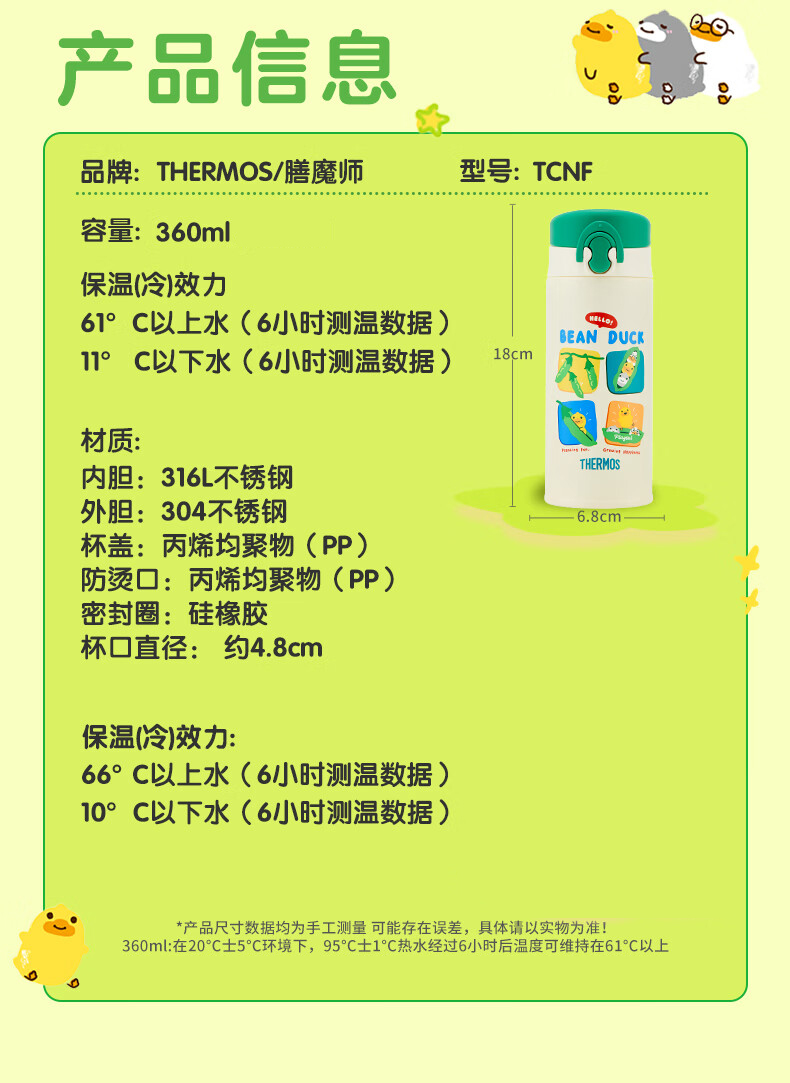 膳魔师不锈钢保温保冷直饮杯350ml Bean Duck27922