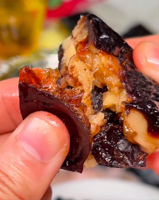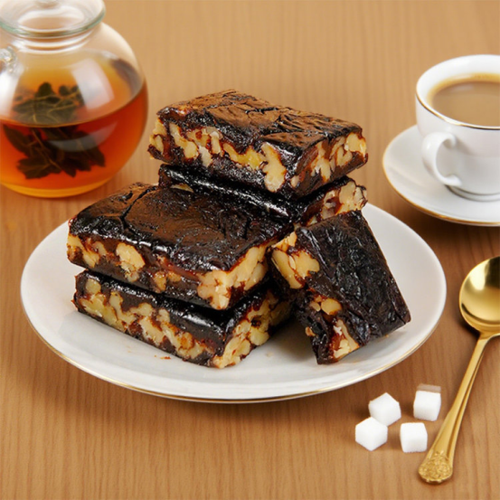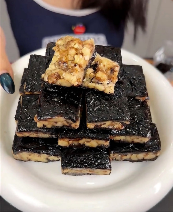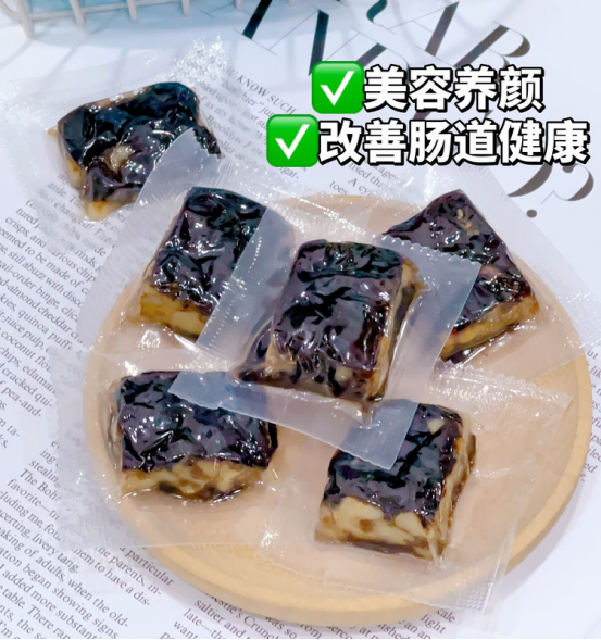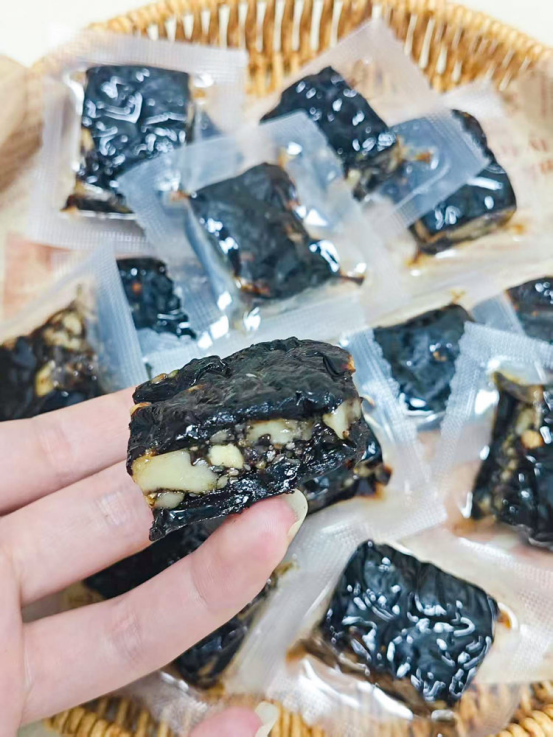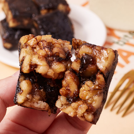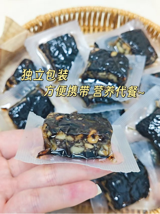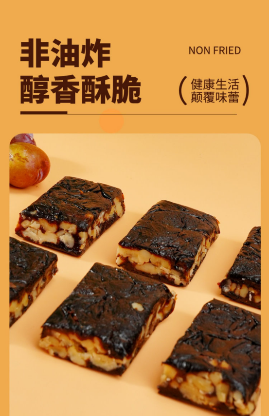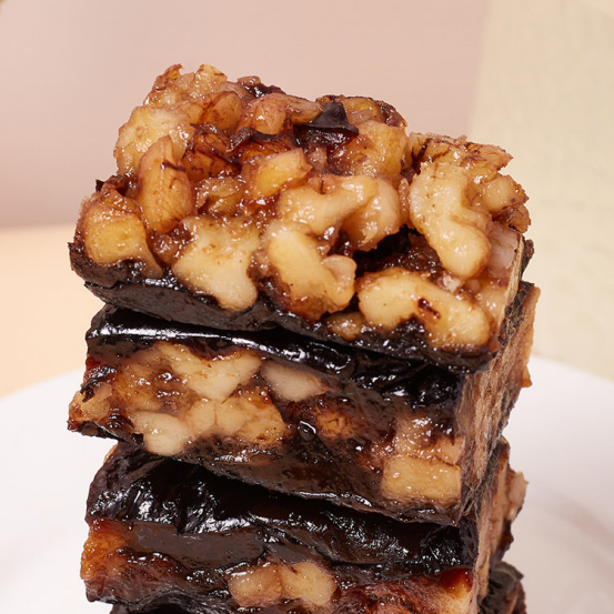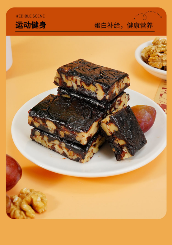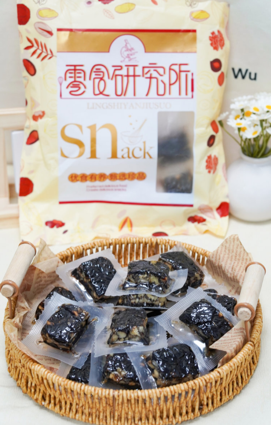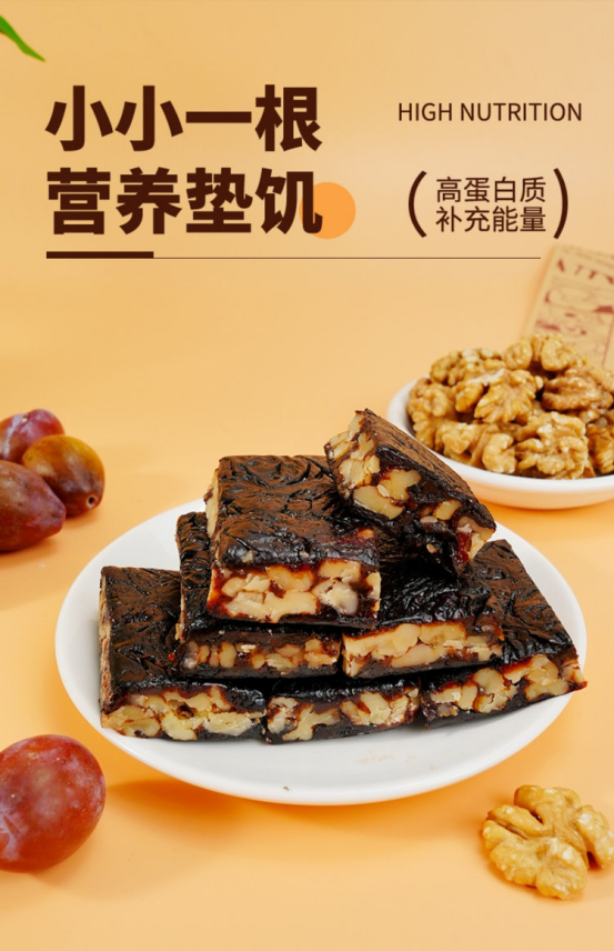 【配料】:西梅果肉≥40%、核桃仁≥30%、桑葚果干≥5%,麦芽糖醇液、芝麻、花生仁