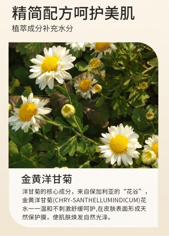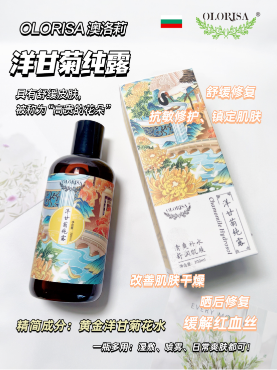 洋甘菊纯露:补水保湿、抗敏修护、镇定肌肤、晒后修复、缓解红血丝