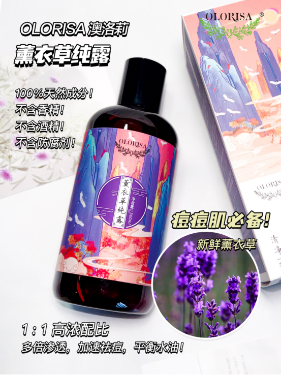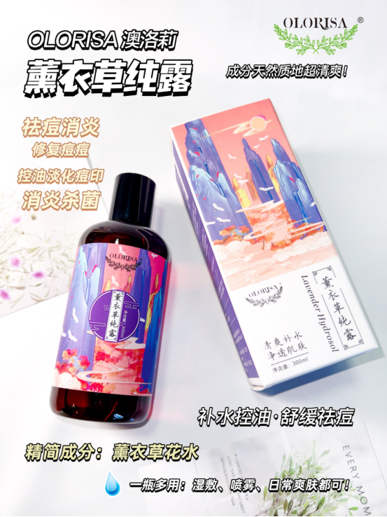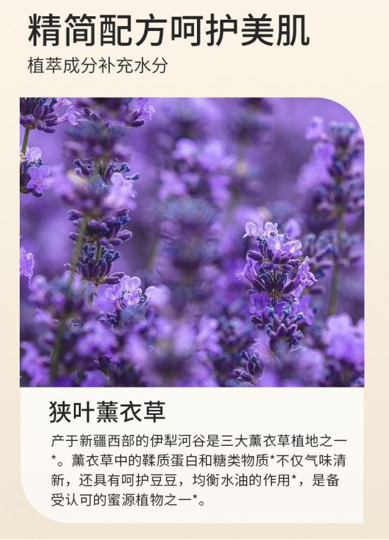 薰衣草纯露:补水保湿、祛痘、消炎镇定、平衡水油