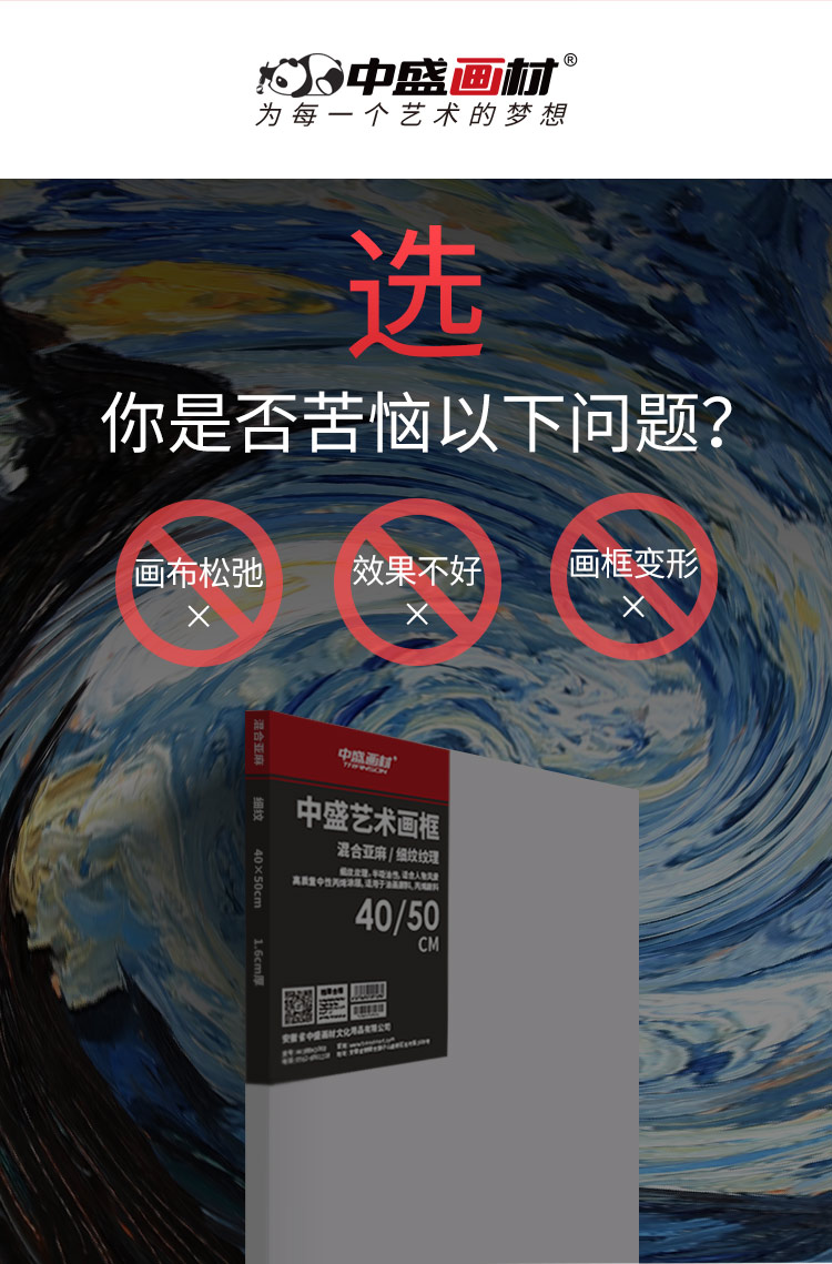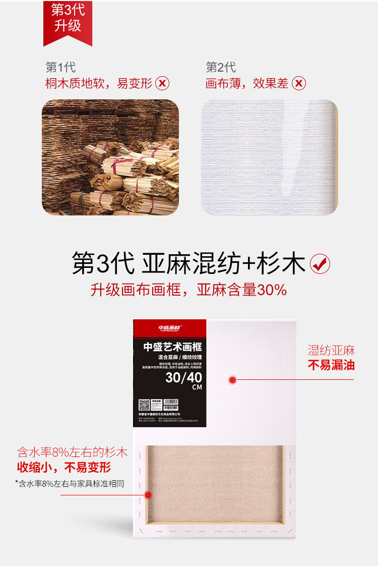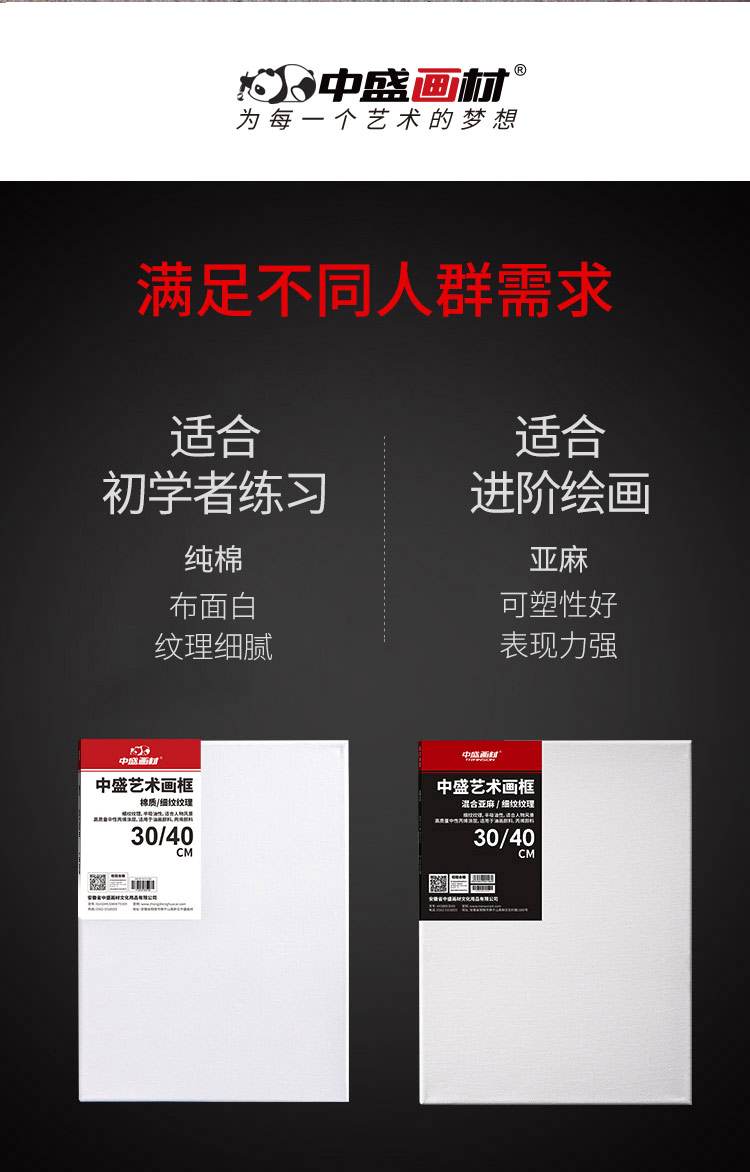 中盛画材亚麻油画布纯棉油画框丙烯画板空白框手工框定制1箱批发