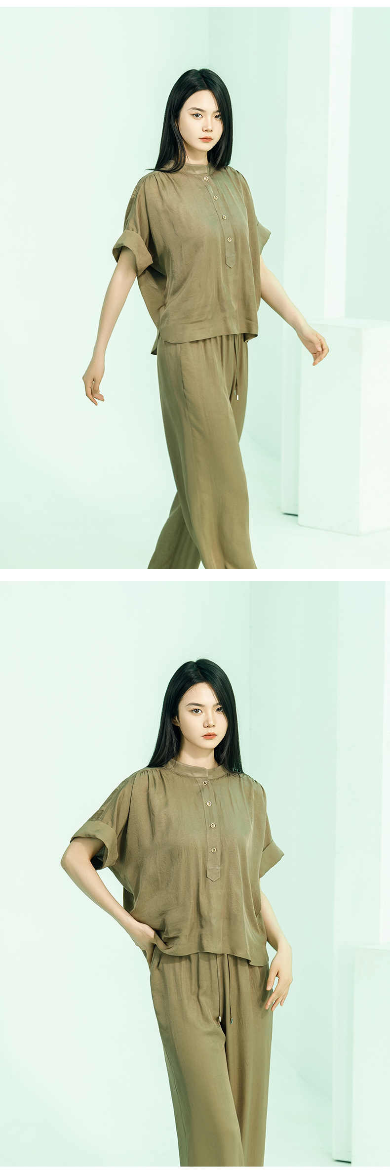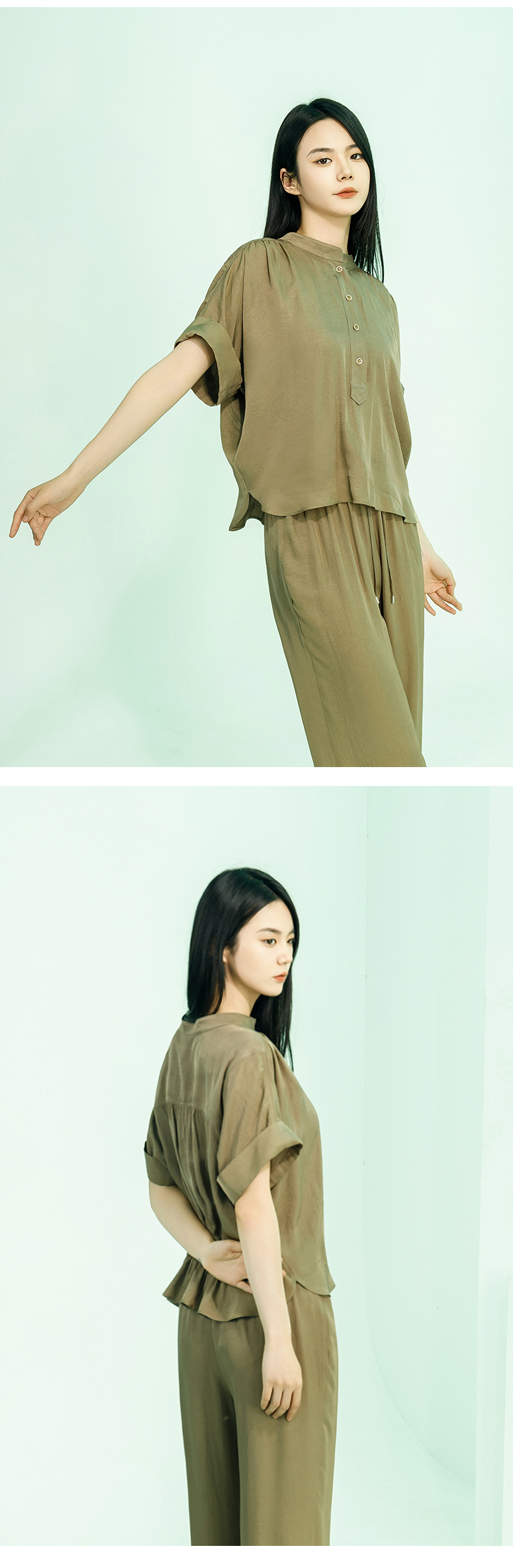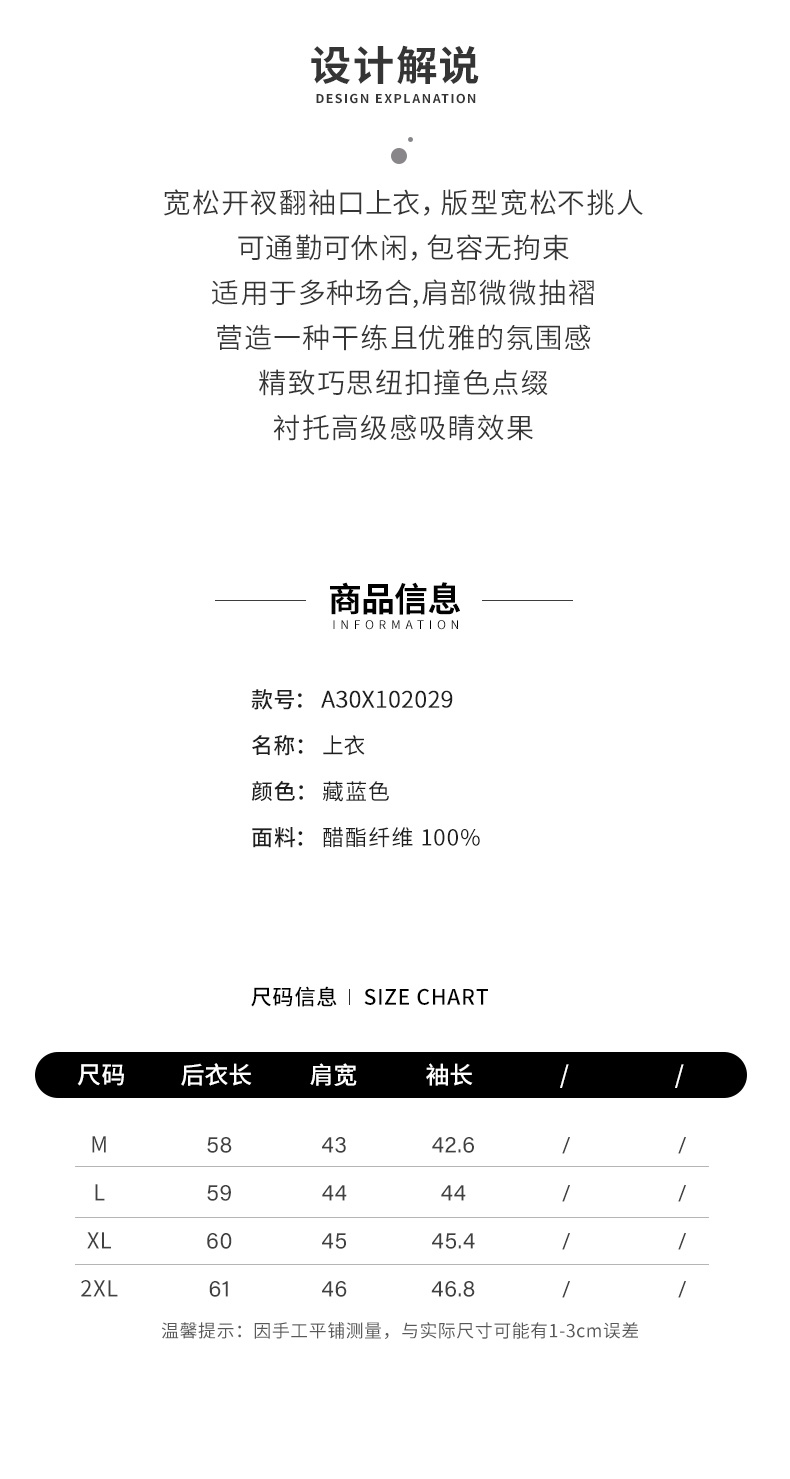 【商场同款】阿菁娜2024夏季新款宽松开叉翻袖扣上衣A30X102029