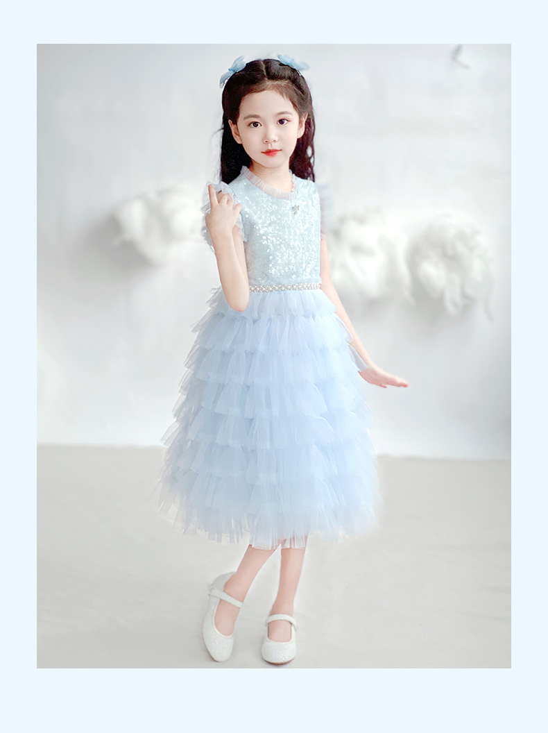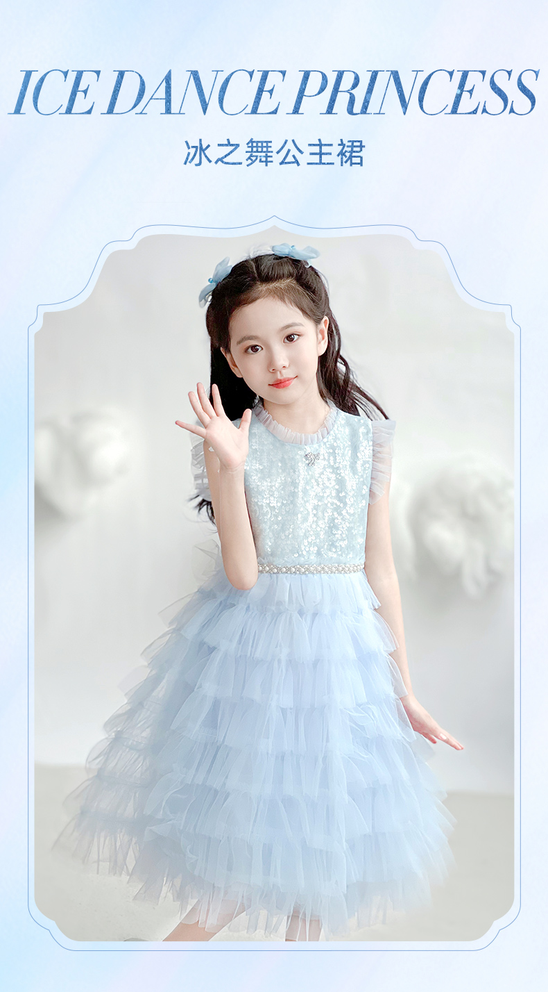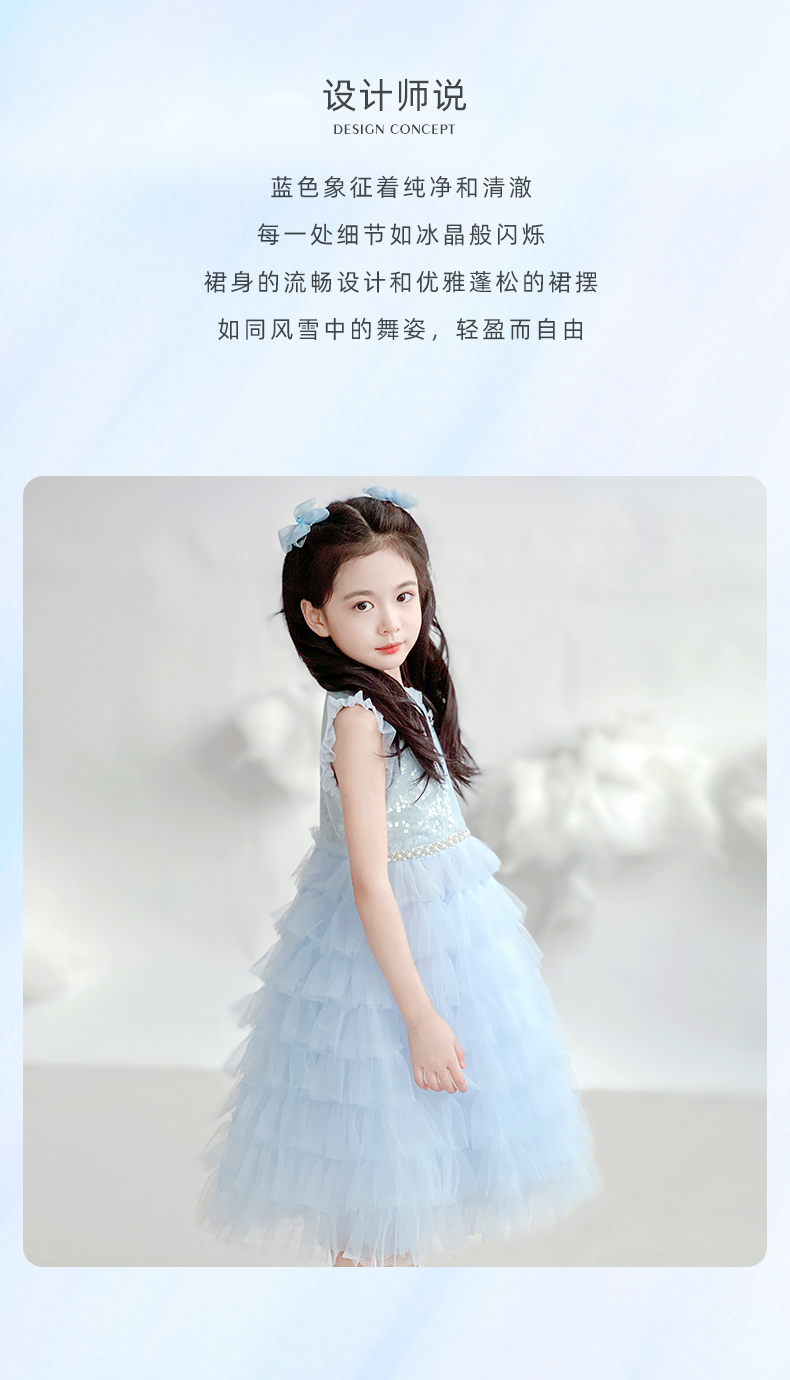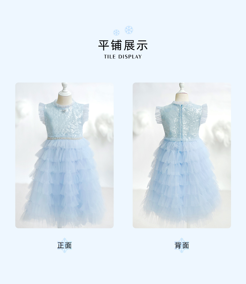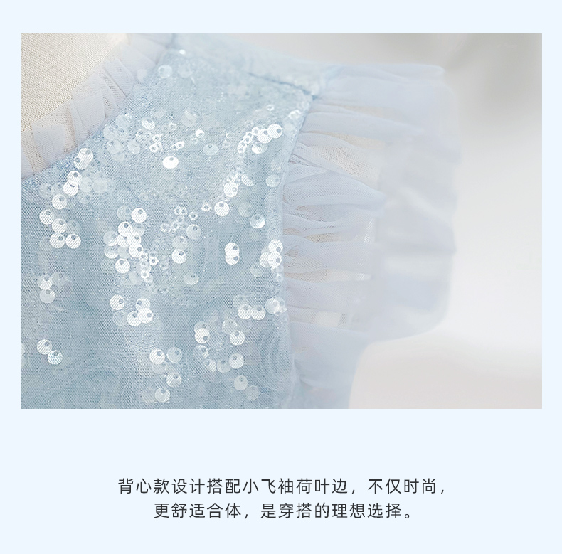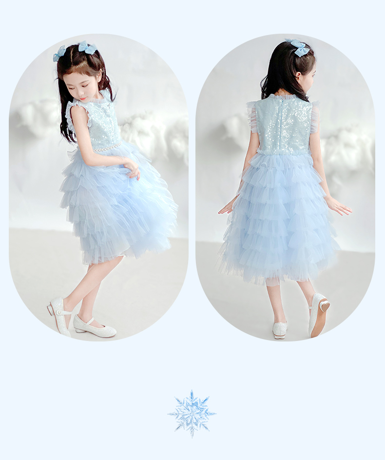 女童连衣裙夏季新款公主裙冰雪奇缘艾莎蓬纱大童雪纺裙子洋气-两穿礼服