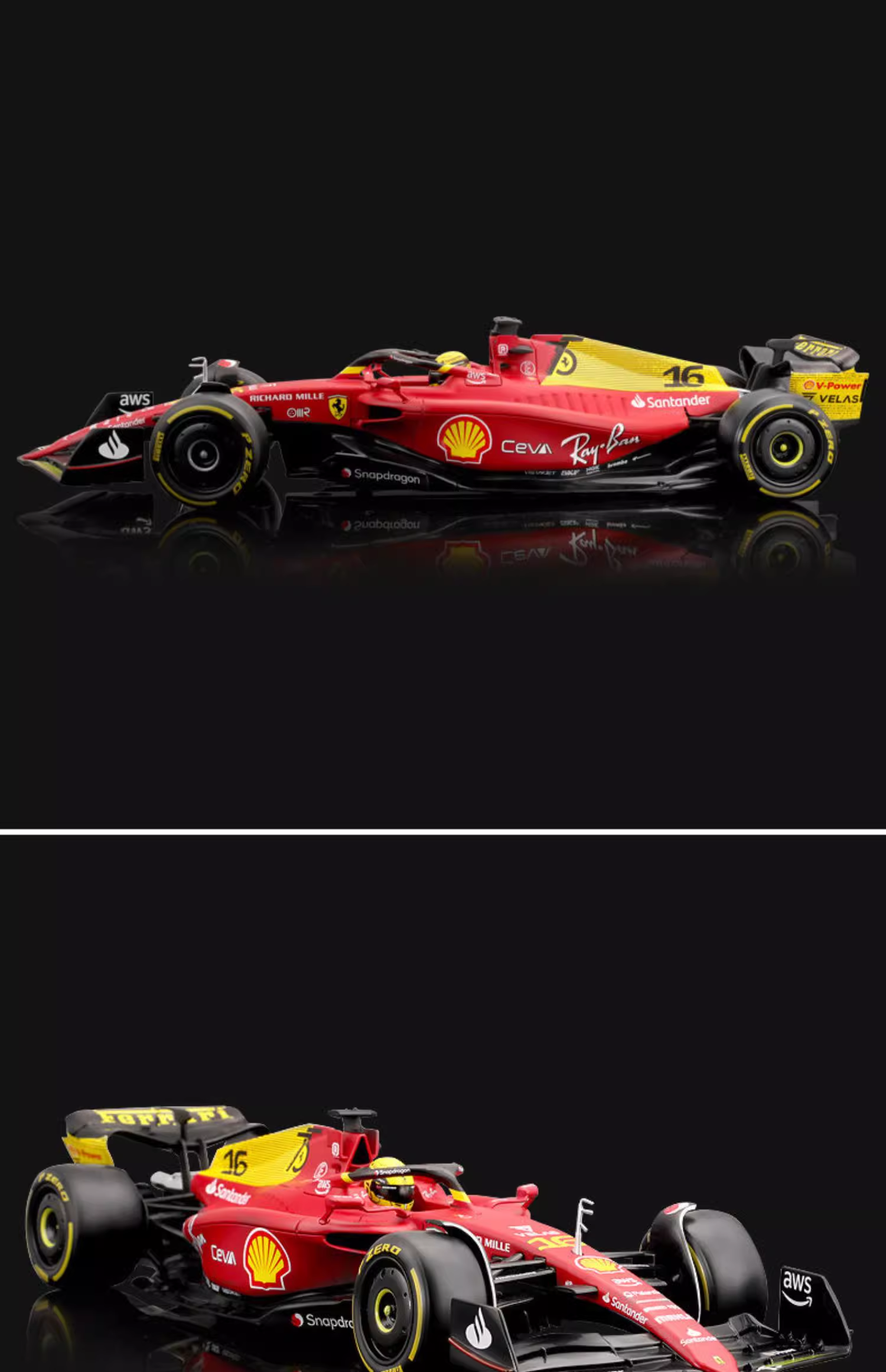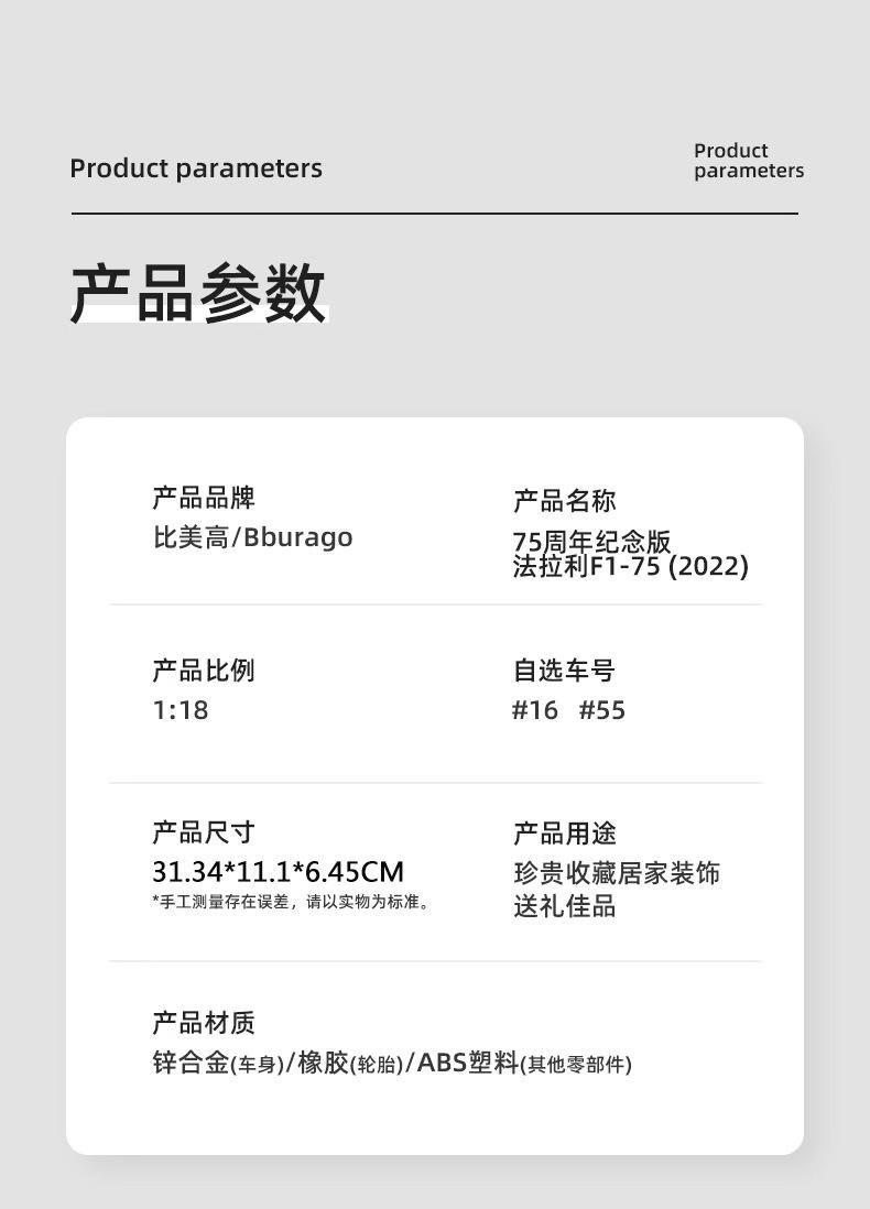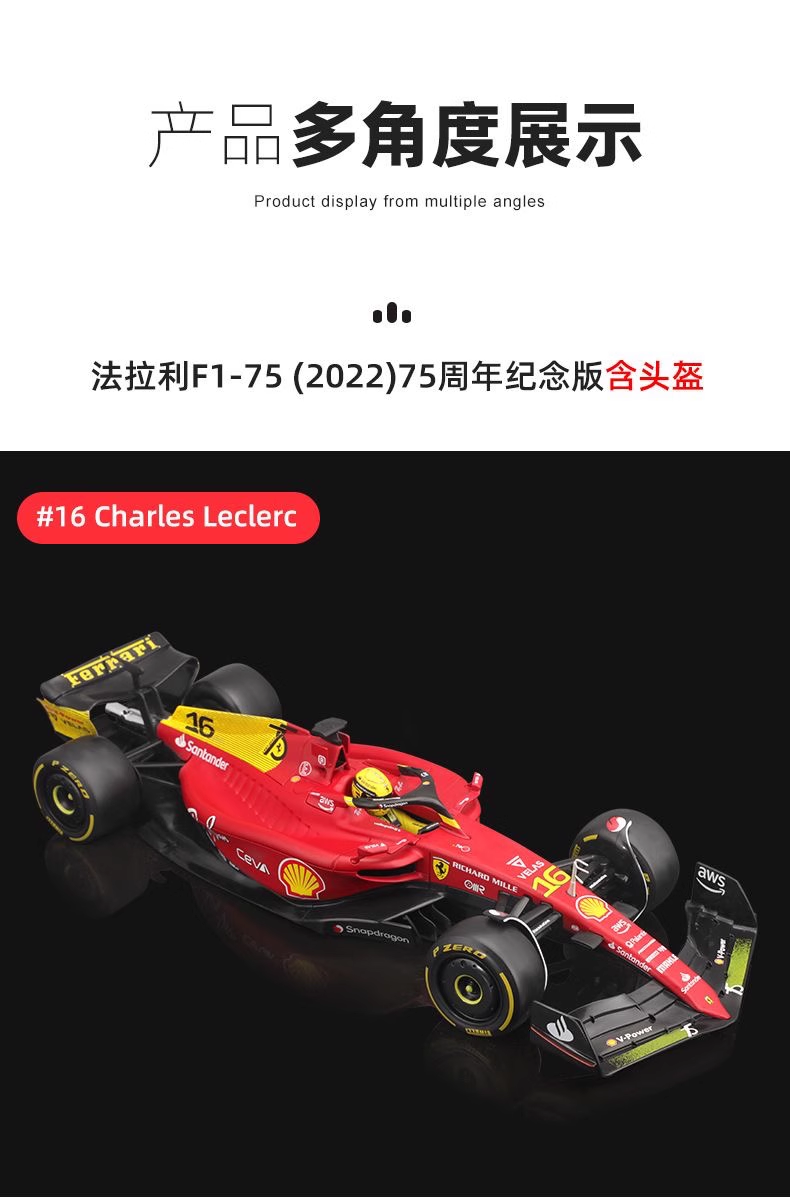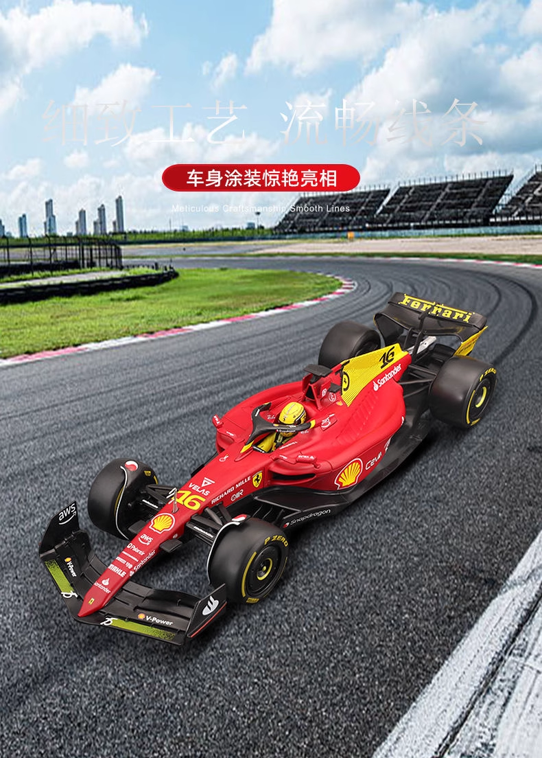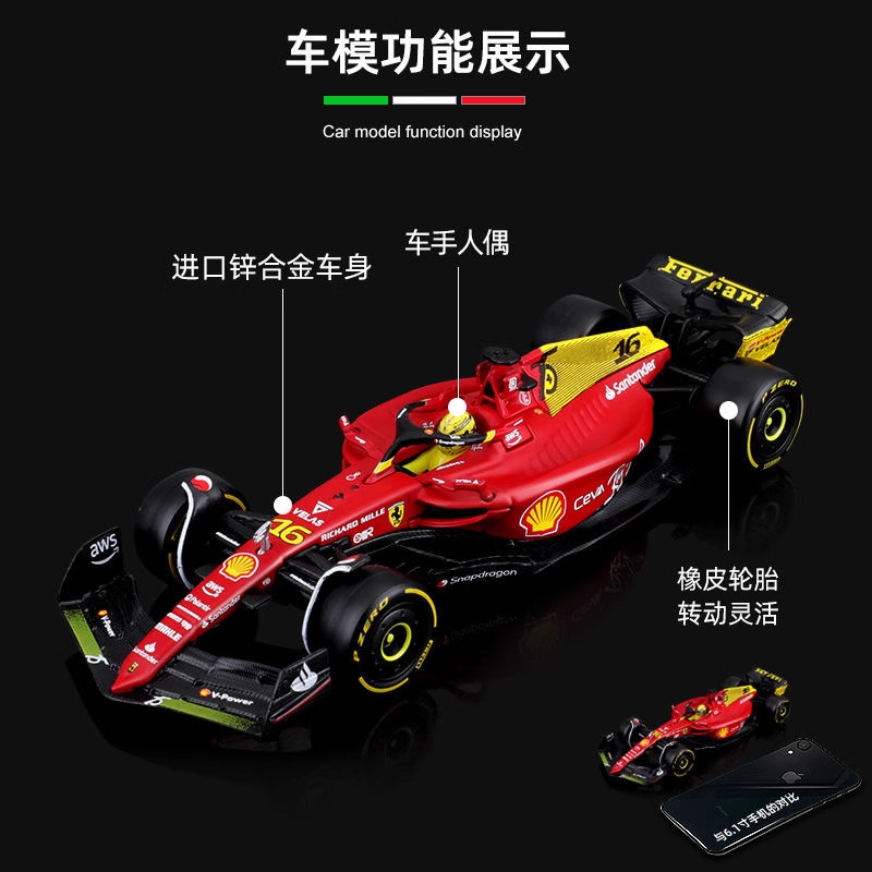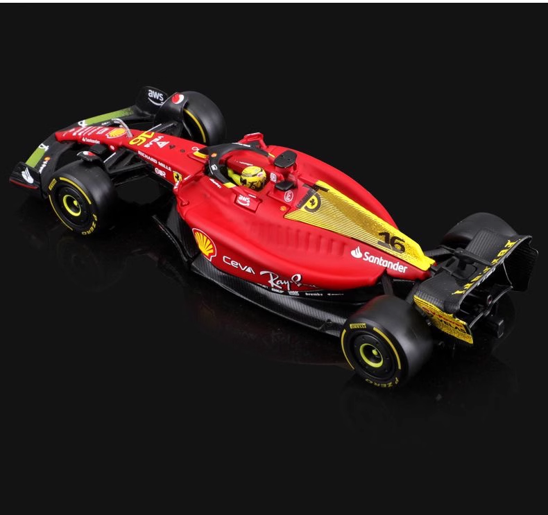 Bburago比美高 1:18 F1系列-法拉利 F1-75 (16 CHARLES LECLERC)-哑红/黄色(75 周年纪念版)