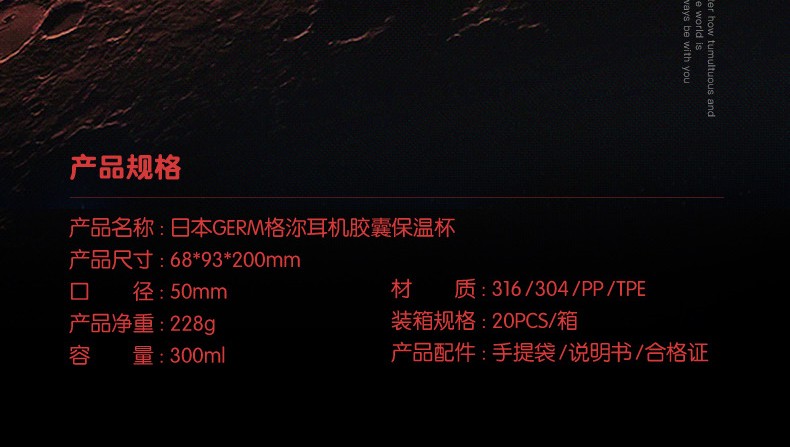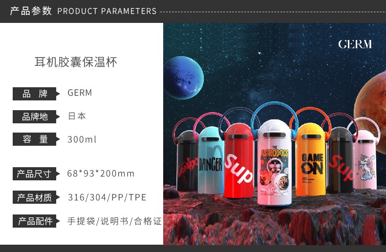GERM/格沵 格沵耳机胶囊保温杯300ML多色可选,颜色备注JPY带授权招加盟代理