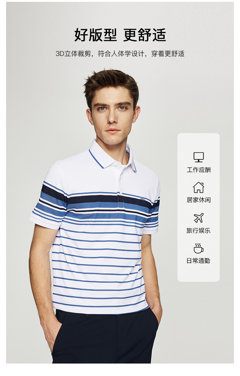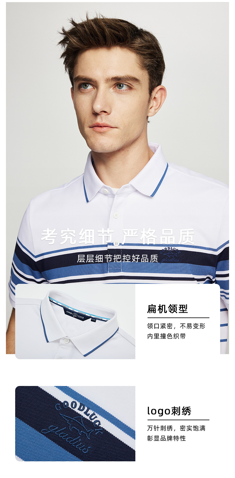 【桑蚕丝】德鲨鲨鱼条纹短袖POLO衫男2026夏季新款休闲T恤