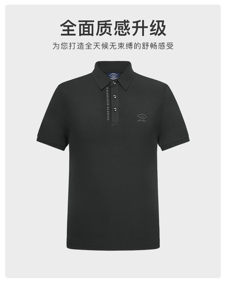 德鲨男装商务短袖POLO衫2025夏款休闲简约弹力上衣男打底翻领T恤